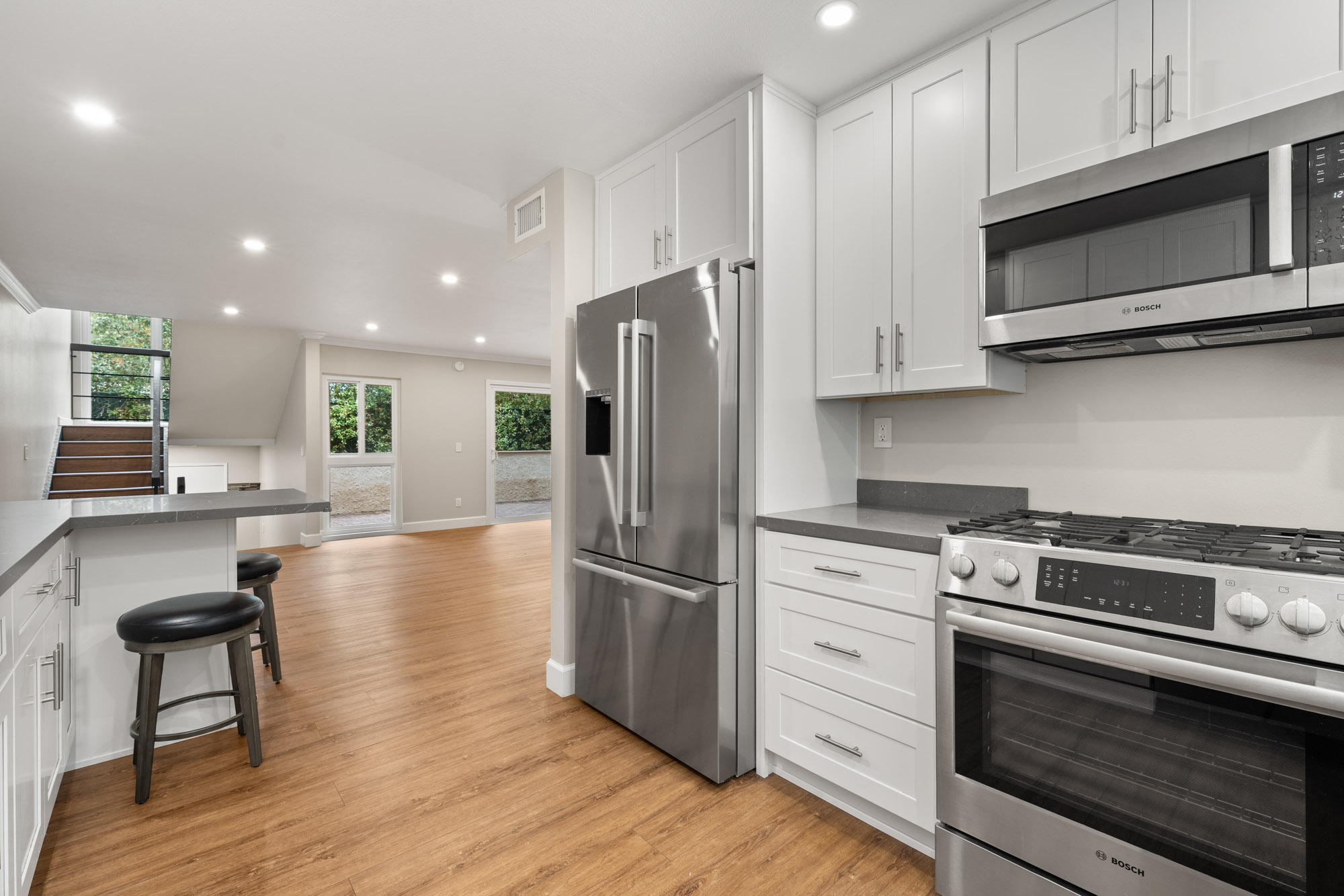 Welcome to this beautifully updated townhome with a two-car attached garage in Coldwater Villas, a charming community located in a quiet Sherman Oaks neighborhood. Inside, the open-concept main level features a spacious living room with access to a large patio, remodeled kitchen with stainless steel appliances, bedroom and full bathroom. Upstairs, there are two generously sized ensuite bedrooms, including an impressive primary suite that boasts soaring ceilings, a private balcony, walk-in closet and spa-inspired bathroom, complete with a soaking tub, oversized shower and double vanity. Additional highlights include an oversized two-car garage with laundry and resort-like grounds, complete with a community pool/spa, sauna, rec room and lush landscaping. Located in an excellent school district and nearby shops, restaurants and public transit.