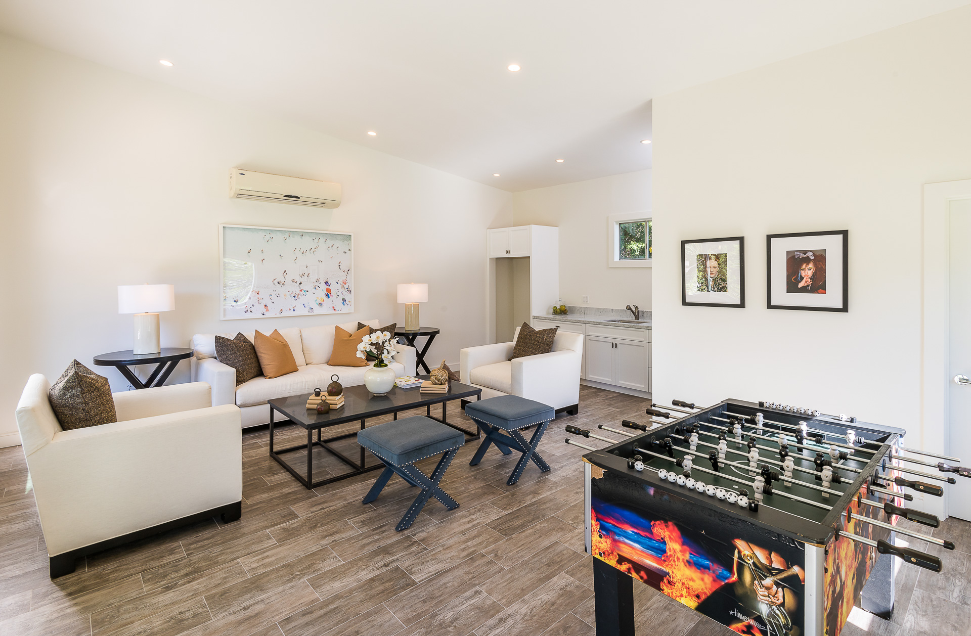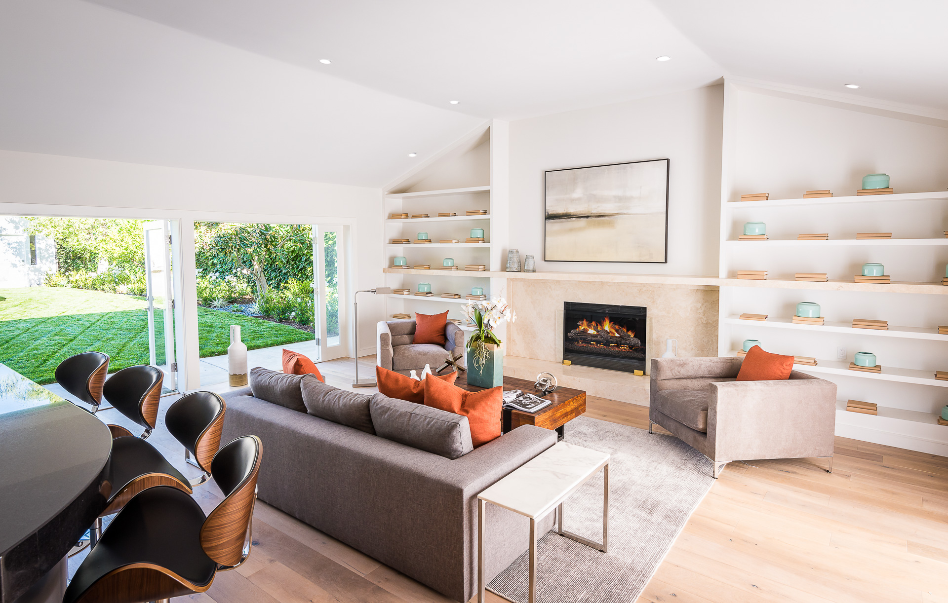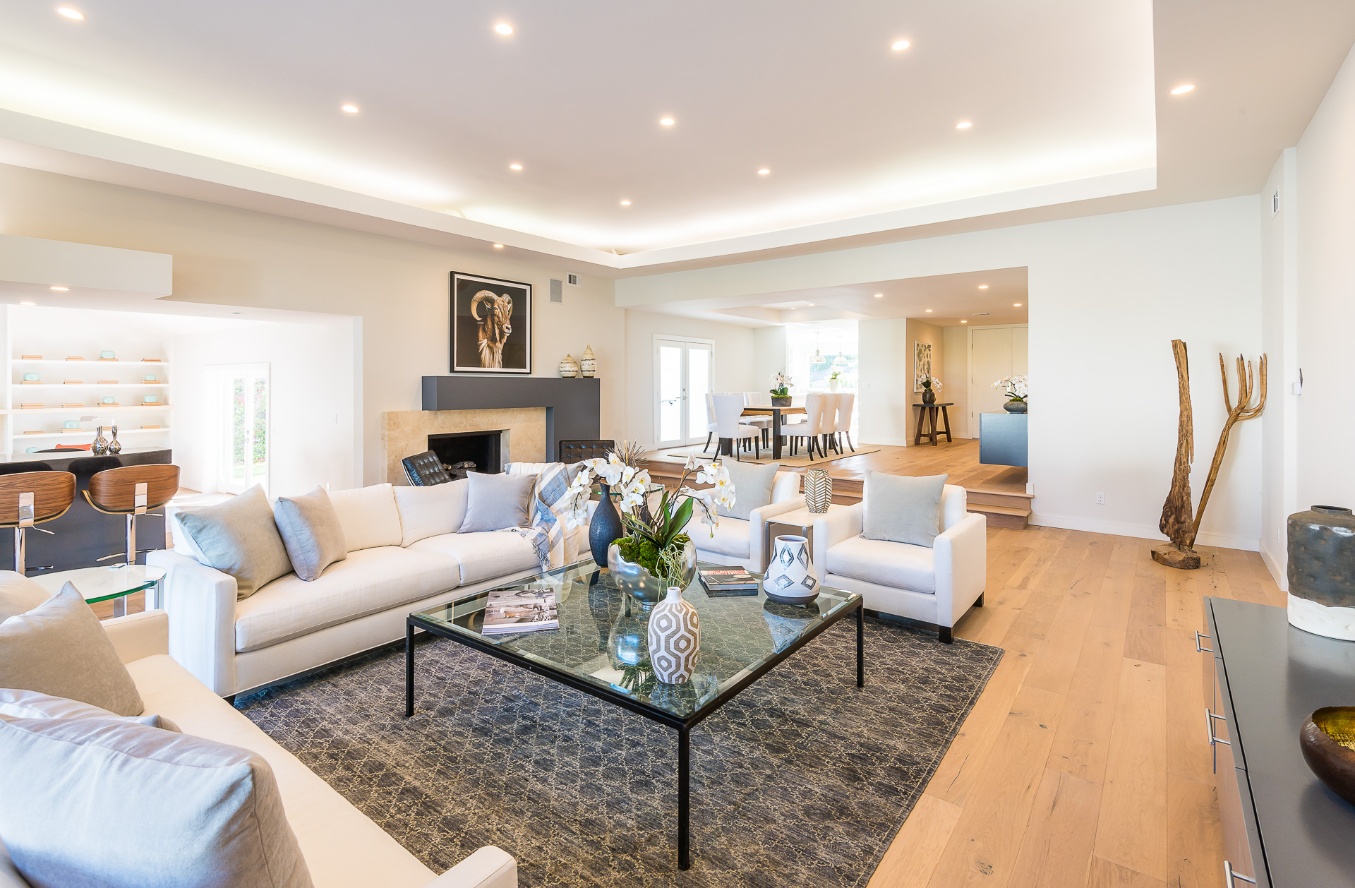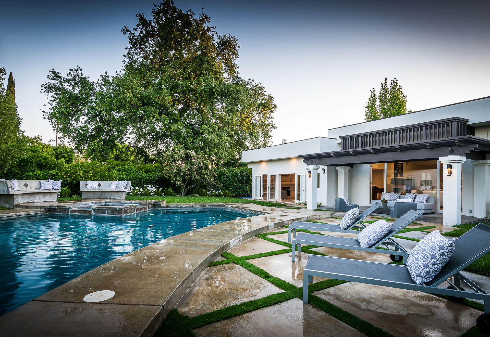 5347 Aldea is modern luxury at it’s best! This sprawling one level 5 bedroom, 5 ½ bath property is distinctly designed and fitting for the “Modern Entertainer” who enjoys style and class w/ the exclusivity of living in Amestoy Estates. The stylish front gates open up to an exquisite palm tree entrance into this magnificent oasis. Immediately you are captivated by the expansive formal living room, light hardwood floors, designer fireplace, a full 8-seater bar area; step down living room and floor to ceiling windows showcasing a sleek pool & spa.The bedrooms and bathrooms are elegantly designed while the kitchen is crafted with a Carerra marble island countertops, large windows & Thermador branded appliances. The backyard is surrounded by manicured bushes highlighted by 5 perfectly landscaped aloe-vera trees adding to the resort feel, a built in sitting area, an open-air patio, & a detached 400 square foot pool house w/ bathroom.