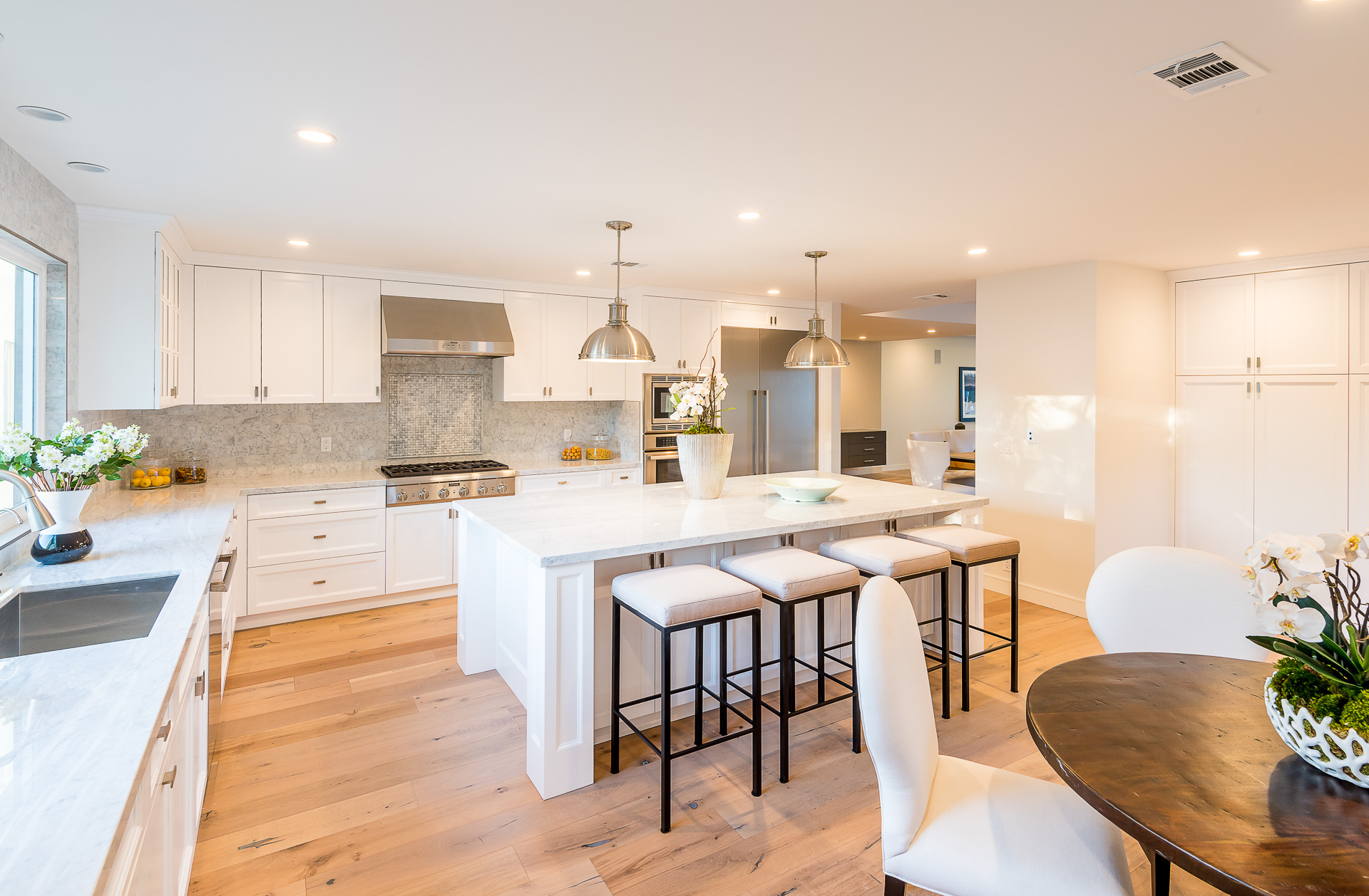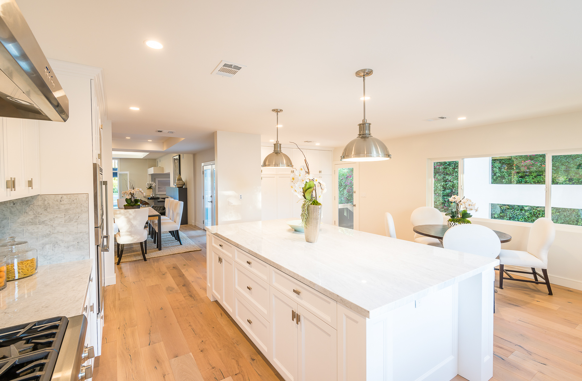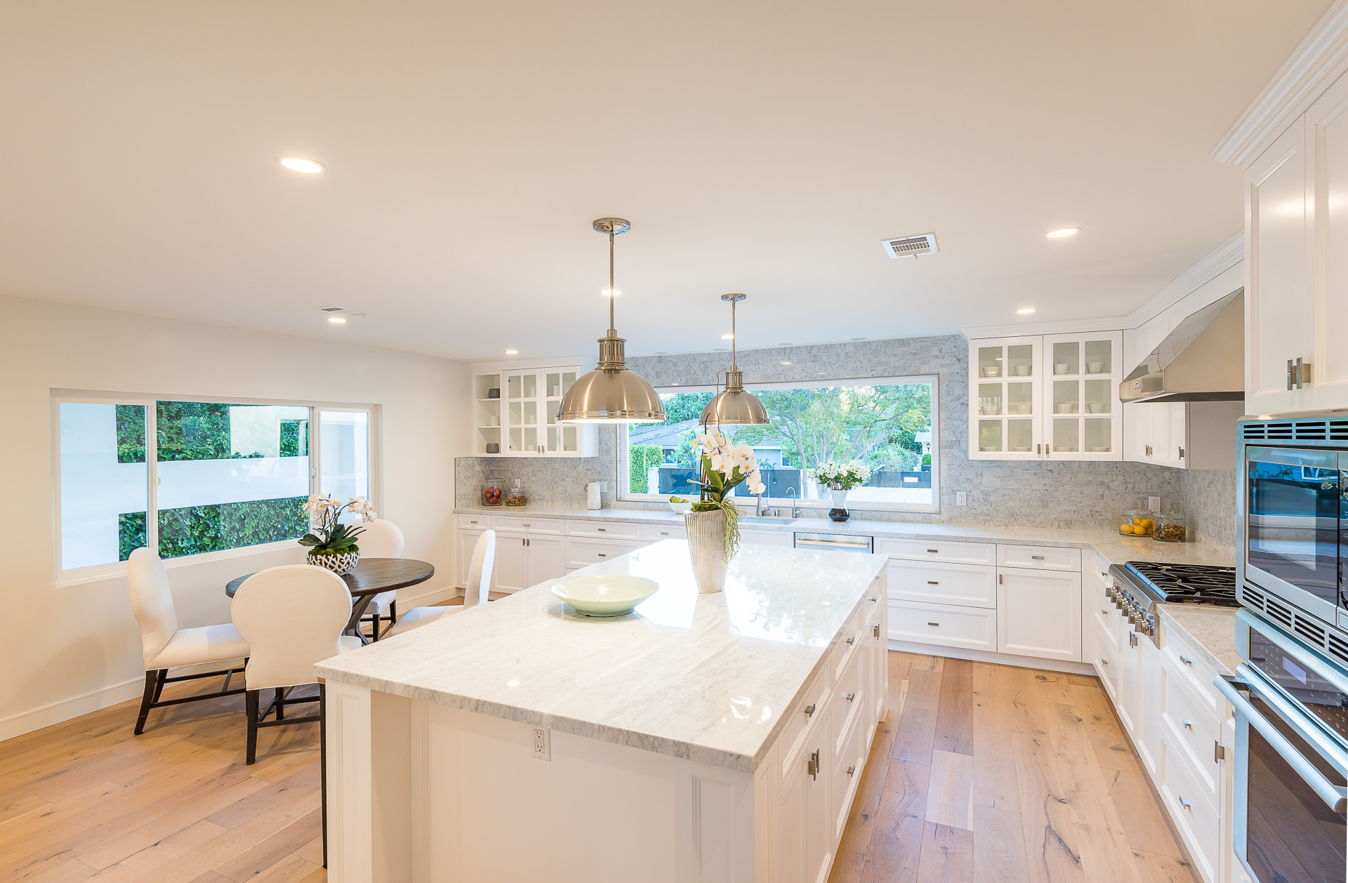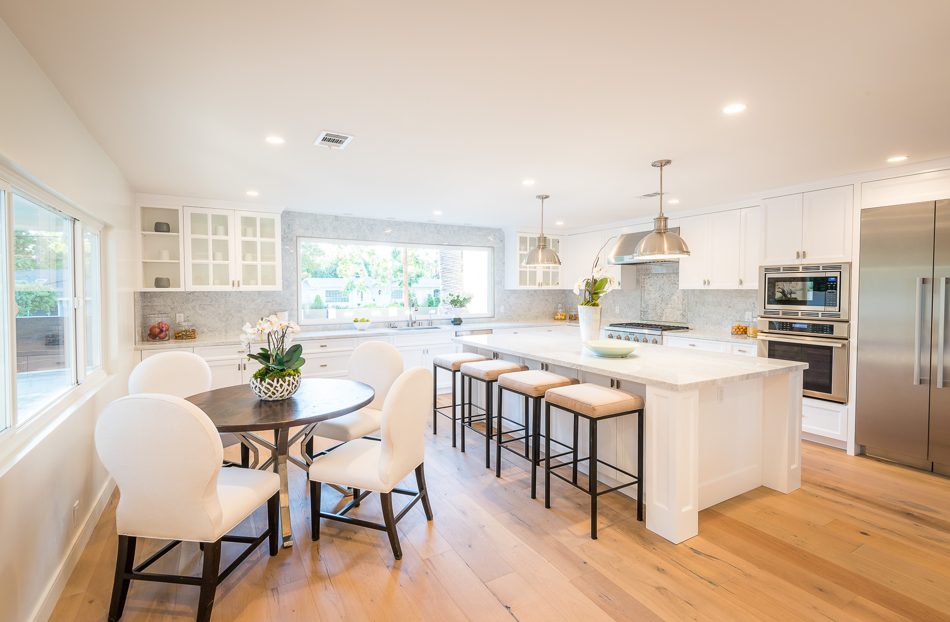 5347 Aldea is modern luxury at it’s best! This sprawling one level 5 bedroom, 5 ½ bath property is distinctly designed and fitting for the “Modern Entertainer” who enjoys style and class w/ the exclusivity of living in Amestoy Estates. The stylish front gates open up to an exquisite palm tree entrance into this magnificent oasis. Immediately you are captivated by the expansive formal living room, light hardwood floors, designer fireplace, a full 8-seater bar area; step down living room and floor to ceiling windows showcasing a sleek pool & spa.The bedrooms and bathrooms are elegantly designed while the kitchen is crafted with a Carerra marble island countertops, large windows & Thermador branded appliances. The backyard is surrounded by manicured bushes highlighted by 5 perfectly landscaped aloe-vera trees adding to the resort feel, a built in sitting area, an open-air patio, & a detached 400 square foot pool house w/ bathroom.