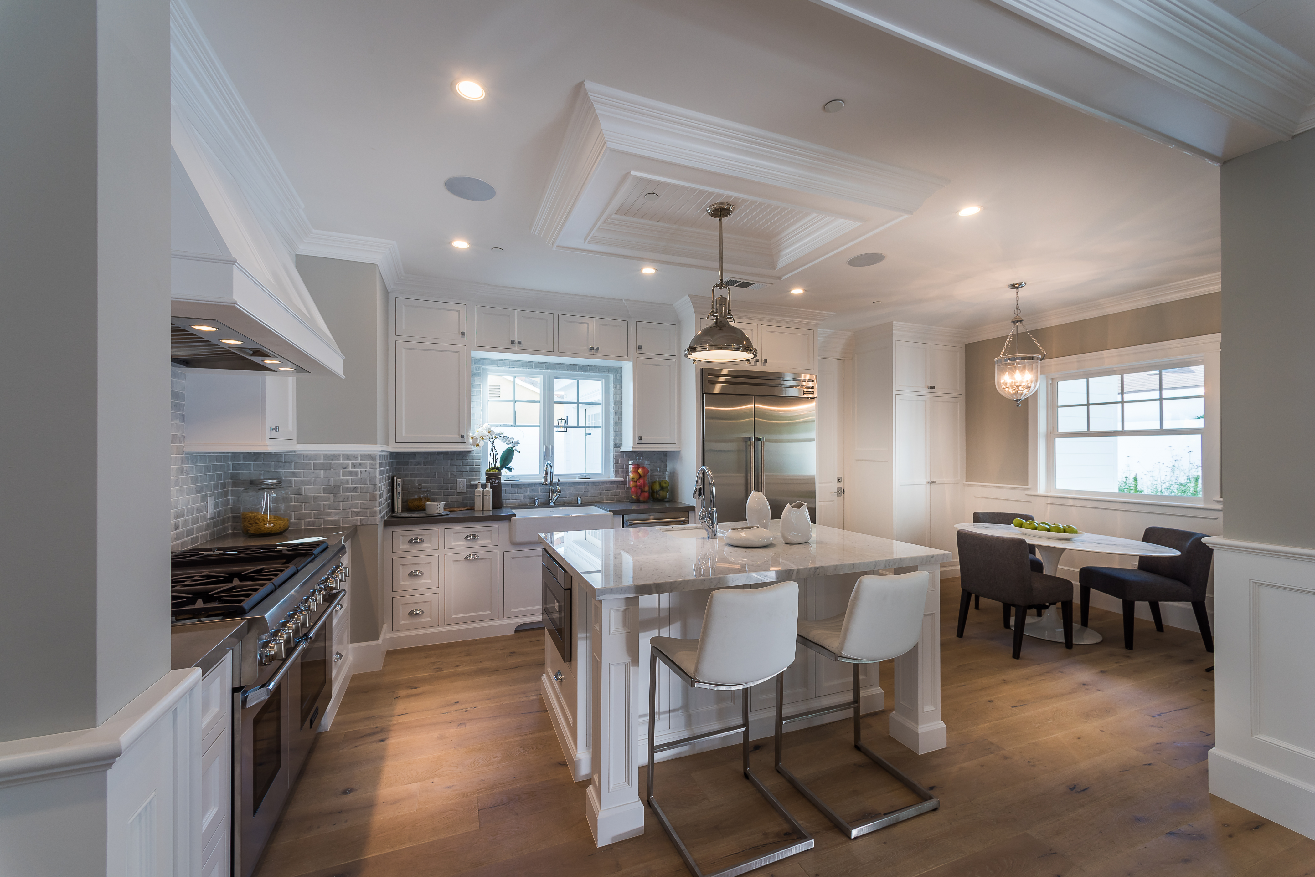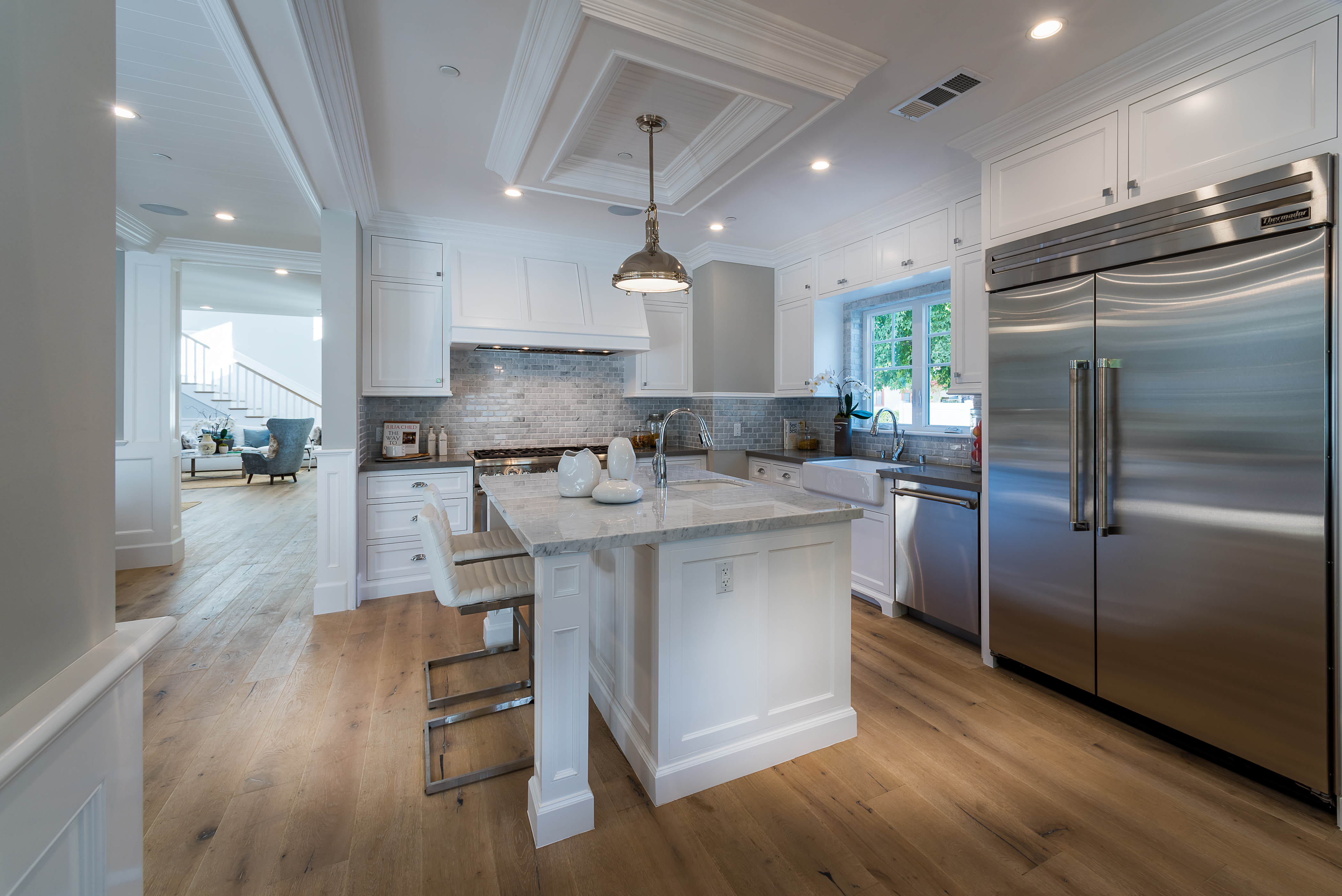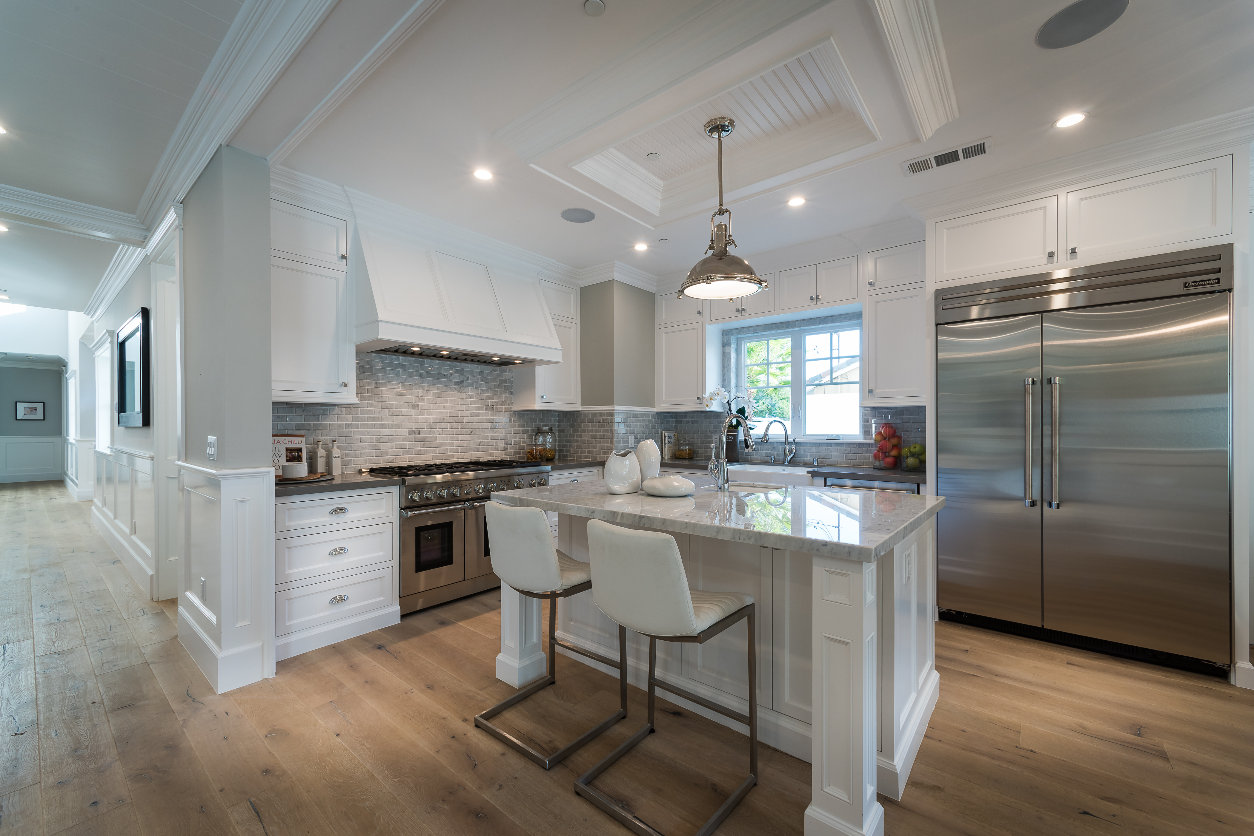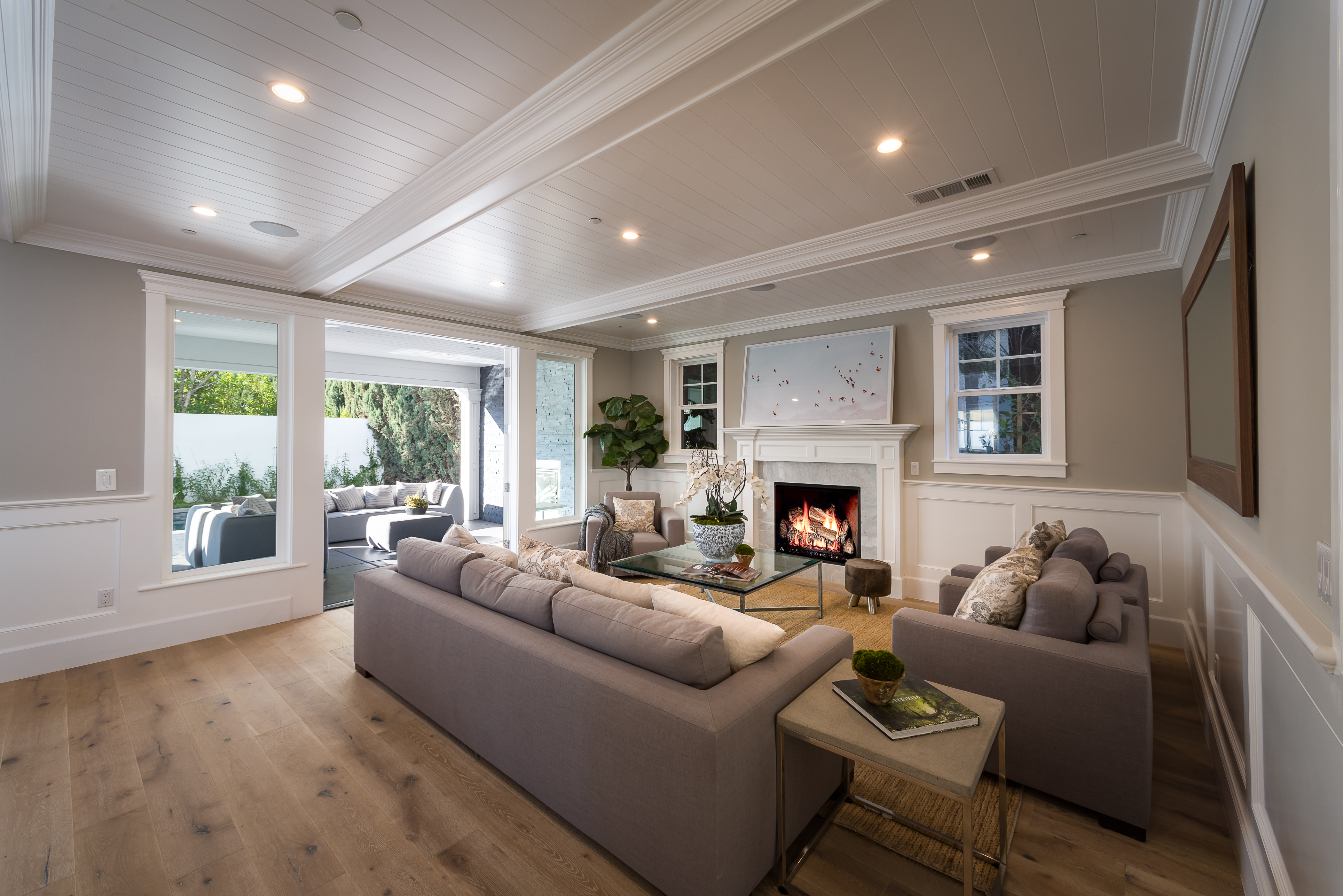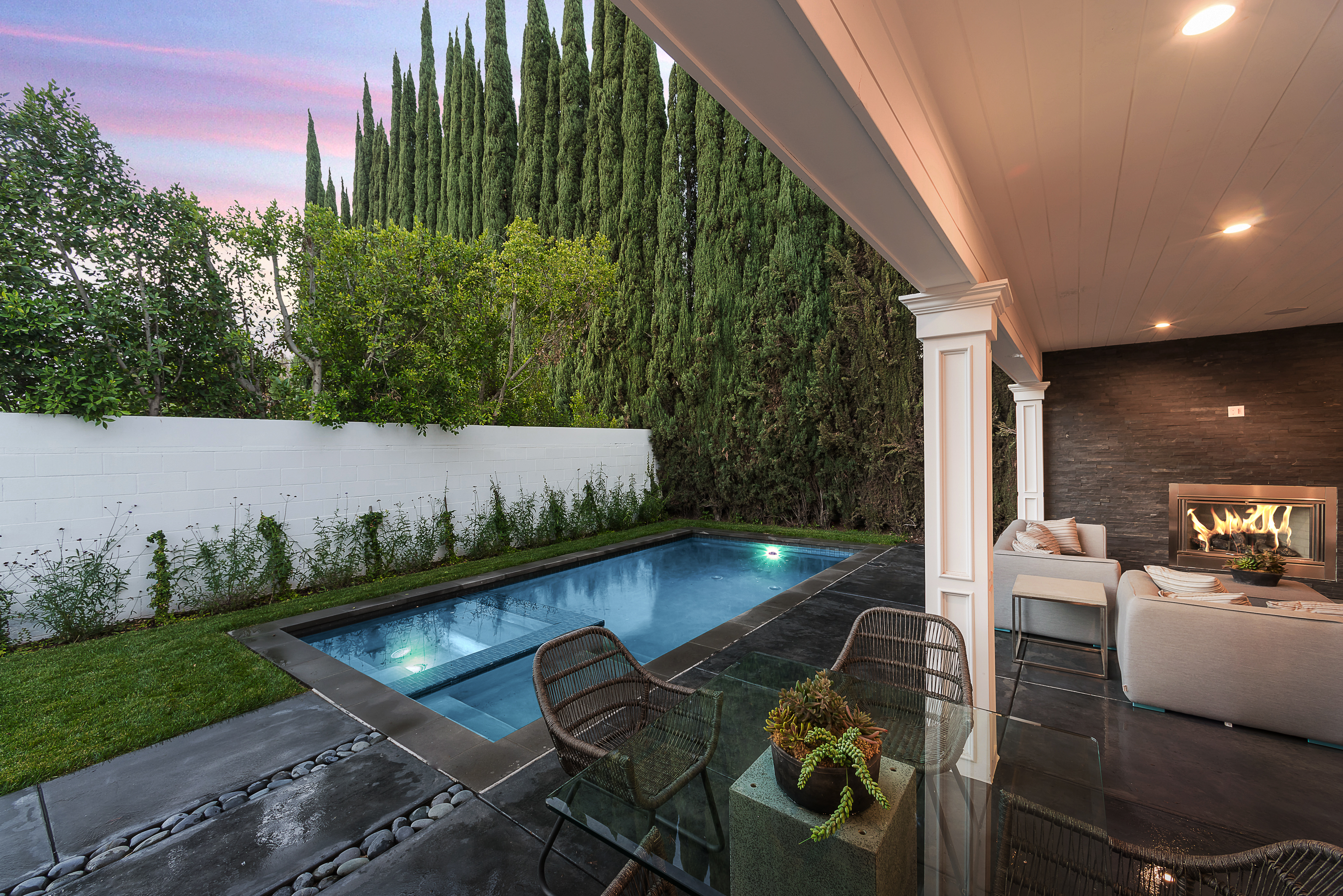 Beautiful brand new construction home located at the end of a cul de sac, providing seclusion and privacy in the heart of Sherman Oaks. Custom finishes and design can be seen throughout this 3 bed, 4 bath, 3,329 sqft, 6,133 sqft. lot home. Initially walking in you are greeted with an open-floor plan, hardwood flooring, high ceilings, and the formal living & dining area. The Gourmet chefs kitchen offers a center island with a sink, Thermador stainless steel appliances, breakfast nook & is located nearby the cozy family room featuring a fireplace. Double glass doors in the family room open up to the large outdoor patio that also includes a fireplace, perfect area for entertaining guests in the backyard. Built-in shelving can be seen in the upstairs hallway. The master suite includes a built-in fireplace, walk-in closet, master bathroom with a double vanity and a freestanding bathtub, and double doors that lead out to the balcony. 2 additional bedrooms are featured upstairs. The backyard includes a pool & spa.