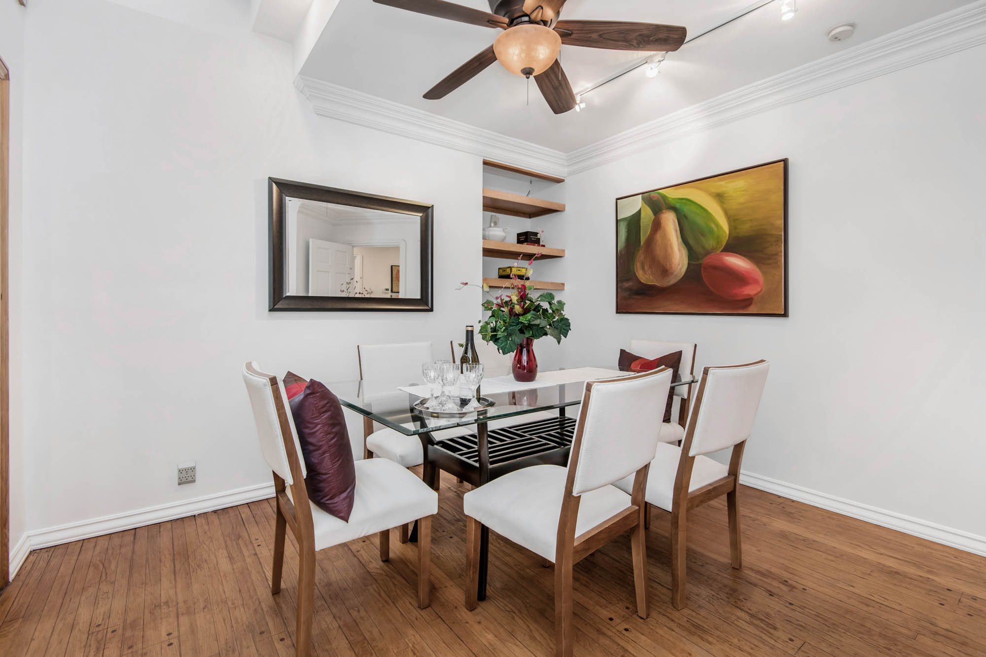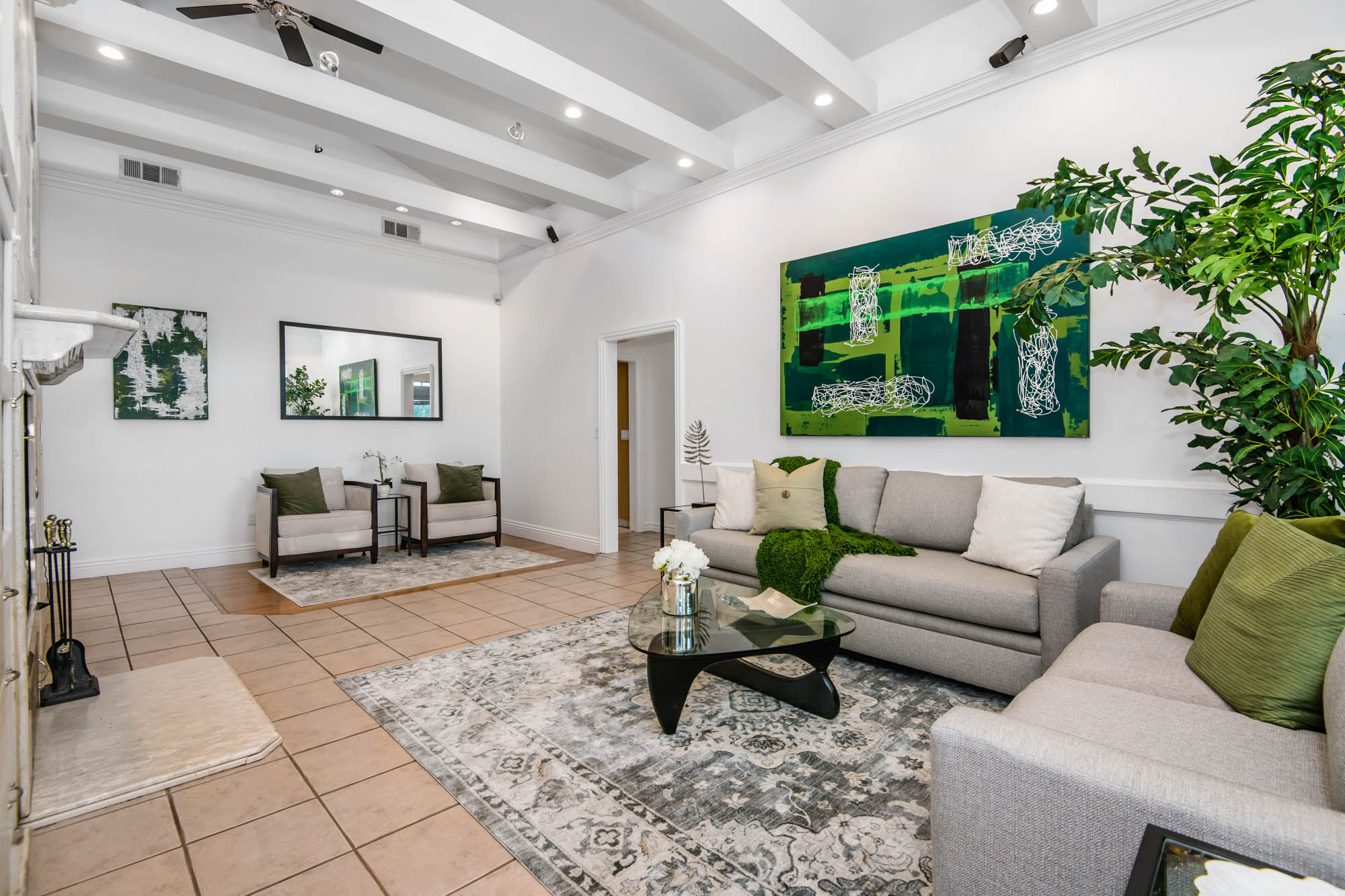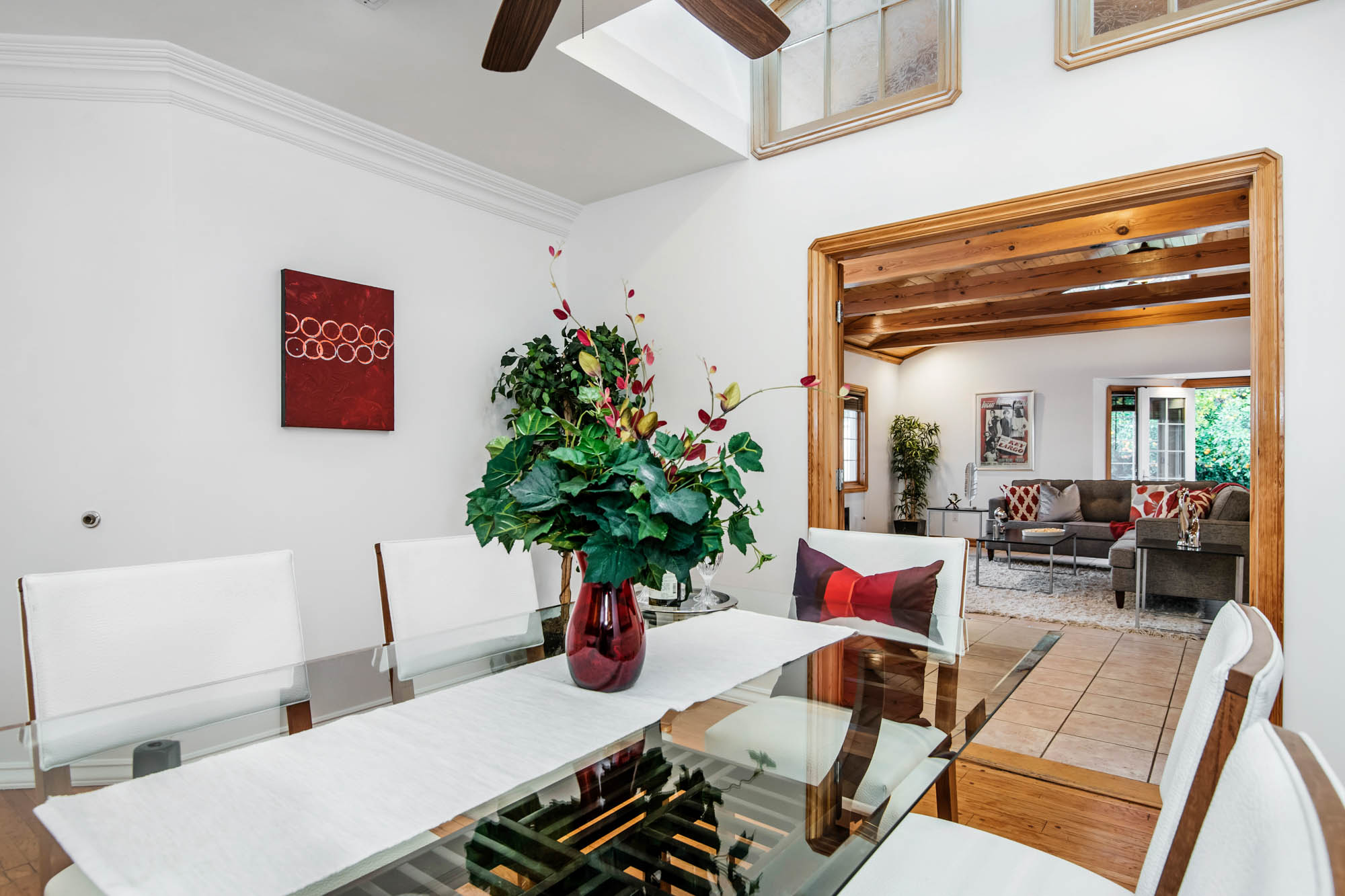 Welcome home to your 4 bedroom, 3 bathroom house in Valley Glen. Upon entering you’re greeted by a formal living room with floor to ceiling built-ins surrounding the stone fireplace.