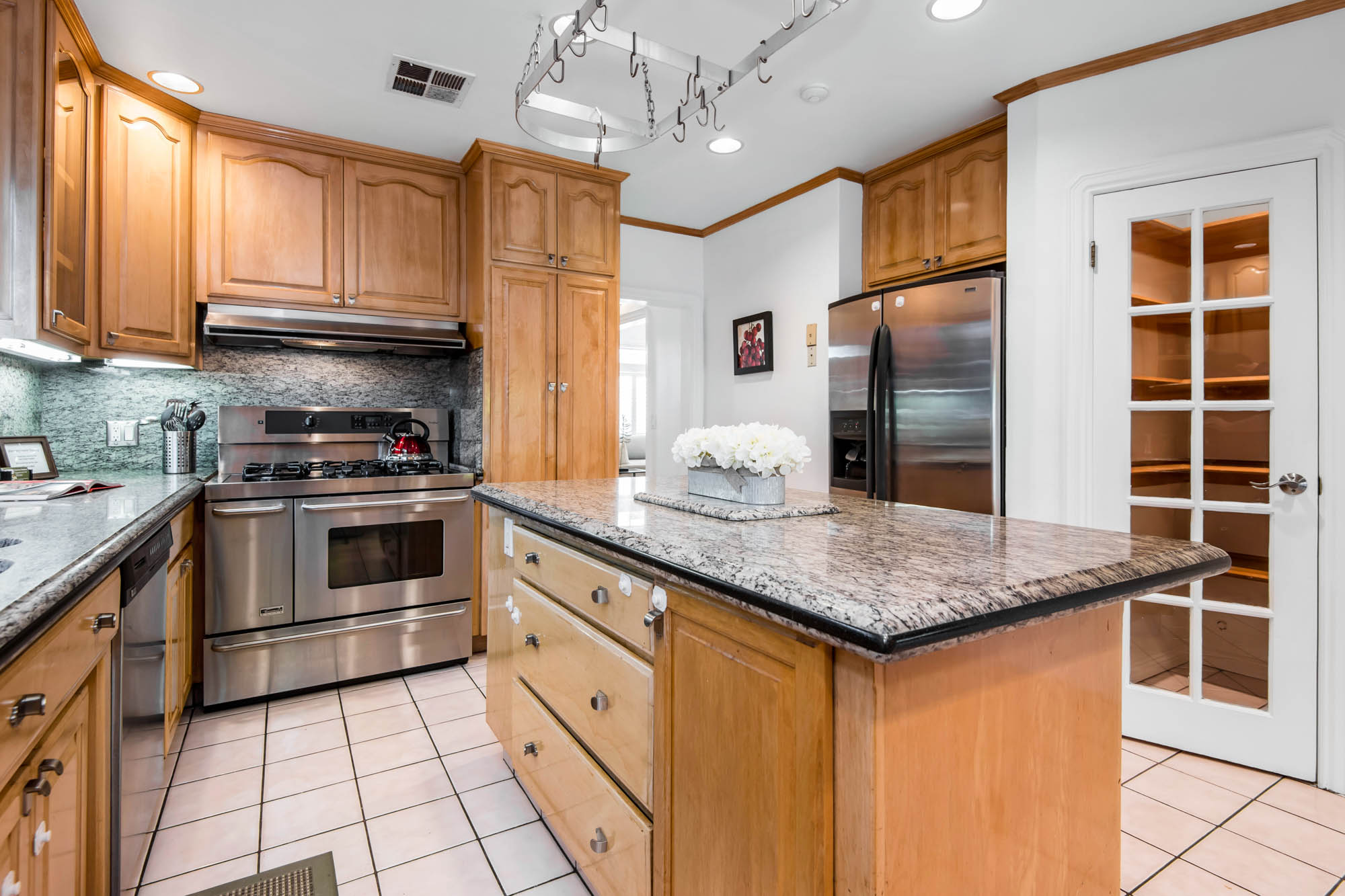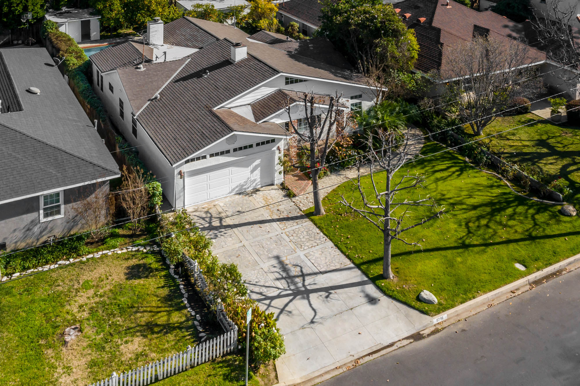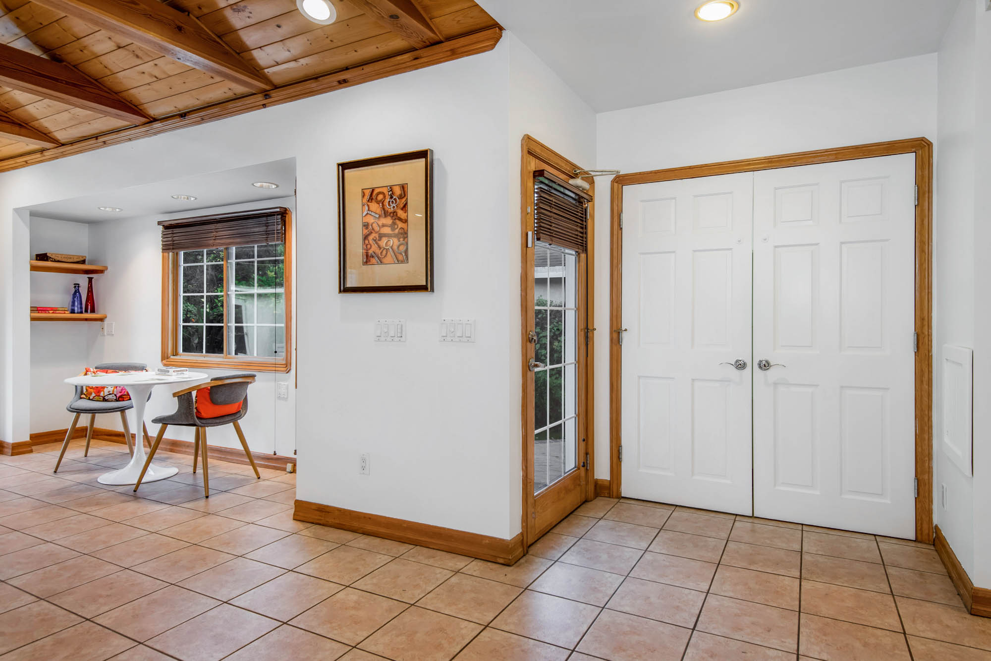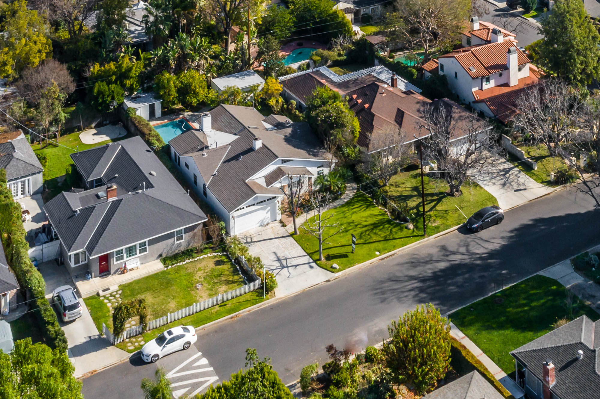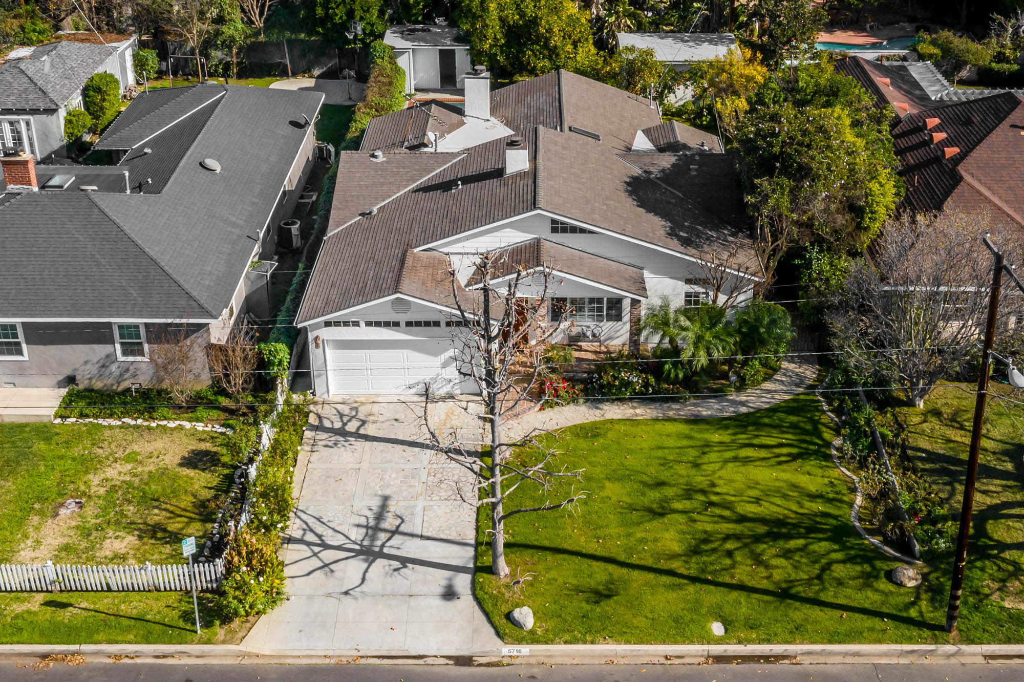 Welcome home to your 4 bedroom, 3 bathroom house in Valley Glen. Upon entering you’re greeted by a formal living room with floor to ceiling built-ins surrounding the stone fireplace. High ceilings and custom window treatments bring in an abundance of natural light. Down the hall from the living room, you’ll pass the first bedroom, bathroom, and enter into your spacious kitchen. With plenty of cabinetry, a pantry, and a large center island, this kitchen is perfect for all of your meal preparations. Off of the kitchen is the large family room. Beamed ceilings, windows, and french doors to the backyard make this a great open space for entertaining. The high ceilings continue into the formal dining room which also features a skylight and french doors. The master suite encompasses his and hers closets, a fireplace, and a private bathroom with a walk in shower. French doors in your master suite open to the backyard and provide amazing morning views of the pool. The home is complete with two more bedrooms and an additional bathroom. The backyard is a great place to gather friends and family for celebrations by the pool. A large patio with a built-in bbq completes the outdoor living experience. Two detached structures in the backyard provide extra storage and could be transformed into an office or hang out space. Additional features include mature fruit trees, control over the pool and spa from your phone or tablet, two car garage, and side by side washer and dryer.