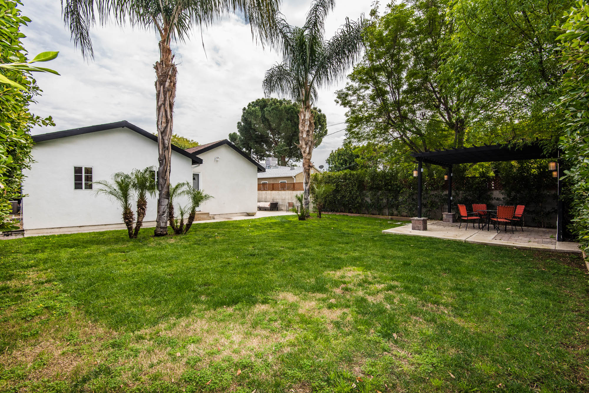 Located in one of the best pockets of Reseda lies this updated 4 bed, 2 bath home with lots of charm. As you enter through the front door, you are greeted by wood floors and large windows. The living room has a separate seating nook, perfect for curling up with a good book. Flowing directly from the living room is the family room, ideal for watching a movie or transforming into playroom or studio. The updated kitchen features stainless steel appliances and an abundance of modern white cabinets. The spacious dining room has sliding glass doors leading to the yard, creating the ultimate indoor-outdoor experience. The huge master suite offers a large walk-in closet with custom built-ins and a beautifully remodeled master bath with jacuzzi tub and in-ceiling Bluetooth speaker. Outside, the backyard has mature trees for privacy, an expansive lawn, and a terraced patio area. Don’t miss out on this wonderful home!