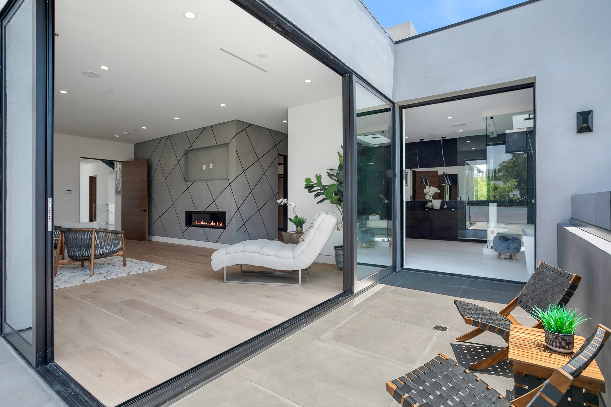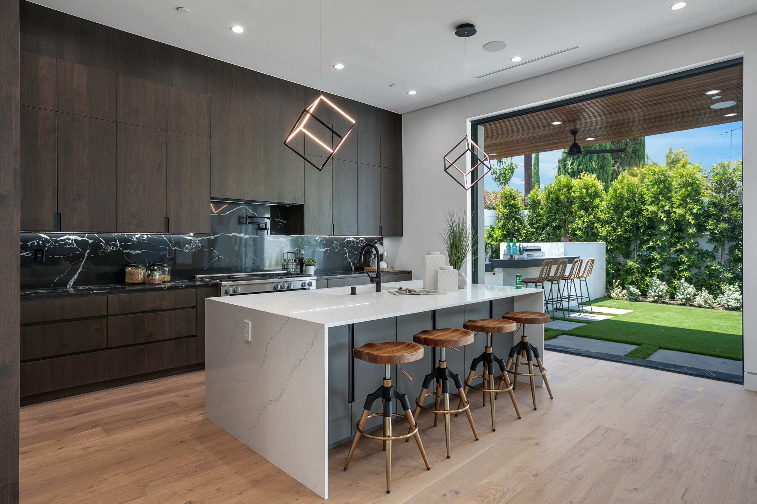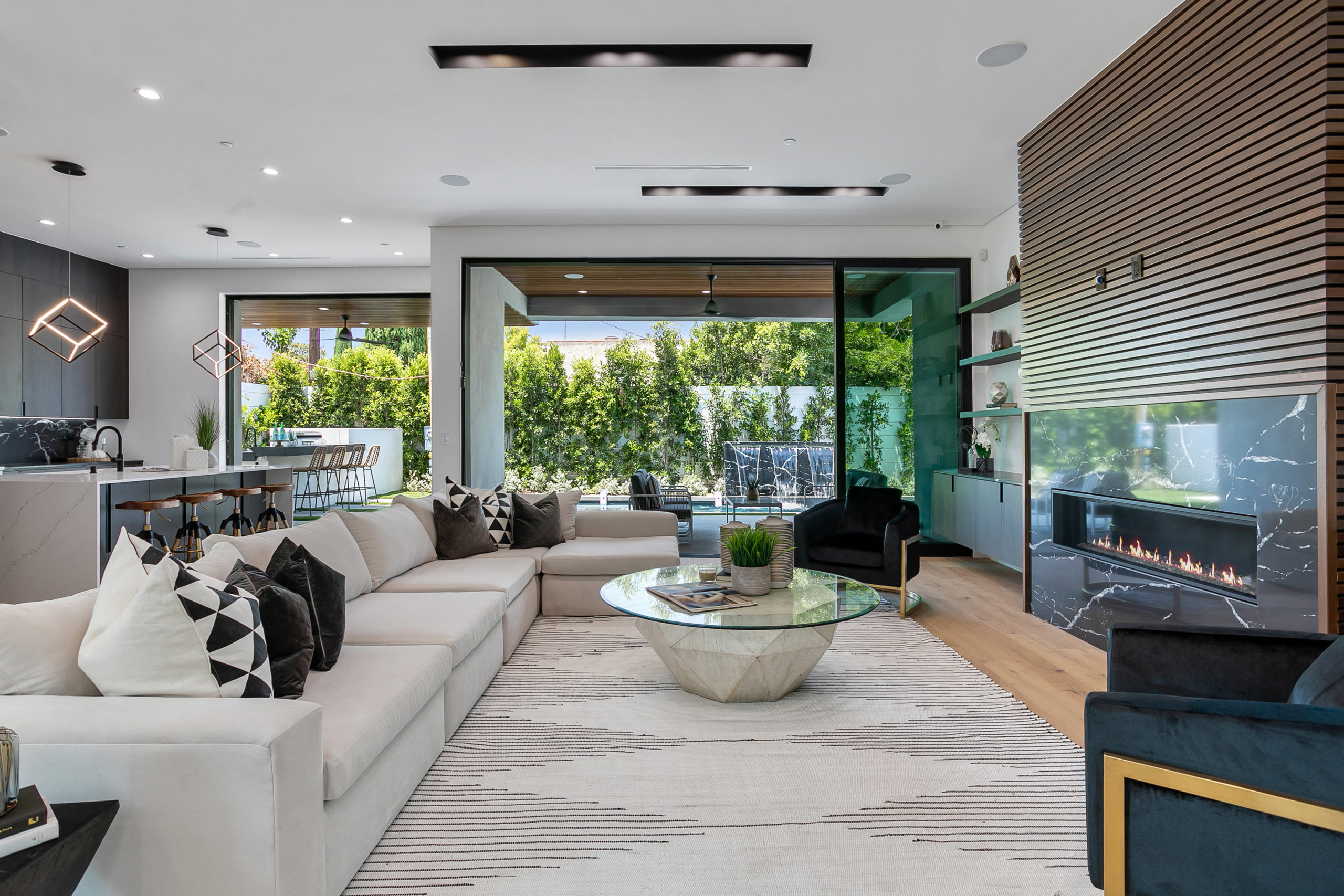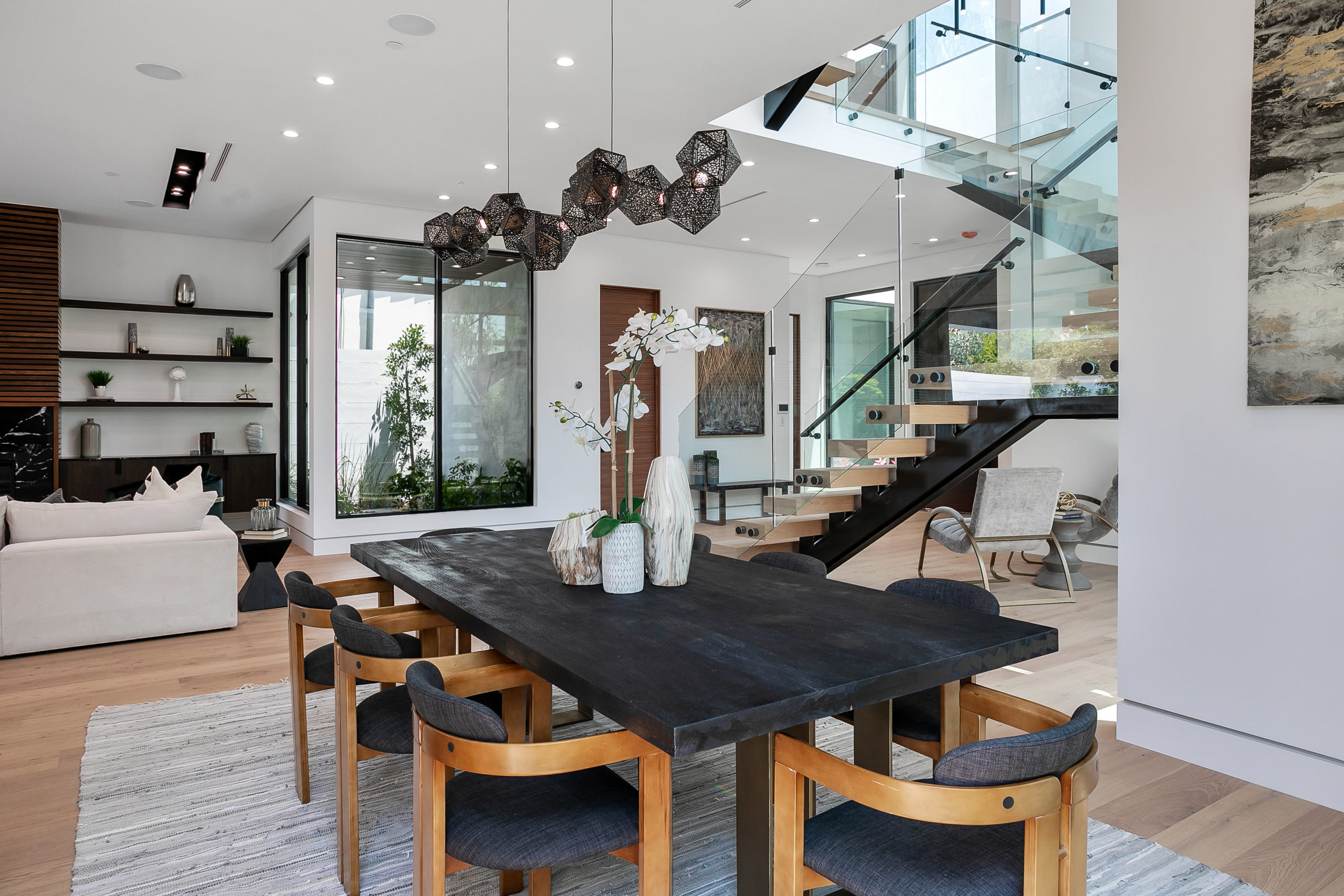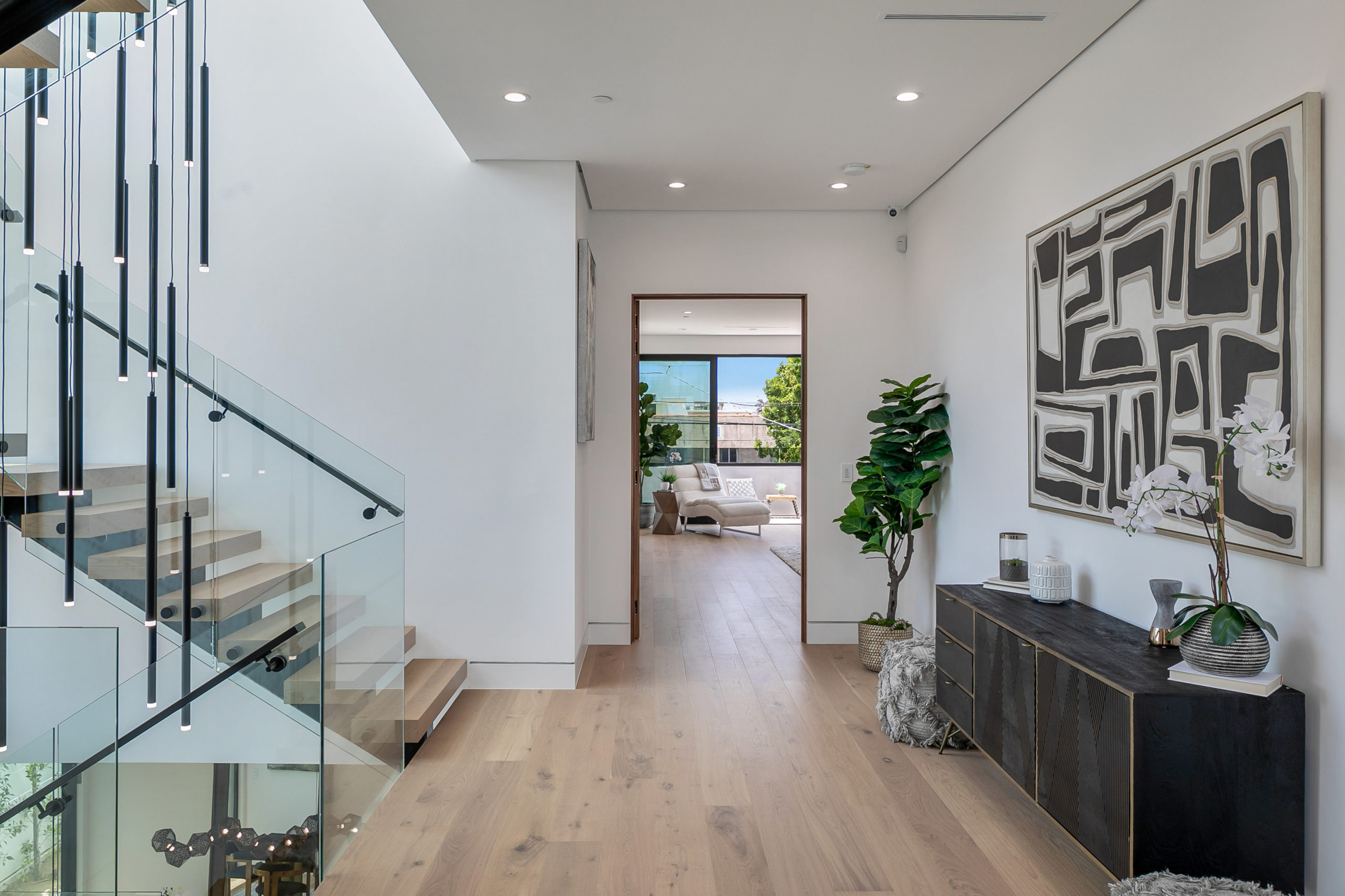 THE CROWN JEWEL OF BEVERLY GROVE! An ultimate modern find in L. A's hottest enclave offers a sweeping open floorplan with a grand entrance, accompanied by a contemporary foyer that leads to the oak wood finished first floor which features a theater, office, dining room and a gourmet kitchen with Miele appliances overlooking the fire lit living room with disappearing floor to ceiling glass doors welcoming you to the manicured private backyard with an outdoor kitchen, lounge area, wraparound pool/spa and a waterfall. Second floor holds a pristine master suite partnered by a luxurious bathroom, designer walk-in closet and a back terrace. Neighboring the master, lay 3 sizeable en suites and a laundry room. Making your way up the floating stairs, stages an entertainers rooftop deck with panoramic views, BBQ Island, and a freestanding jacuzzi. This exquisite new construction modern gem is a great home for the most discerning buyers.