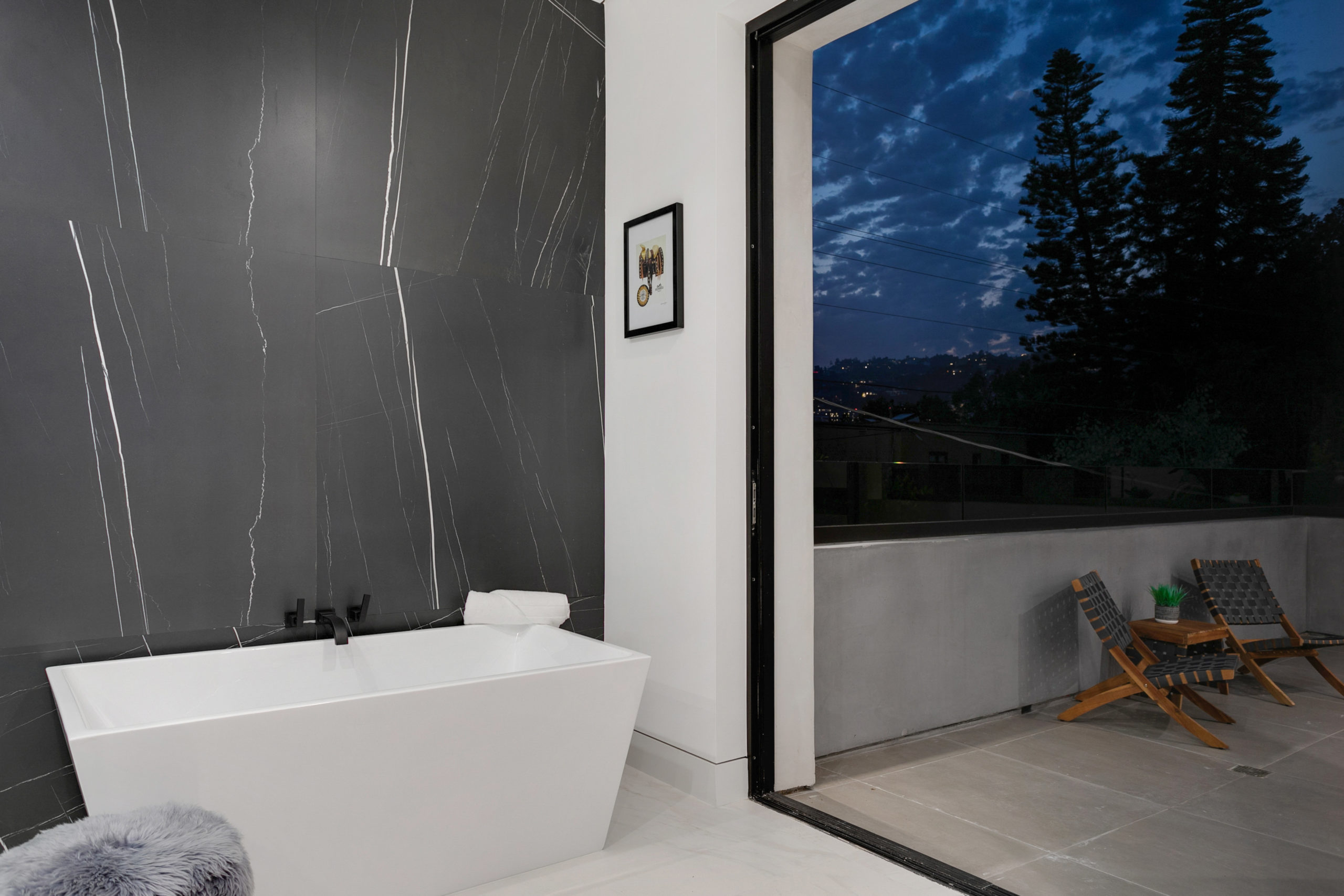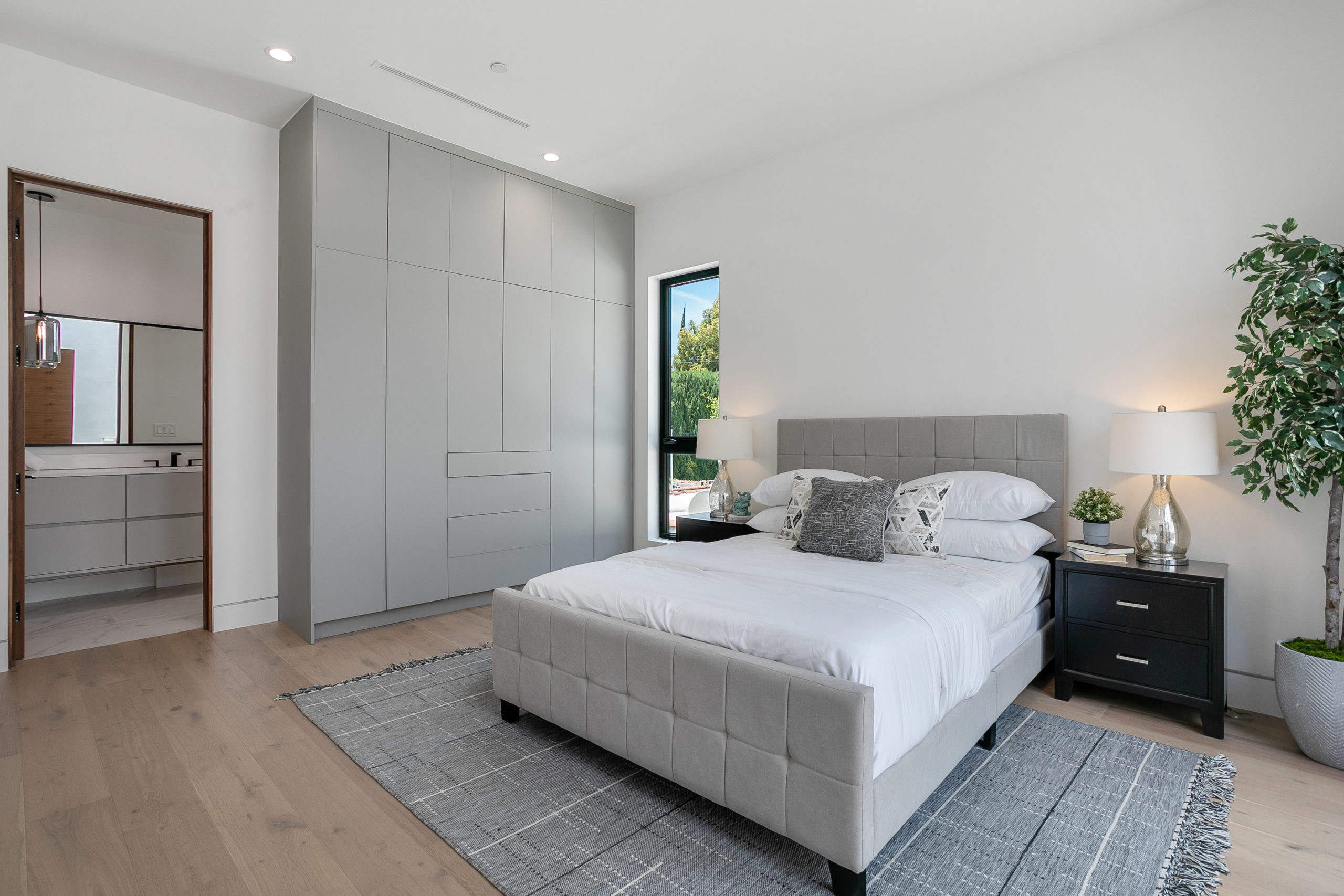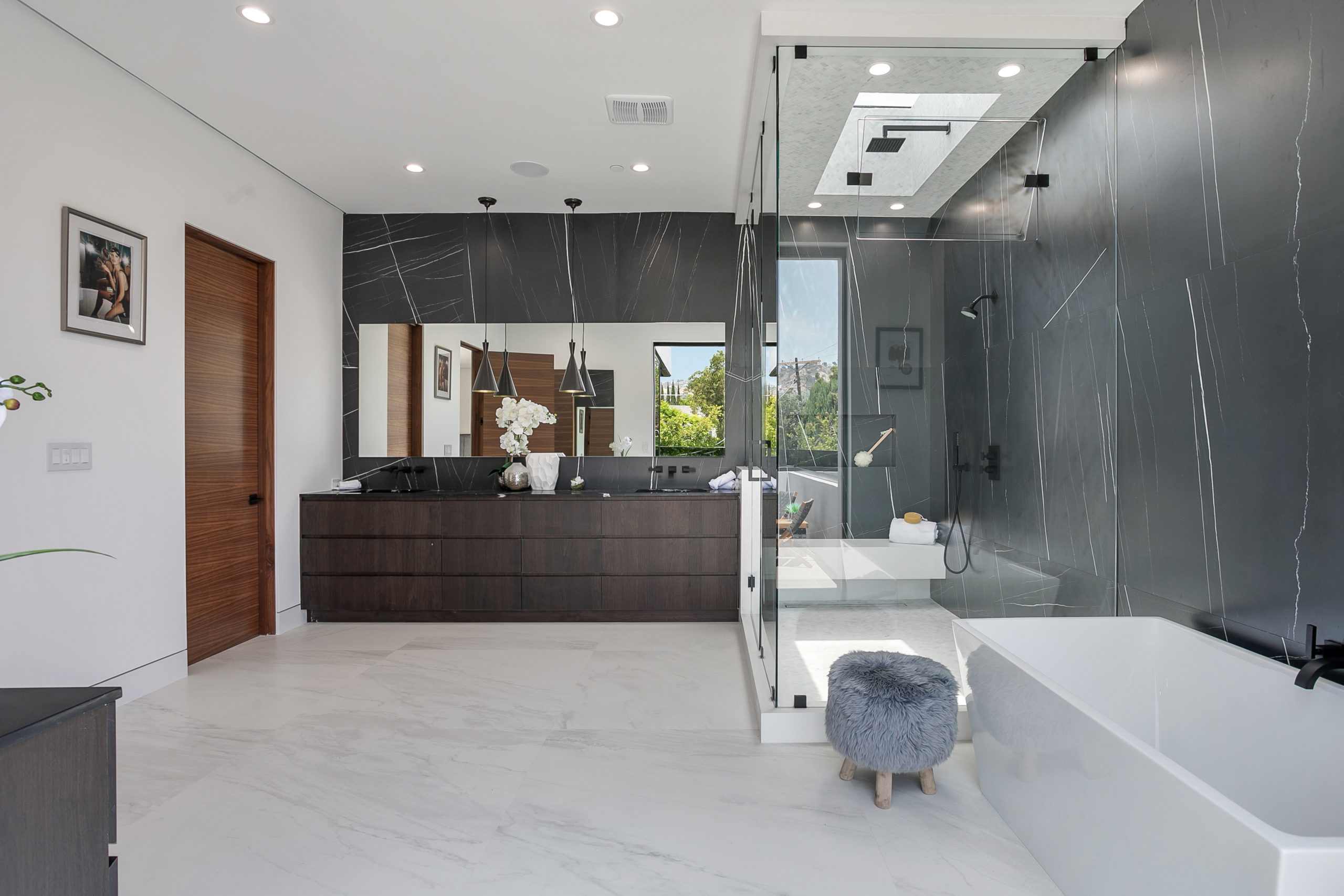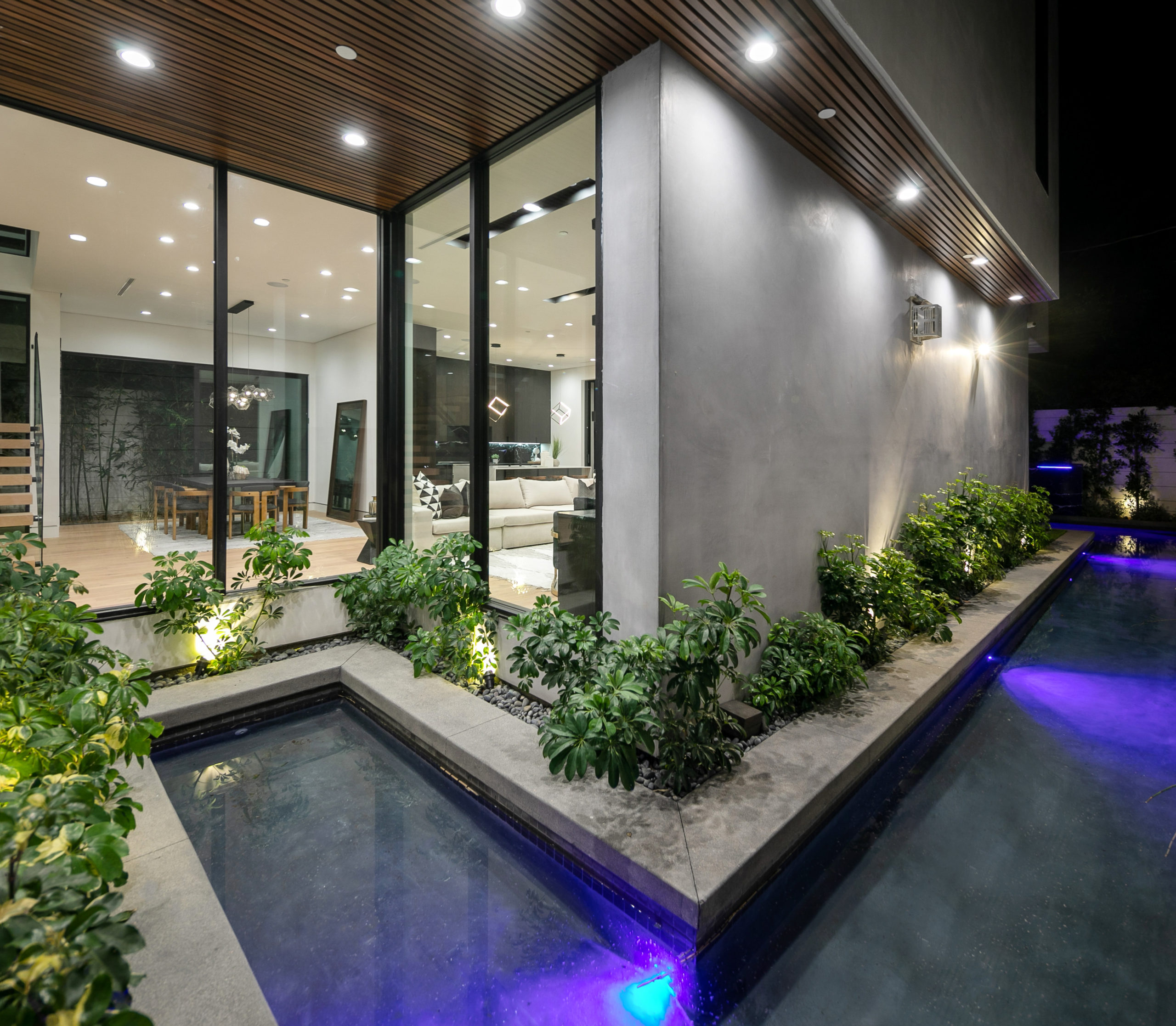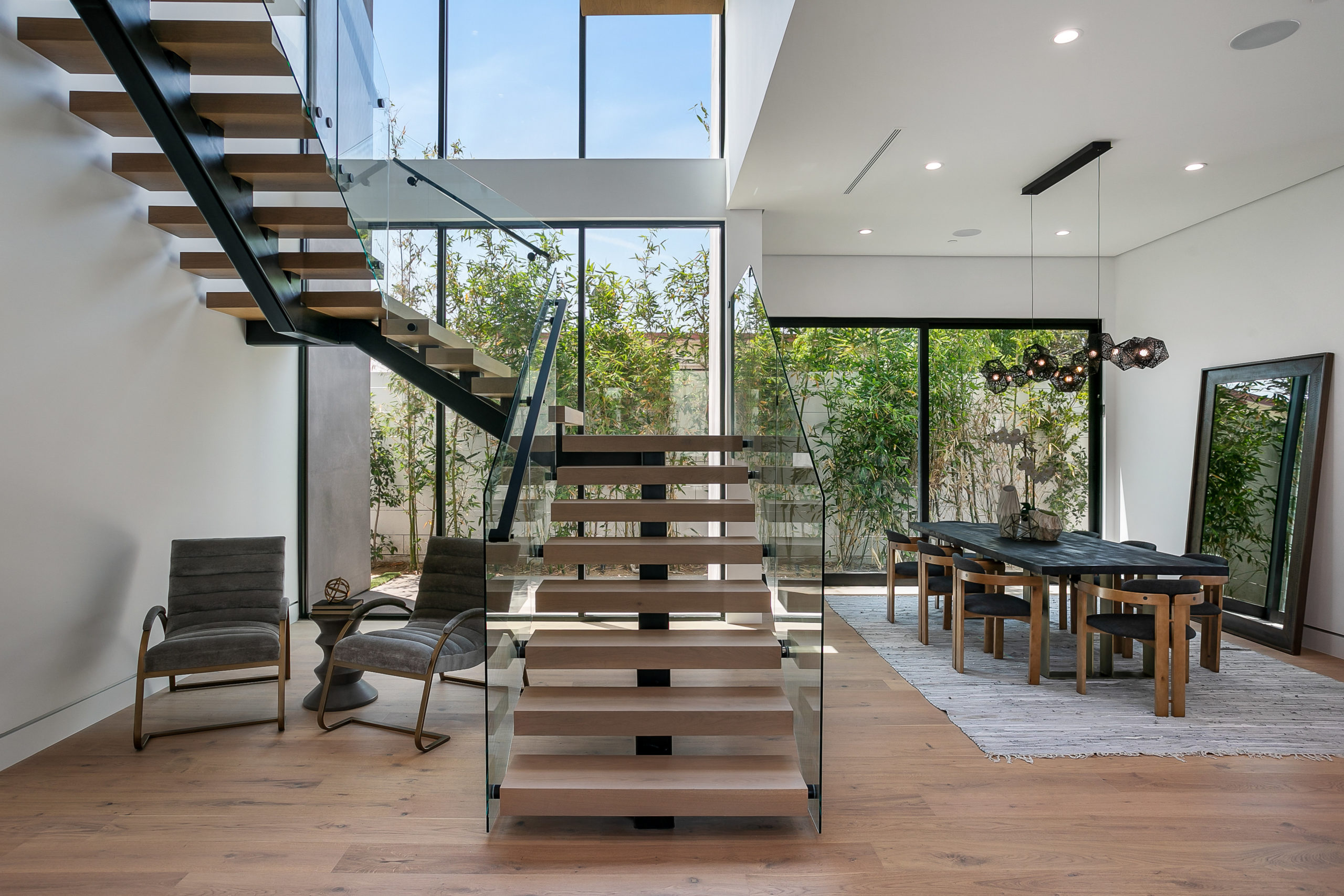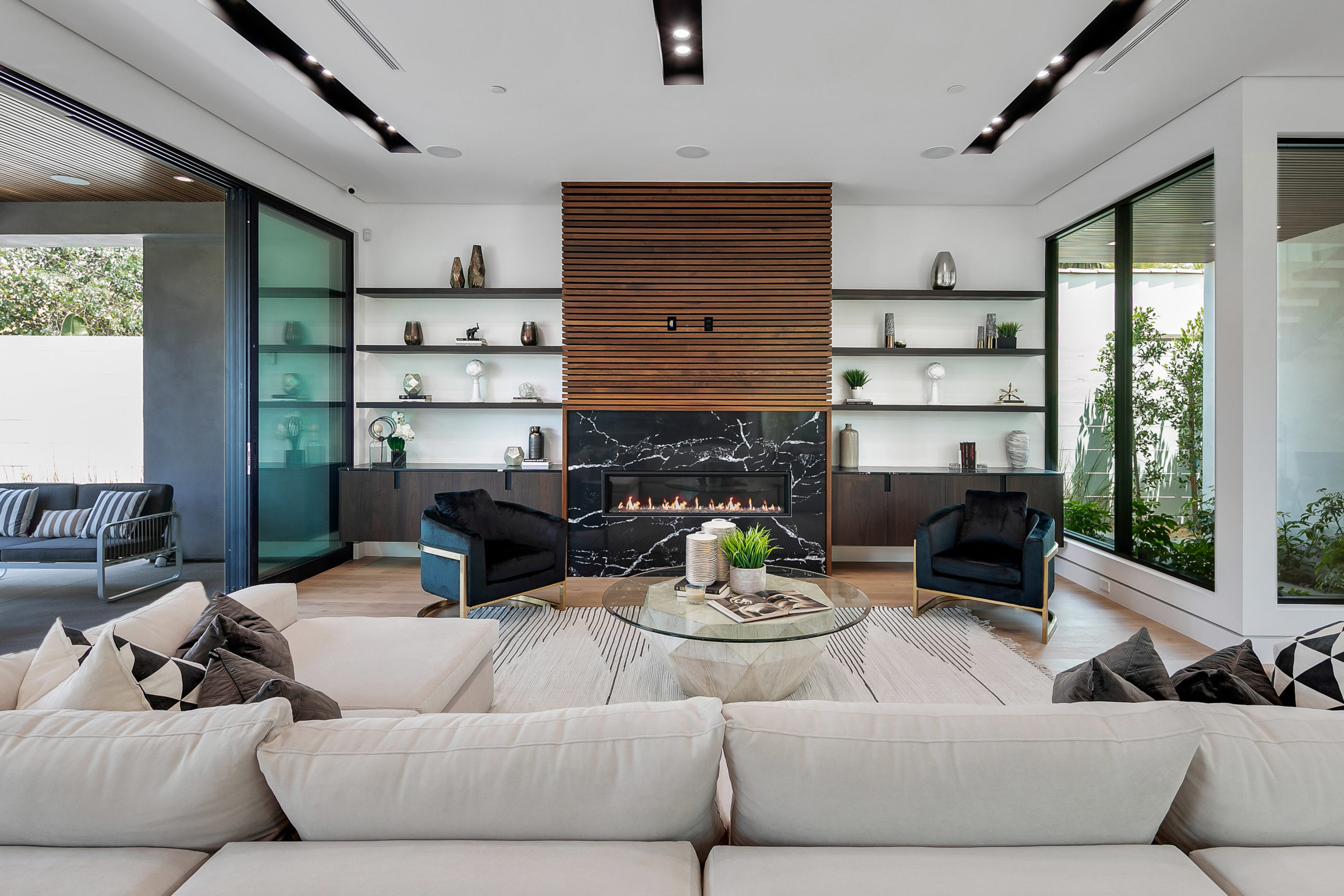 THE CROWN JEWEL OF BEVERLY GROVE! An ultimate modern find in L. A's hottest enclave offers a sweeping open floorplan with a grand entrance, accompanied by a contemporary foyer that leads to the oak wood finished first floor which features a theater, office, dining room and a gourmet kitchen with Miele appliances overlooking the fire lit living room with disappearing floor to ceiling glass doors welcoming you to the manicured private backyard with an outdoor kitchen, lounge area, wraparound pool/spa and a waterfall. Second floor holds a pristine master suite partnered by a luxurious bathroom, designer walk-in closet and a back terrace. Neighboring the master, lay 3 sizeable en suites and a laundry room. Making your way up the floating stairs, stages an entertainers rooftop deck with panoramic views, BBQ Island, and a freestanding jacuzzi. This exquisite new construction modern gem is a great home for the most discerning buyers.