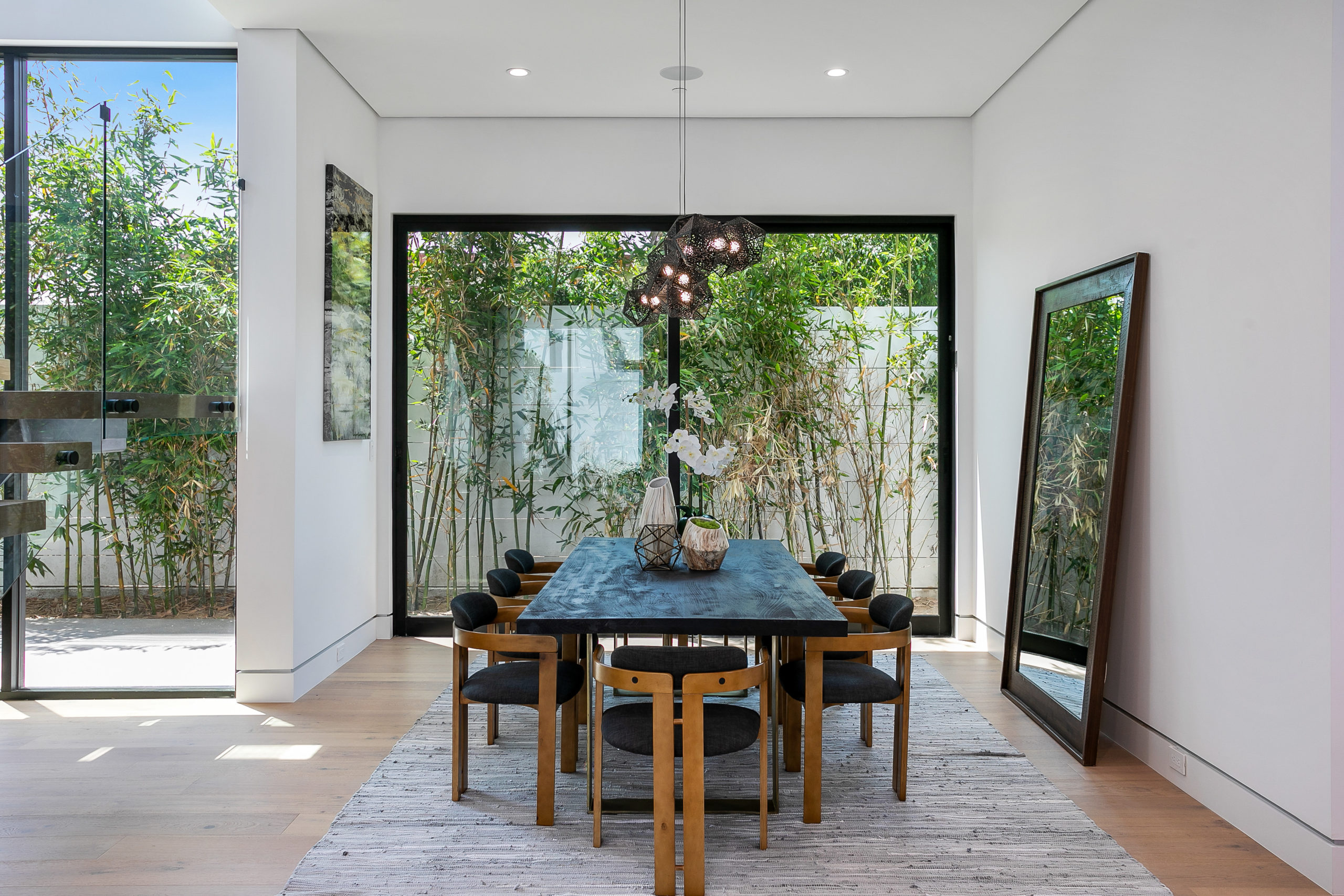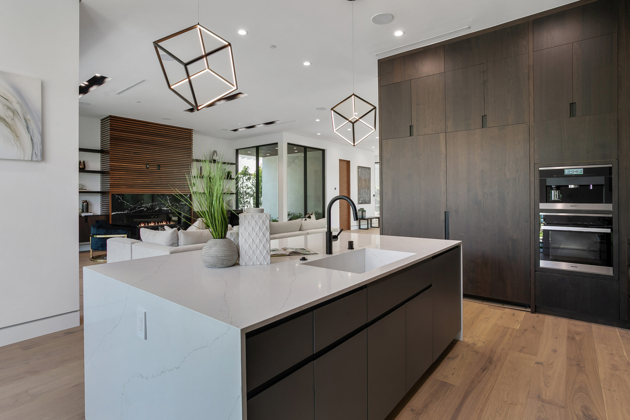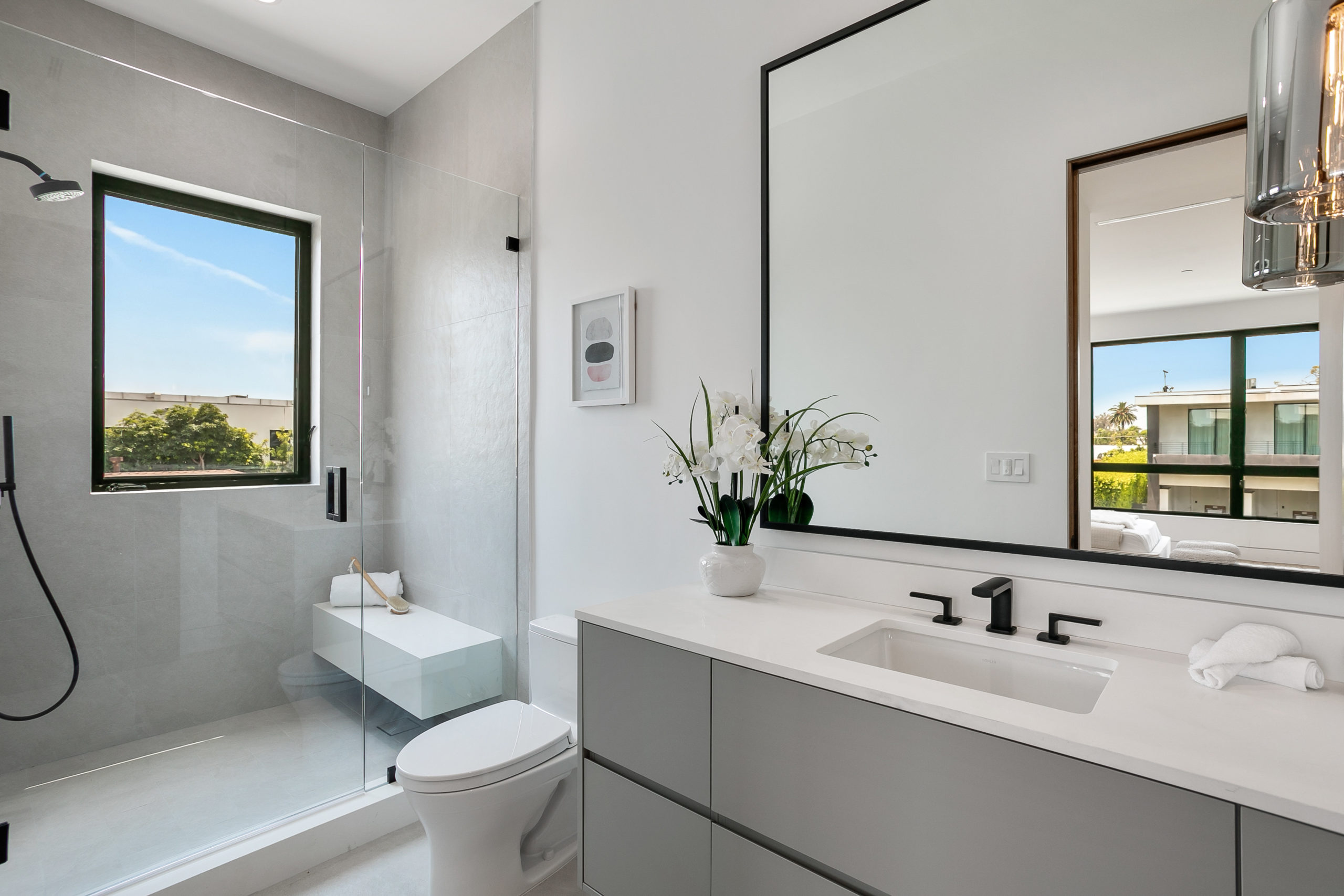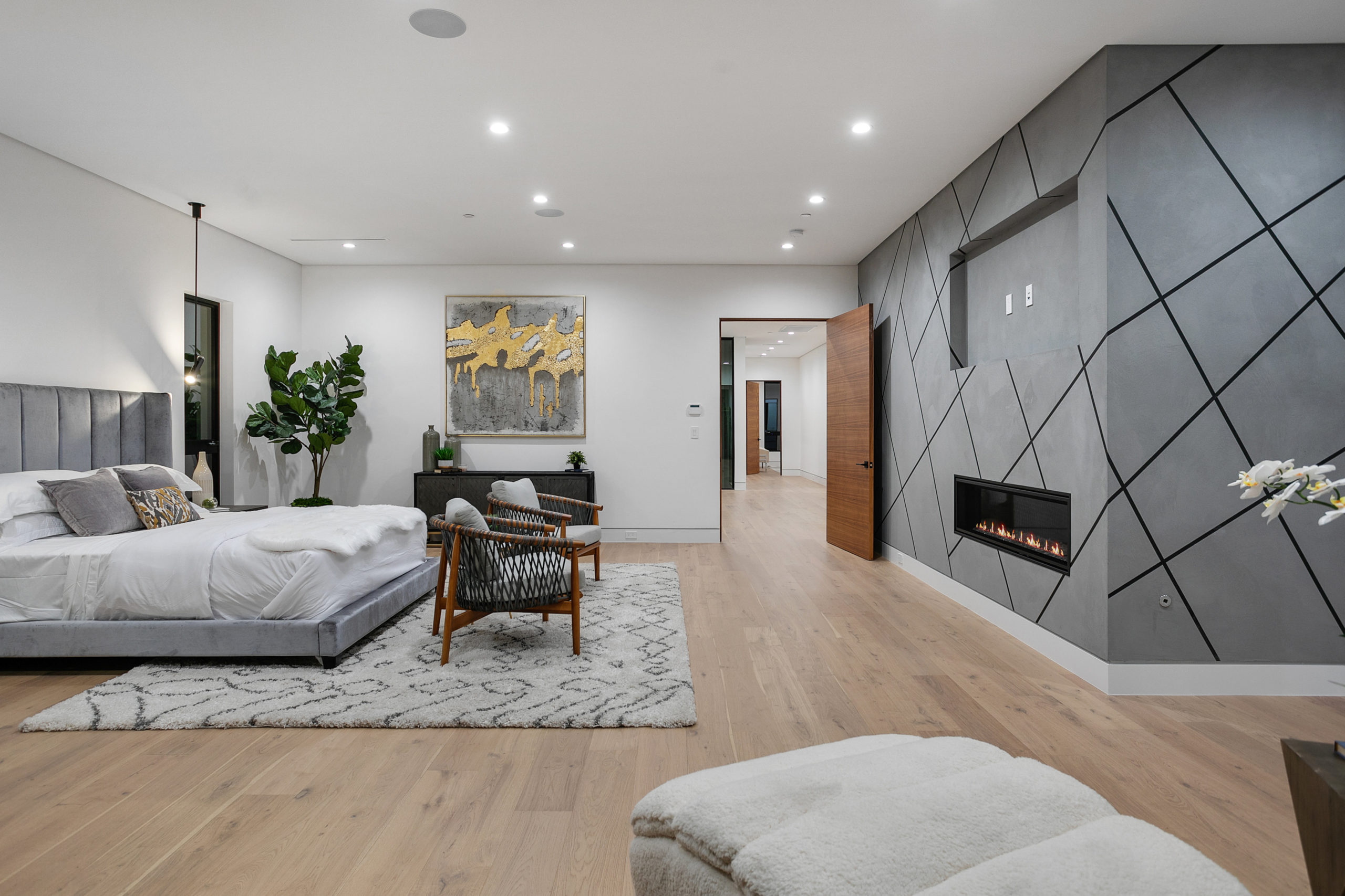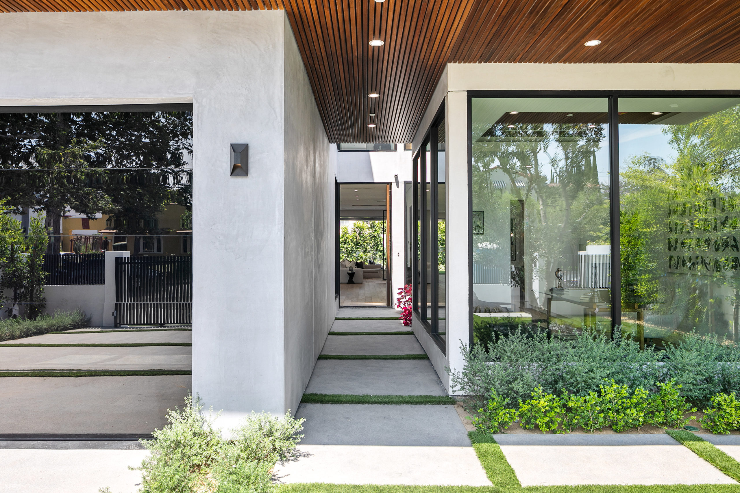 THE CROWN JEWEL OF BEVERLY GROVE! An ultimate modern find in L. A's hottest enclave offers a sweeping open floorplan with a grand entrance, accompanied by a contemporary foyer that leads to the oak wood finished first floor which features a theater, office, dining room and a gourmet kitchen with Miele appliances overlooking the fire lit living room with disappearing floor to ceiling glass doors welcoming you to the manicured private backyard with an outdoor kitchen, lounge area, wraparound pool/spa and a waterfall. Second floor holds a pristine master suite partnered by a luxurious bathroom, designer walk-in closet and a back terrace. Neighboring the master, lay 3 sizeable en suites and a laundry room. Making your way up the floating stairs, stages an entertainers rooftop deck with panoramic views, BBQ Island, and a freestanding jacuzzi. This exquisite new construction modern gem is a great home for the most discerning buyers.
