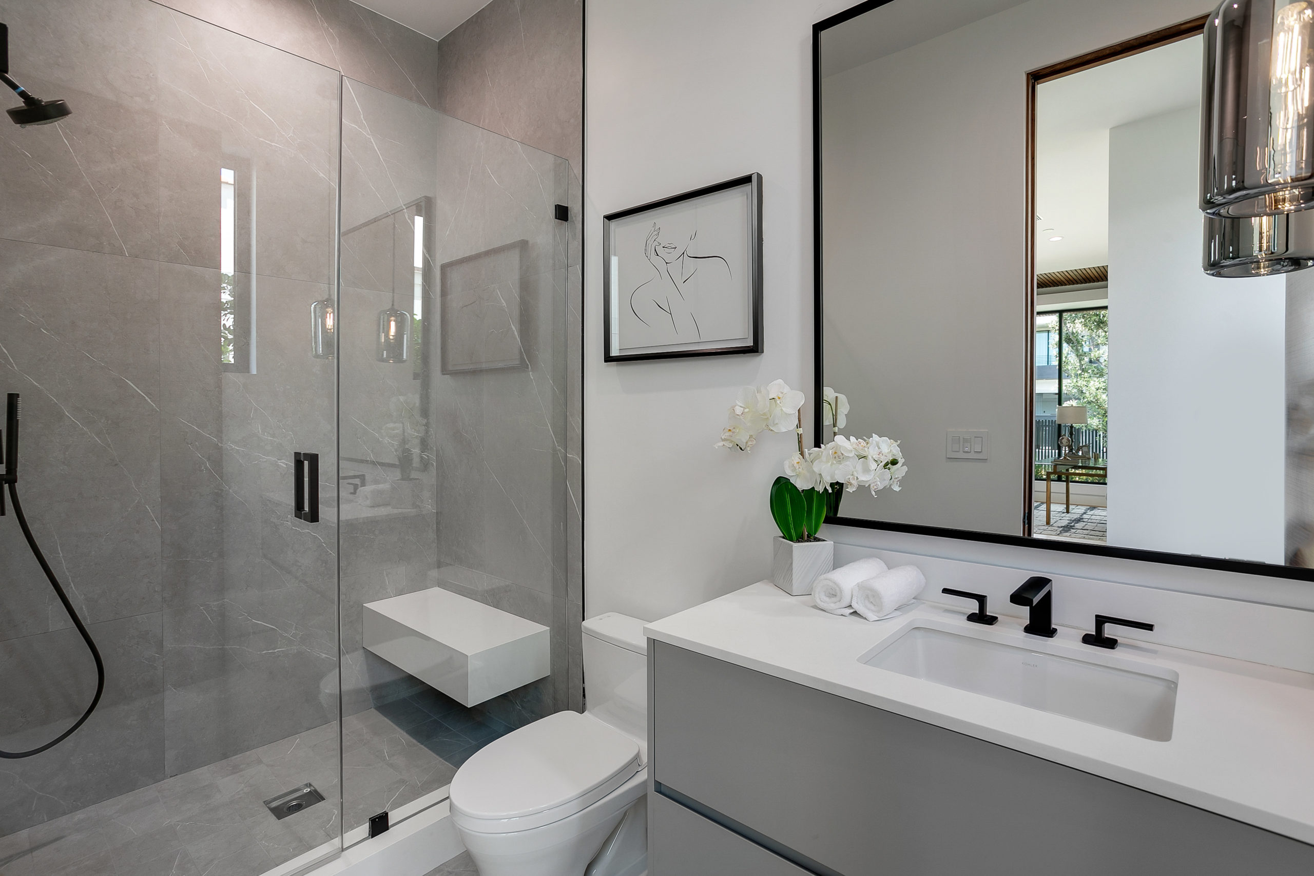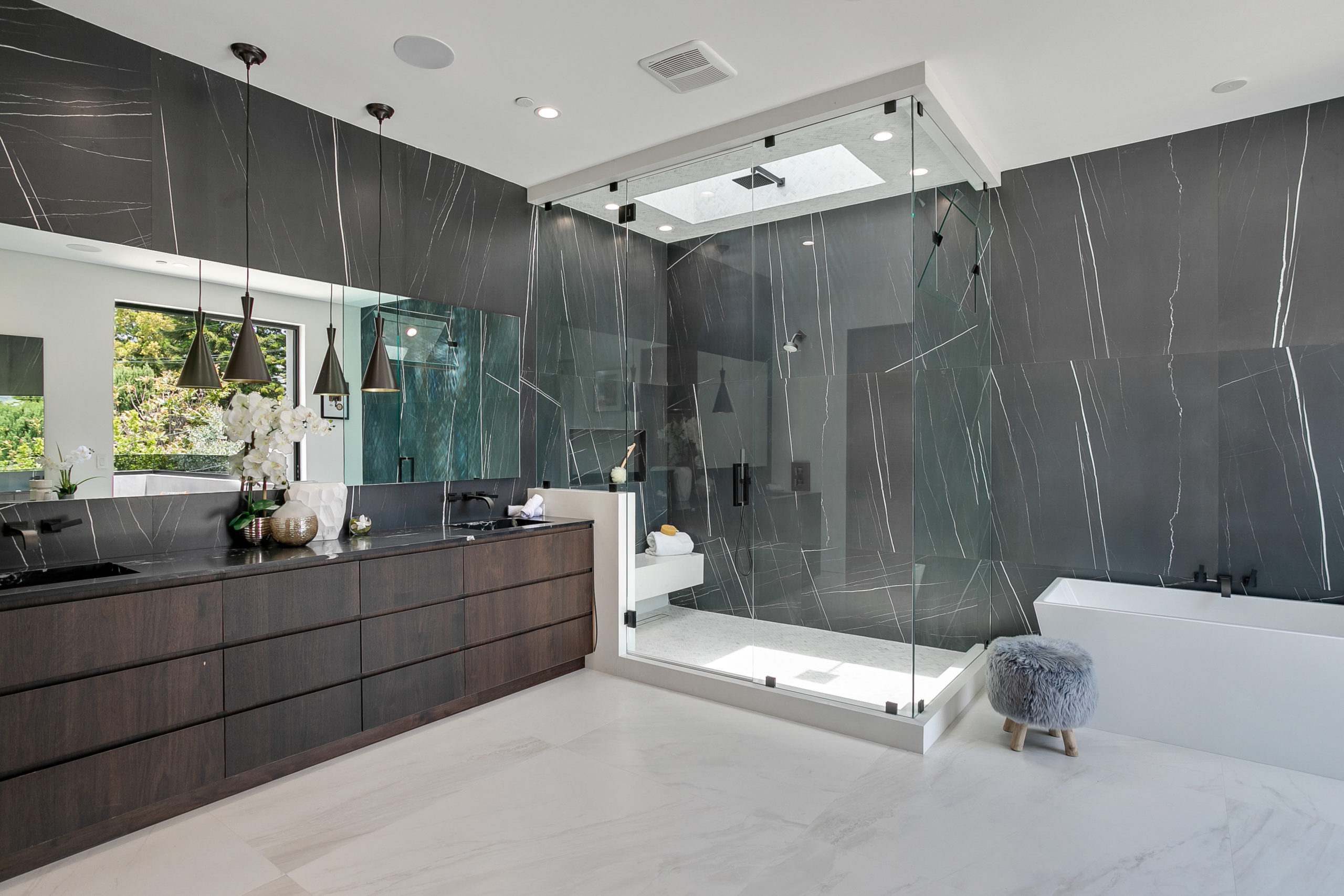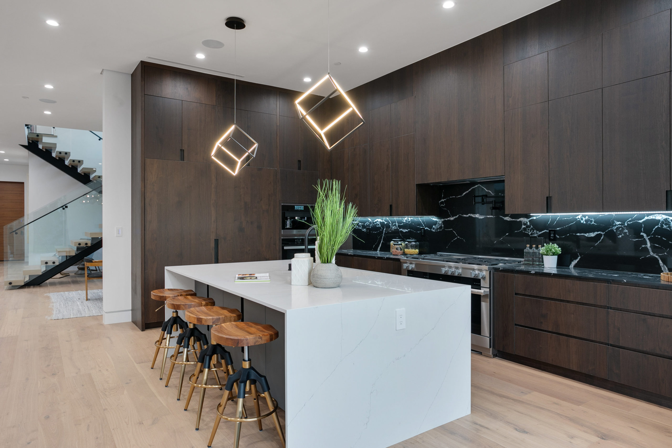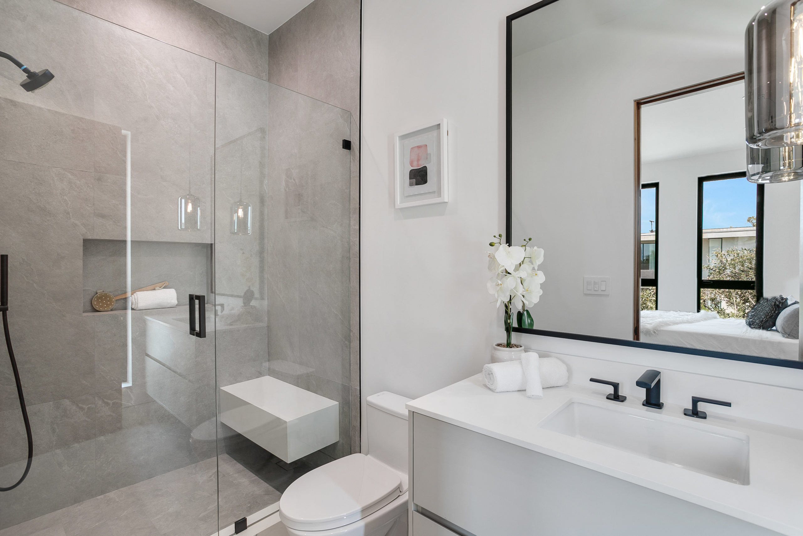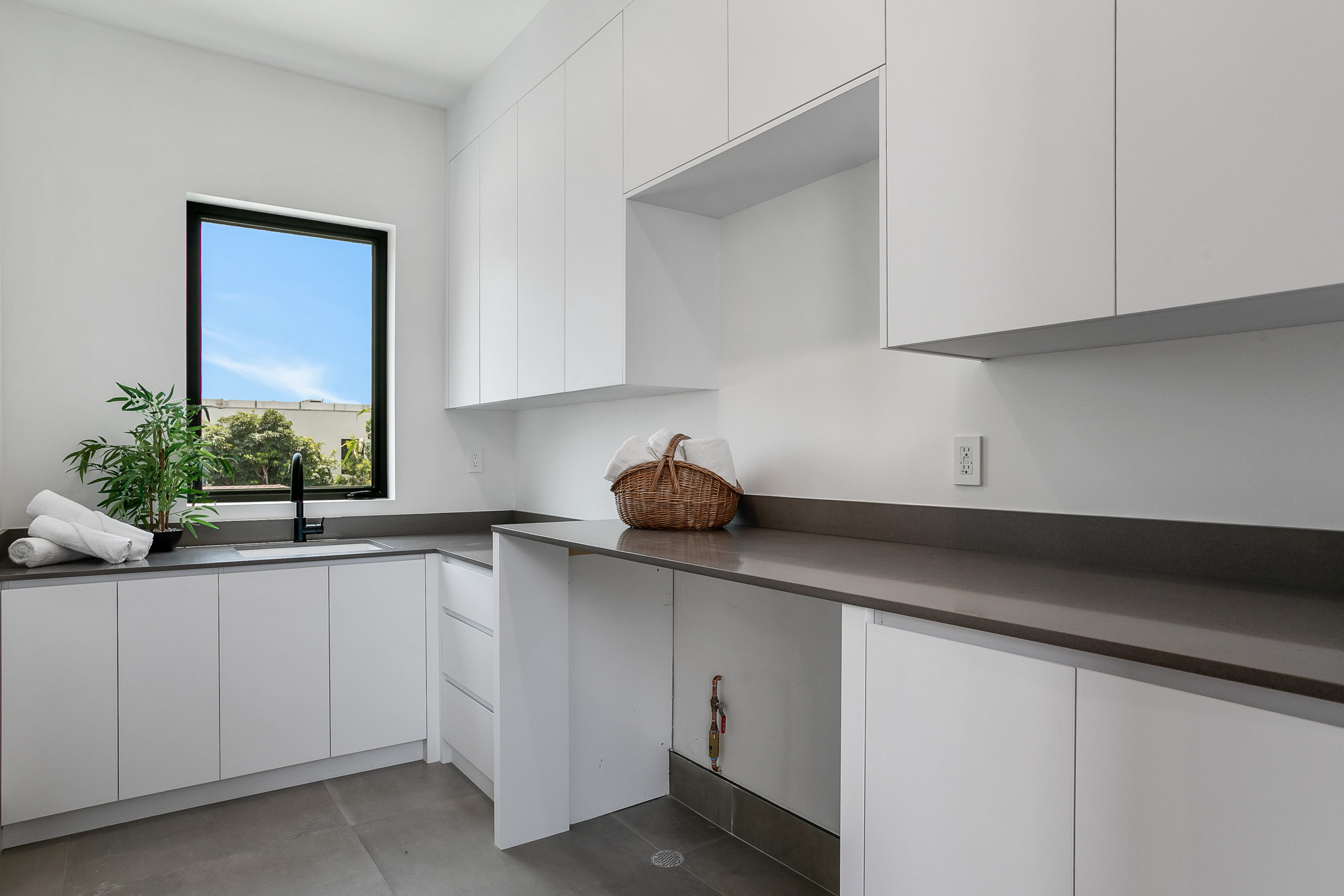 THE CROWN JEWEL OF BEVERLY GROVE! An ultimate modern find in L. A's hottest enclave offers a sweeping open floorplan with a grand entrance, accompanied by a contemporary foyer that leads to the oak wood finished first floor which features a theater, office, dining room and a gourmet kitchen with Miele appliances overlooking the fire lit living room with disappearing floor to ceiling glass doors welcoming you to the manicured private backyard with an outdoor kitchen, lounge area, wraparound pool/spa and a waterfall. Second floor holds a pristine master suite partnered by a luxurious bathroom, designer walk-in closet and a back terrace. Neighboring the master, lay 3 sizeable en suites and a laundry room. Making your way up the floating stairs, stages an entertainers rooftop deck with panoramic views, BBQ Island, and a freestanding jacuzzi. This exquisite new construction modern gem is a great home for the most discerning buyers.