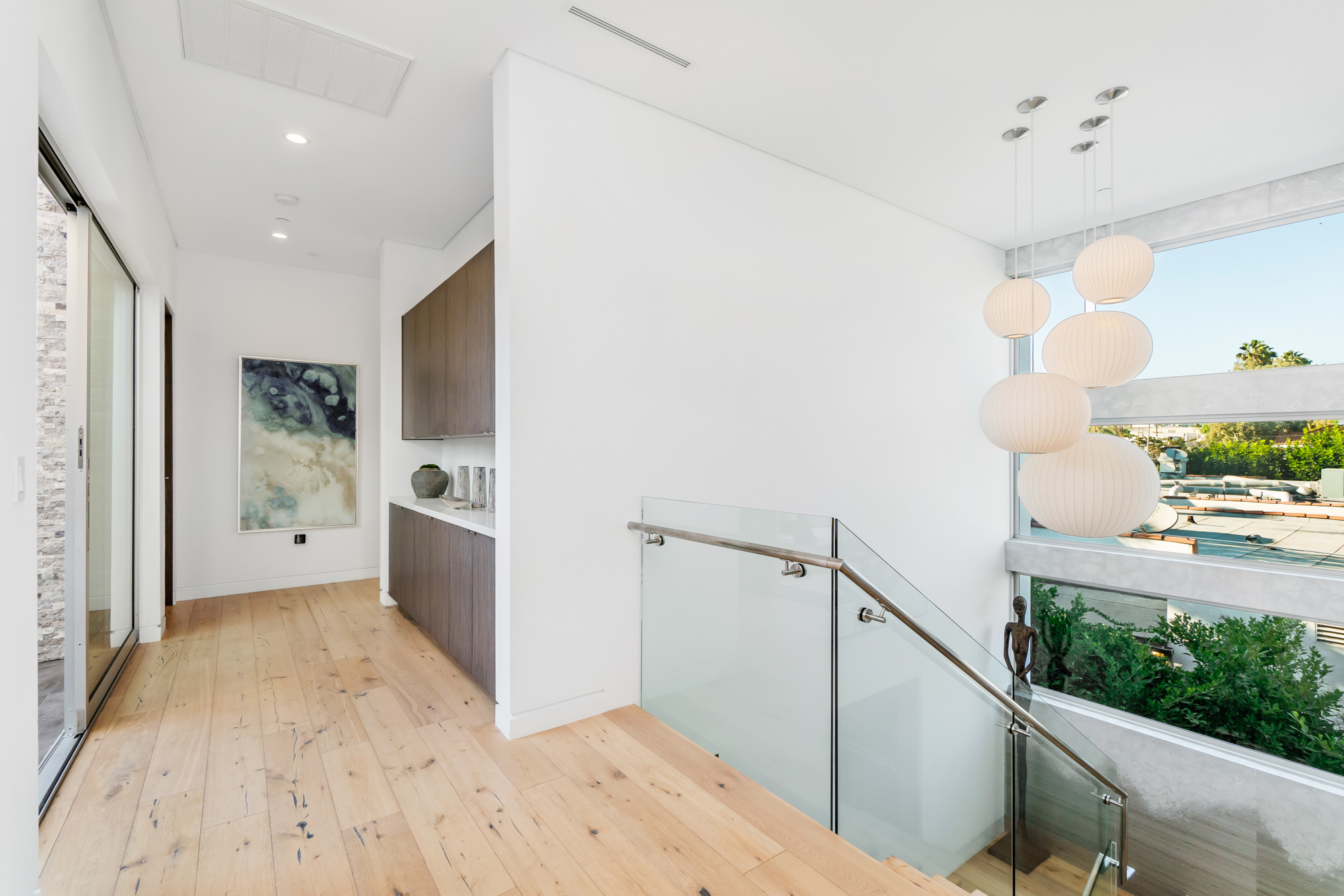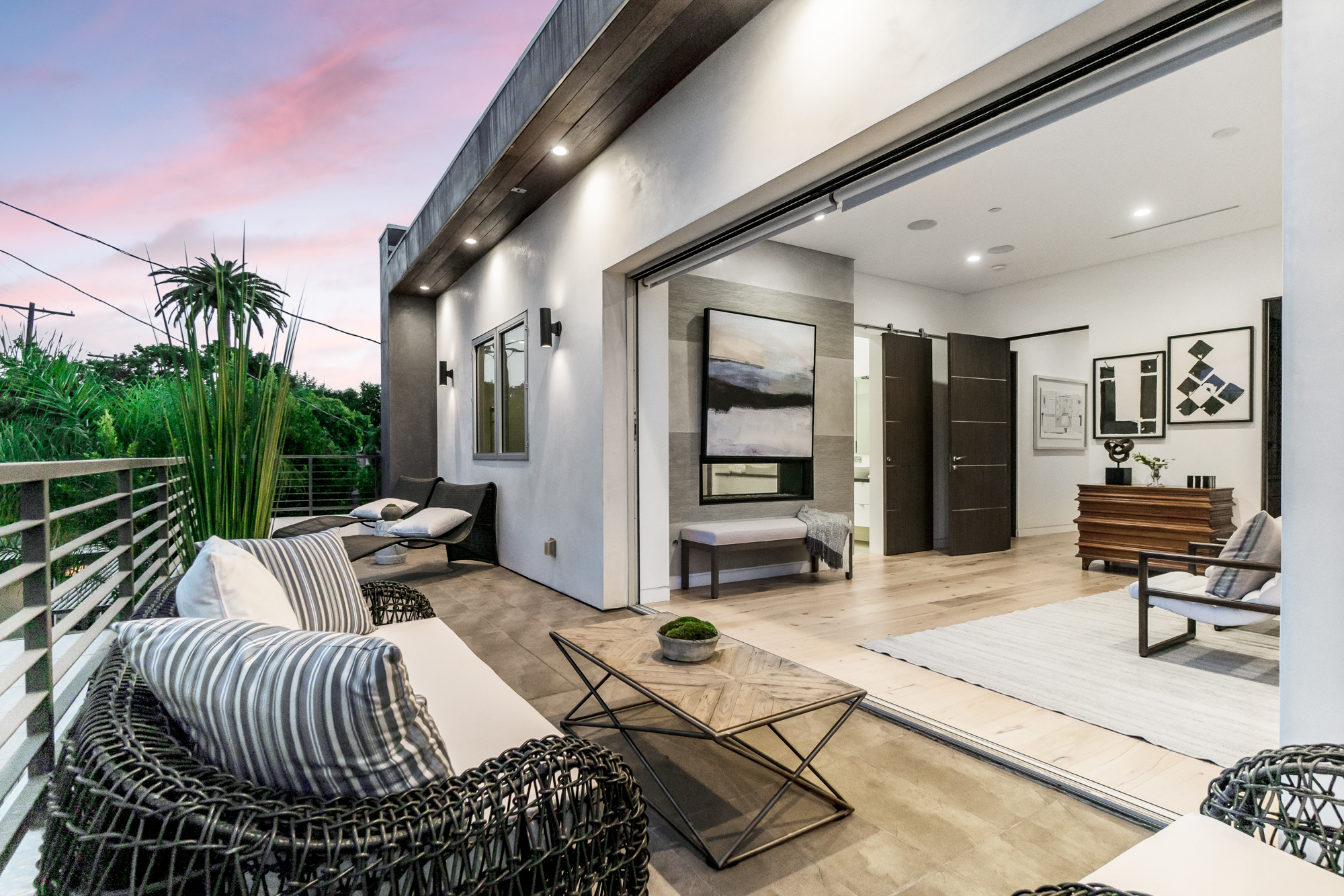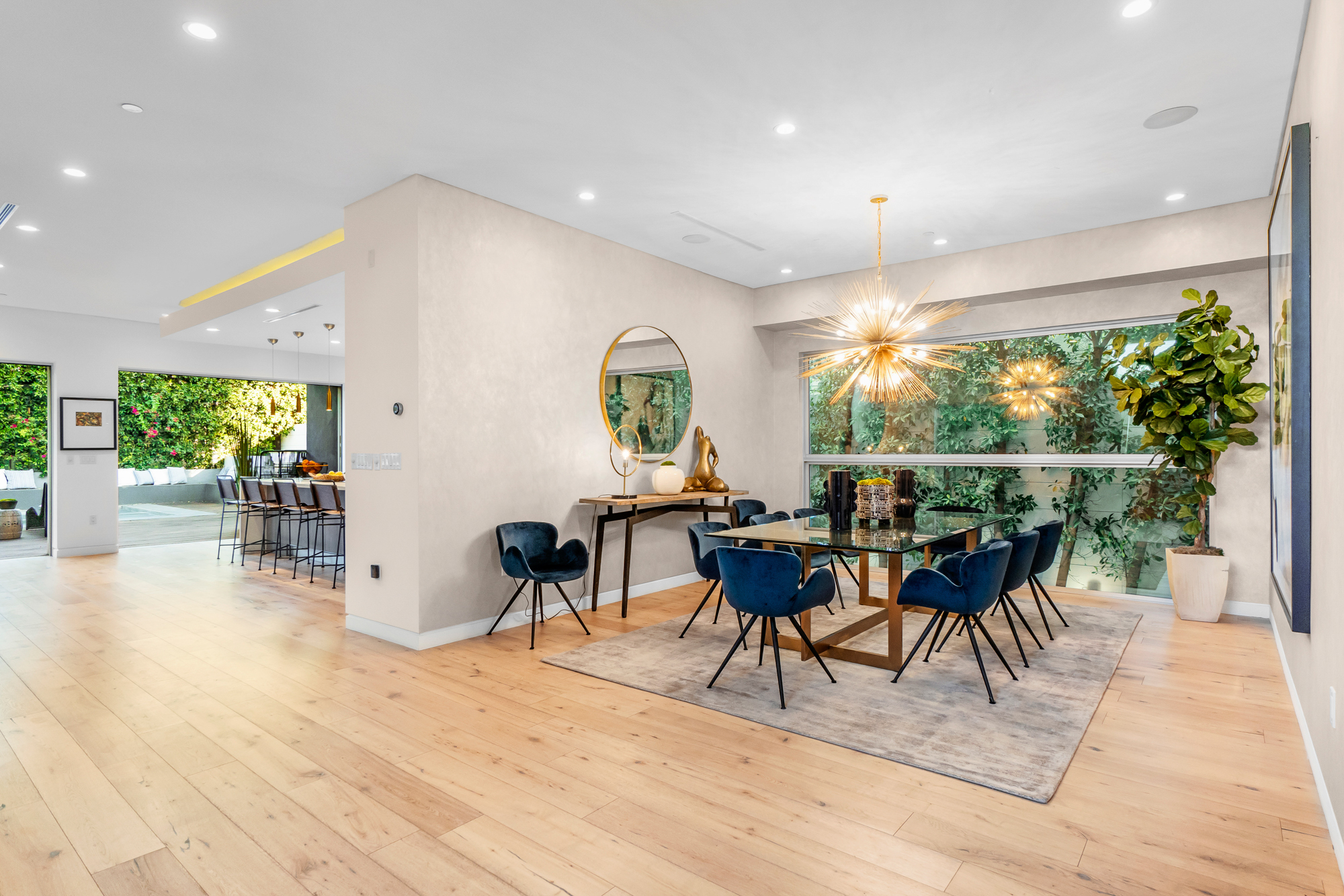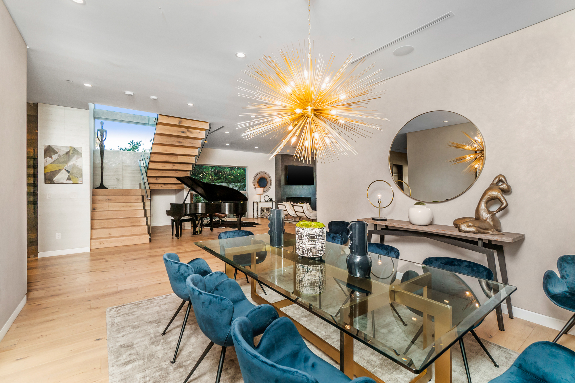 Tucked behind private gates and lush greenery, this newer construction home welcomes you to timeless design paired with luxurious finishes throughout. Open concept living allows for seamless entertaining from the elegant dining room, expansive family room, and glamorous chef’s kitchen. Enjoy preparing meals with top of the line Thermador appliances and a massive center island with room for seating. Continue the entertaining outdoors via large Fleetwood pocket doors from the family room & kitchen, extending the entertaining areas to a flush deck. The tranquil backyard sanctuary is equipped with a full outdoor kitchen with bbq, fire pit, built in lounge, pool & spa with waterfall feature, plenty of lounging space, powder room access from the side of the house, and an outdoor shower, perfect for a quick rinse off after a dip in the pool. Towering greenery and trees surround the backyard, offering ultimate privacy. Thoughtfully designed ensuite bedroom on the main floor is great for guests or an office. Striking floating staircase leads you upstairs to incredible hollywood sign views and an irresistible floorplan featuring four ensuite bedrooms, all offering their own exclusive private balconies. Additional bonus room at the top of the staircase presents possibilities for a second family room, office, play room, gym, etc. Adjacent, sliding doors lead to a beautiful outdoor lounge area with a color changing fireplace, perfect for relaxing and winding down before bed. Romantic master retreat showcases a boasting walk in closet, pocket doors to the balcony which spans the entire width of the house, and a see through fireplace, leading to the spa like master bathroom with a soaking tub, massive walk in shower, dual sinks, and privacy door. Enticing amenities include a wine cellar, laundry room, 2 car garage, and more. Enjoy a luxurious Hollywood lifestyle people dream about! Just moments from renowned shops, dining, and the Hollywood farmers market, it doesn’t get better than this.