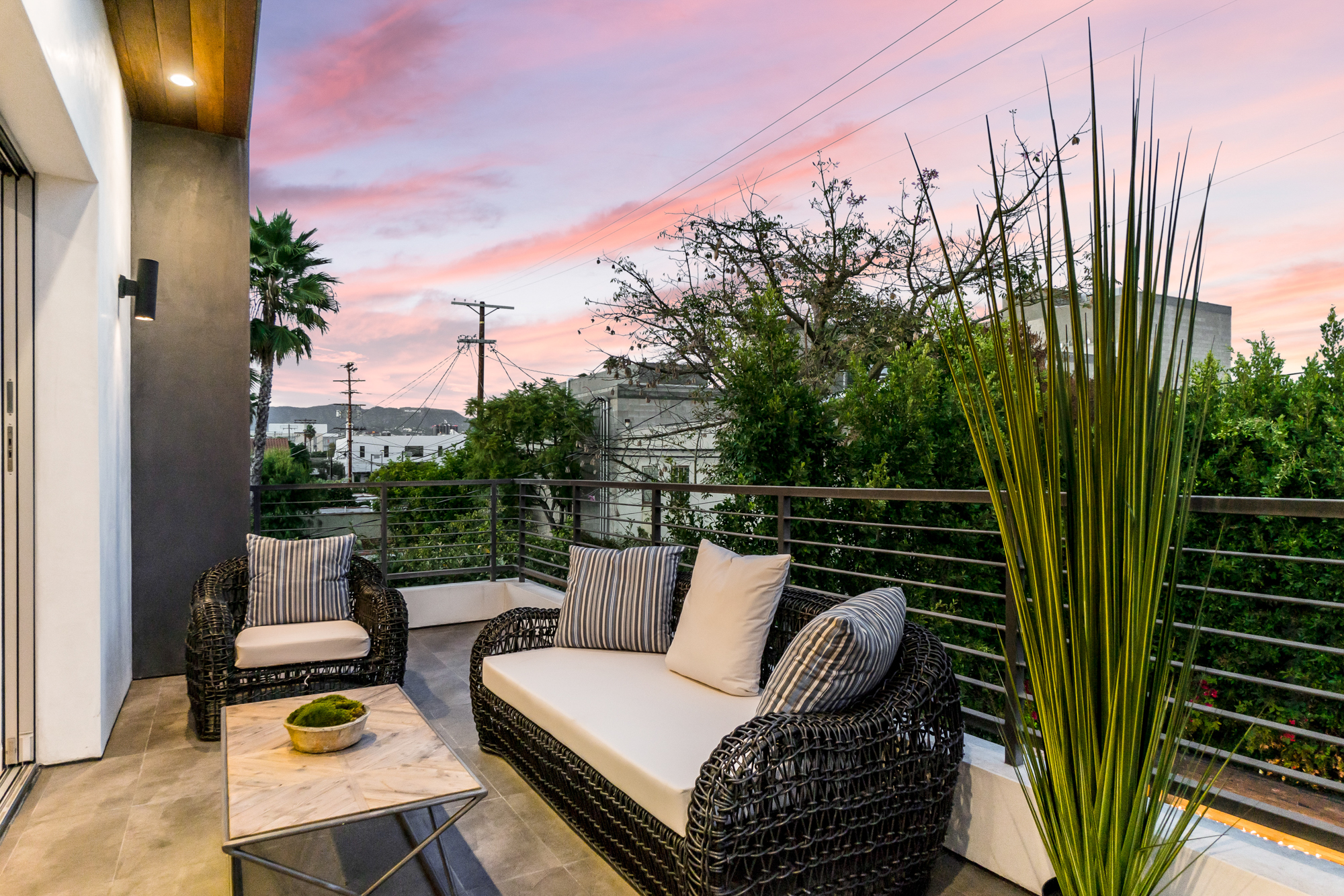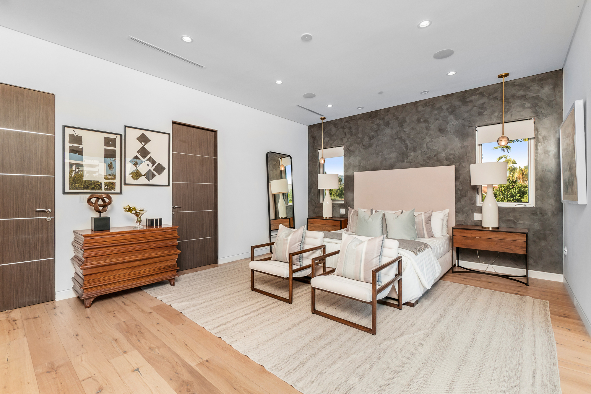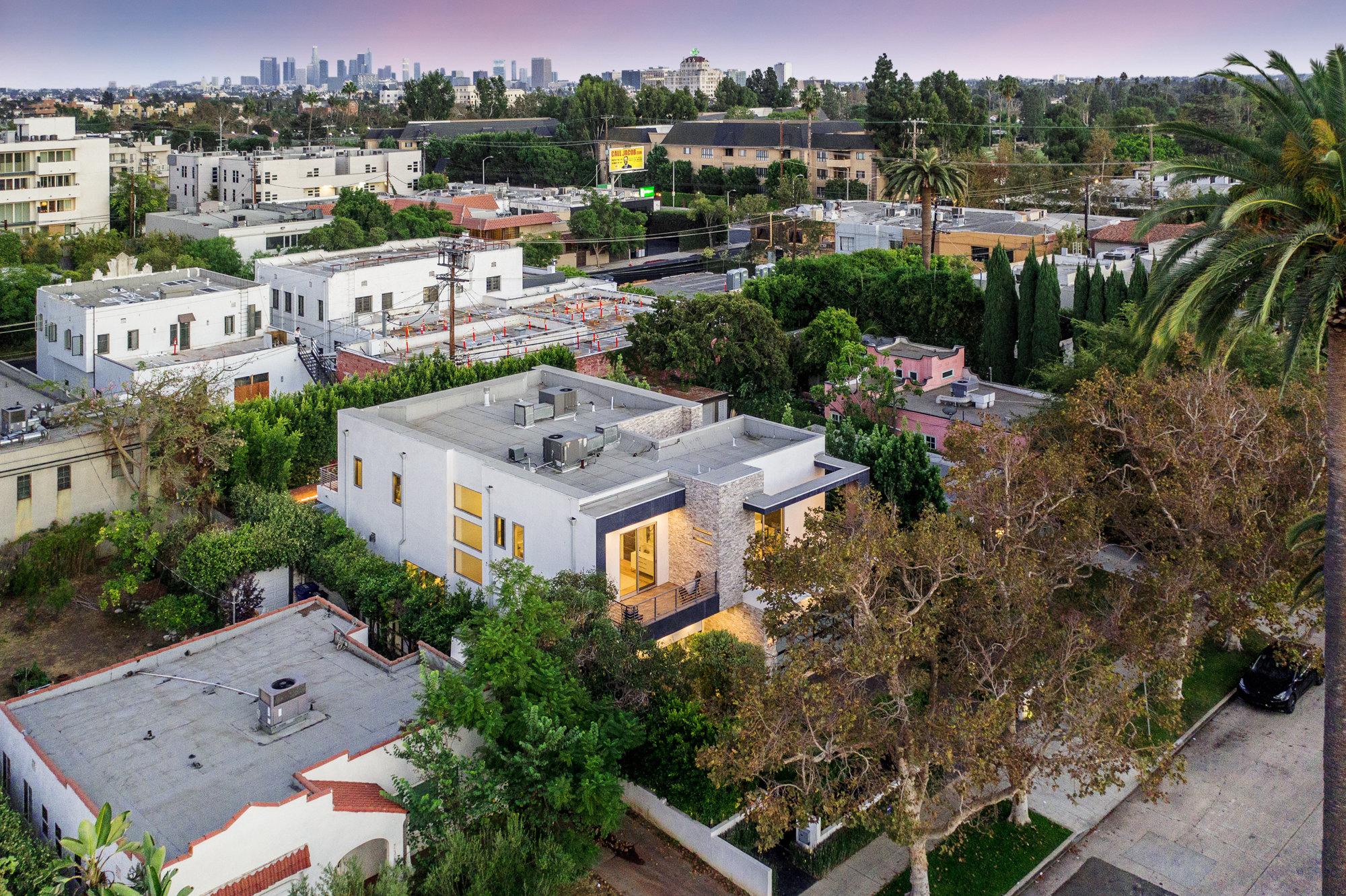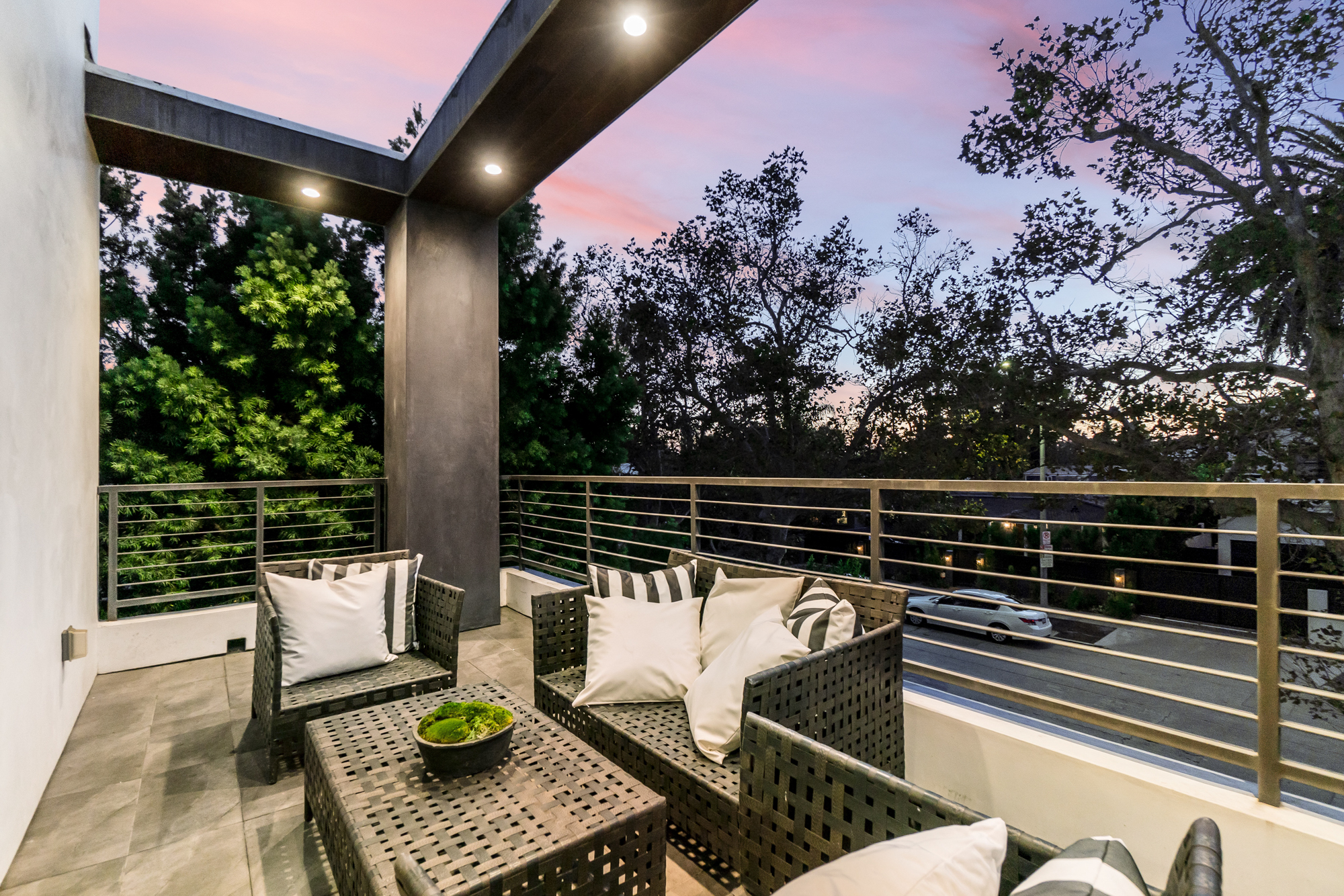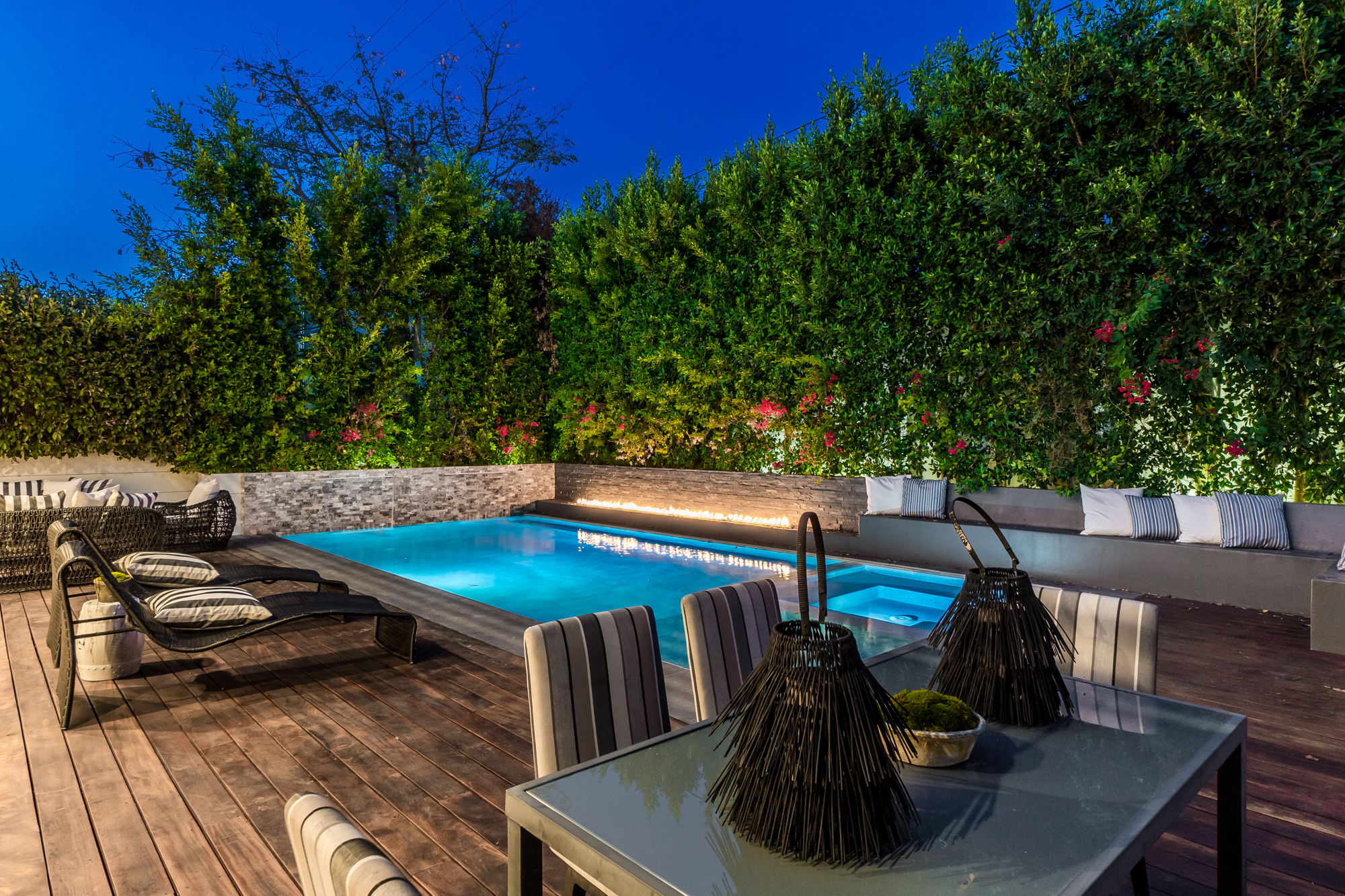 Tucked behind private gates and lush greenery, this newer construction home welcomes you to timeless design paired with luxurious finishes throughout. Open concept living allows for seamless entertaining from the elegant dining room, expansive family room, and glamorous chef’s kitchen. Enjoy preparing meals with top of the line Thermador appliances and a massive center island with room for seating. Continue the entertaining outdoors via large Fleetwood pocket doors from the family room & kitchen, extending the entertaining areas to a flush deck. The tranquil backyard sanctuary is equipped with a full outdoor kitchen with bbq, fire pit, built in lounge, pool & spa with waterfall feature, plenty of lounging space, powder room access from the side of the house, and an outdoor shower, perfect for a quick rinse off after a dip in the pool. Towering greenery and trees surround the backyard, offering ultimate privacy. Thoughtfully designed ensuite bedroom on the main floor is great for guests or an office. Striking floating staircase leads you upstairs to incredible hollywood sign views and an irresistible floorplan featuring four ensuite bedrooms, all offering their own exclusive private balconies. Additional bonus room at the top of the staircase presents possibilities for a second family room, office, play room, gym, etc. Adjacent, sliding doors lead to a beautiful outdoor lounge area with a color changing fireplace, perfect for relaxing and winding down before bed. Romantic master retreat showcases a boasting walk in closet, pocket doors to the balcony which spans the entire width of the house, and a see through fireplace, leading to the spa like master bathroom with a soaking tub, massive walk in shower, dual sinks, and privacy door. Enticing amenities include a wine cellar, laundry room, 2 car garage, and more. Enjoy a luxurious Hollywood lifestyle people dream about! Just moments from renowned shops, dining, and the Hollywood farmers market, it doesn’t get better than this.