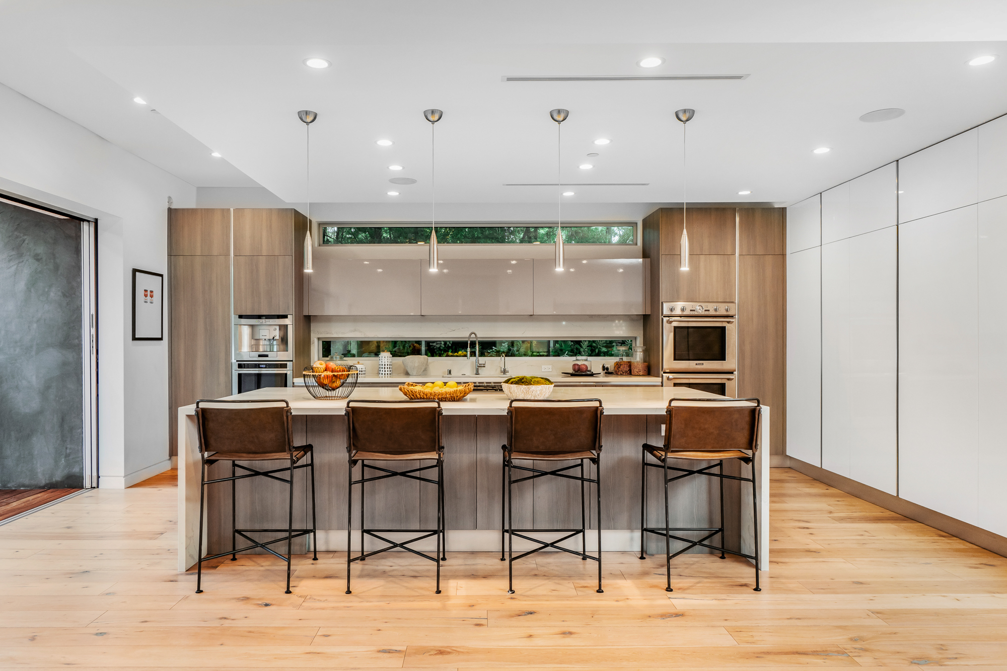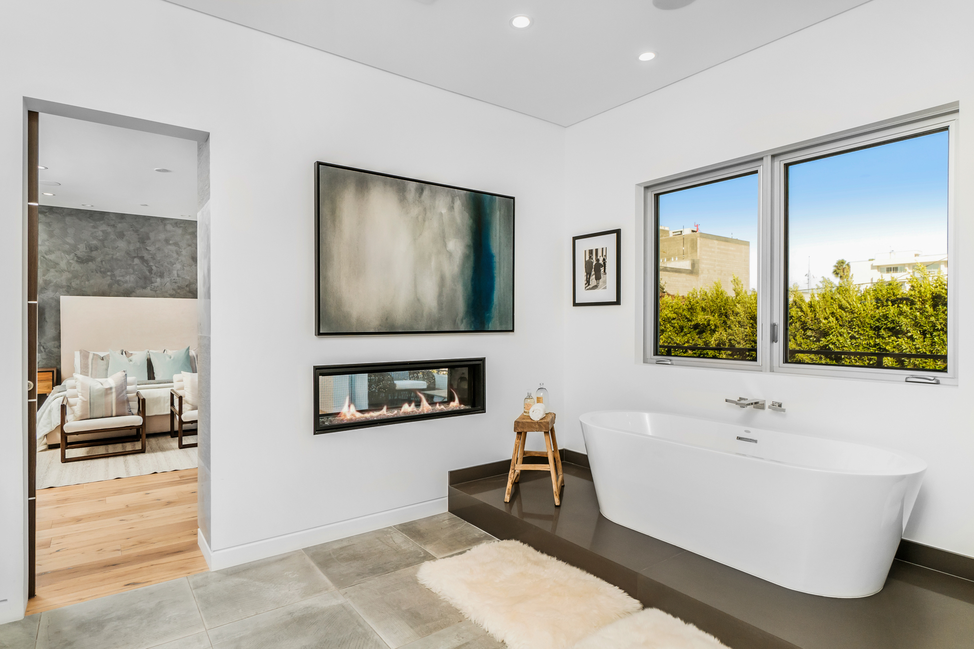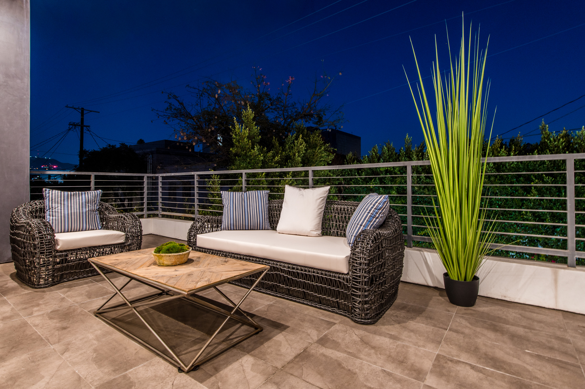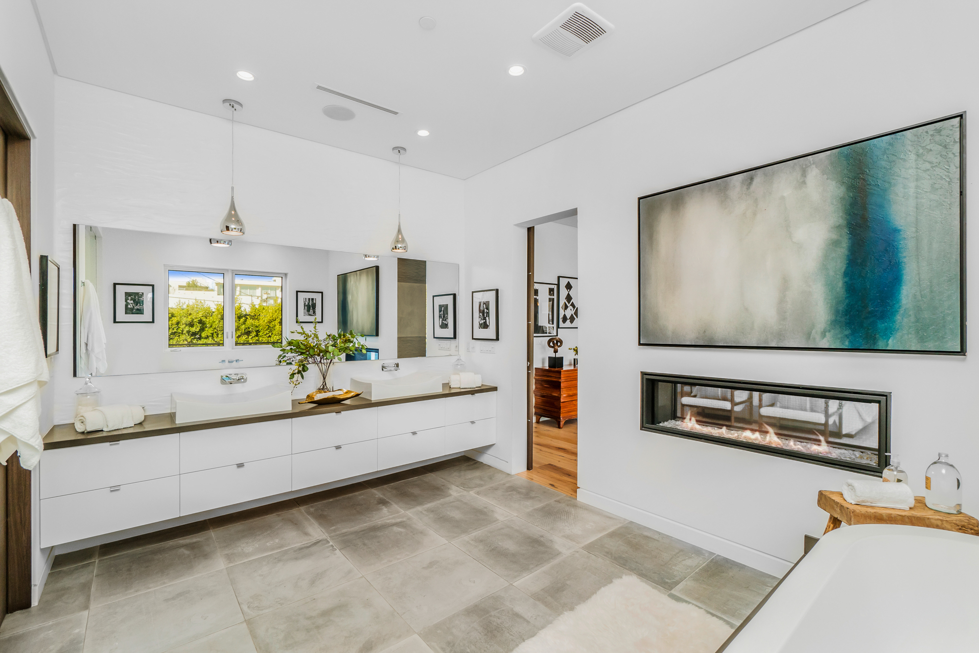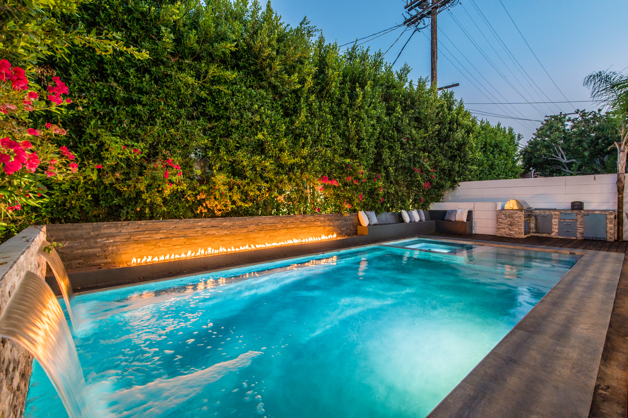 Tucked behind private gates and lush greenery, this newer construction home welcomes you to timeless design paired with luxurious finishes throughout. Open concept living allows for seamless entertaining from the elegant dining room, expansive family room, and glamorous chef’s kitchen. Enjoy preparing meals with top of the line Thermador appliances and a massive center island with room for seating. Continue the entertaining outdoors via large Fleetwood pocket doors from the family room & kitchen, extending the entertaining areas to a flush deck. The tranquil backyard sanctuary is equipped with a full outdoor kitchen with bbq, fire pit, built in lounge, pool & spa with waterfall feature, plenty of lounging space, powder room access from the side of the house, and an outdoor shower, perfect for a quick rinse off after a dip in the pool. Towering greenery and trees surround the backyard, offering ultimate privacy. Thoughtfully designed ensuite bedroom on the main floor is great for guests or an office. Striking floating staircase leads you upstairs to incredible hollywood sign views and an irresistible floorplan featuring four ensuite bedrooms, all offering their own exclusive private balconies. Additional bonus room at the top of the staircase presents possibilities for a second family room, office, play room, gym, etc. Adjacent, sliding doors lead to a beautiful outdoor lounge area with a color changing fireplace, perfect for relaxing and winding down before bed. Romantic master retreat showcases a boasting walk in closet, pocket doors to the balcony which spans the entire width of the house, and a see through fireplace, leading to the spa like master bathroom with a soaking tub, massive walk in shower, dual sinks, and privacy door. Enticing amenities include a wine cellar, laundry room, 2 car garage, and more. Enjoy a luxurious Hollywood lifestyle people dream about! Just moments from renowned shops, dining, and the Hollywood farmers market, it doesn’t get better than this.