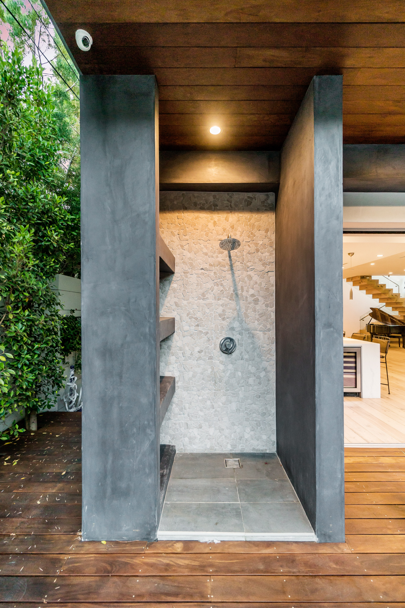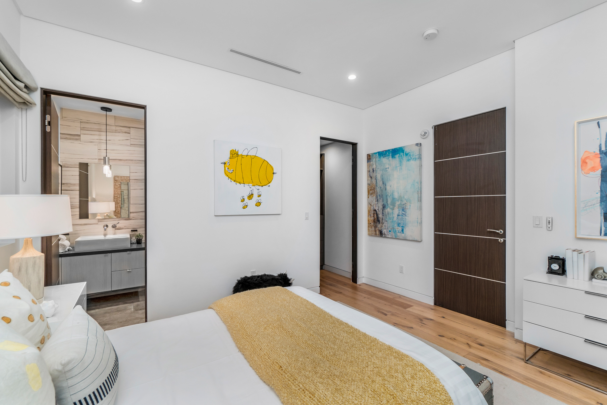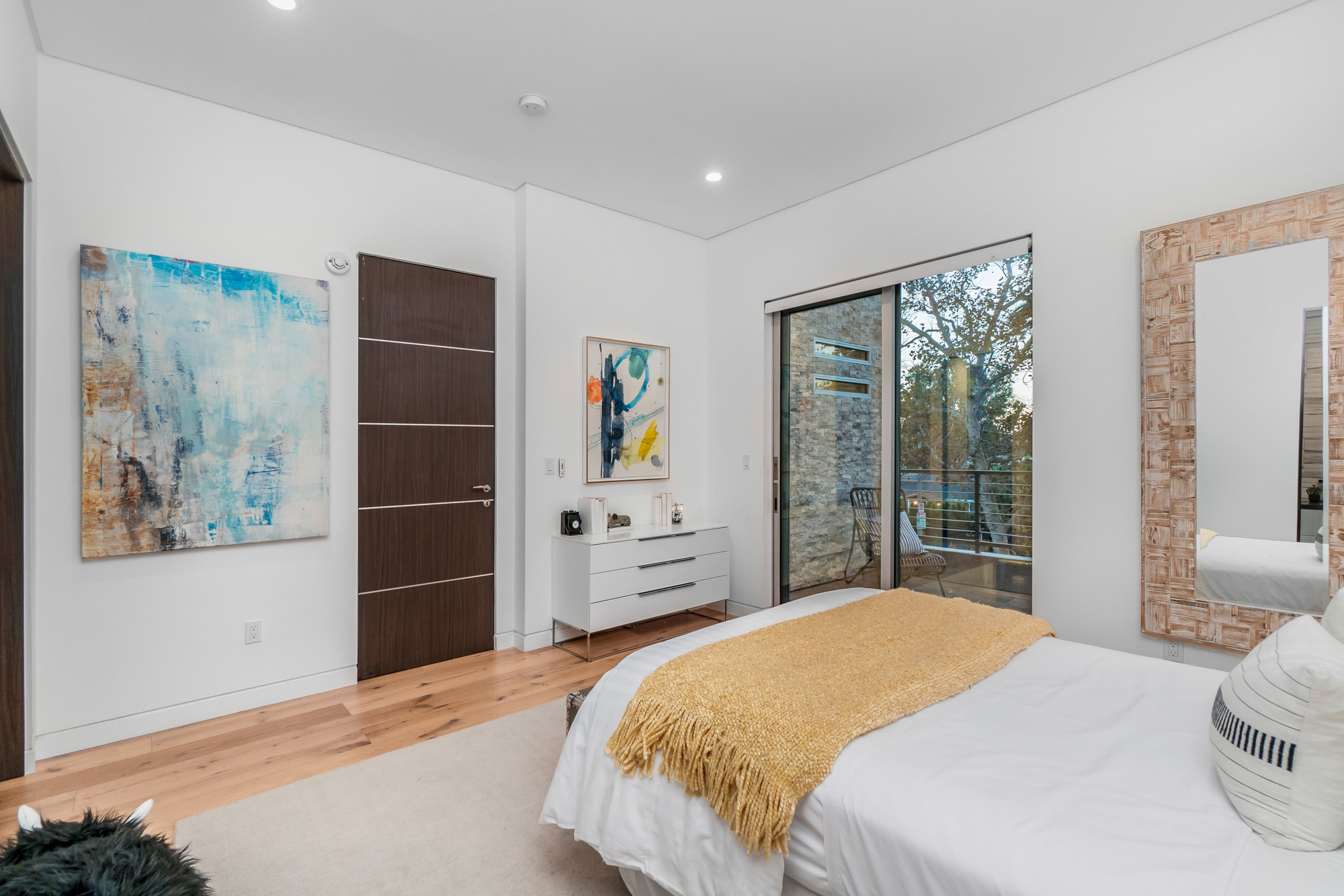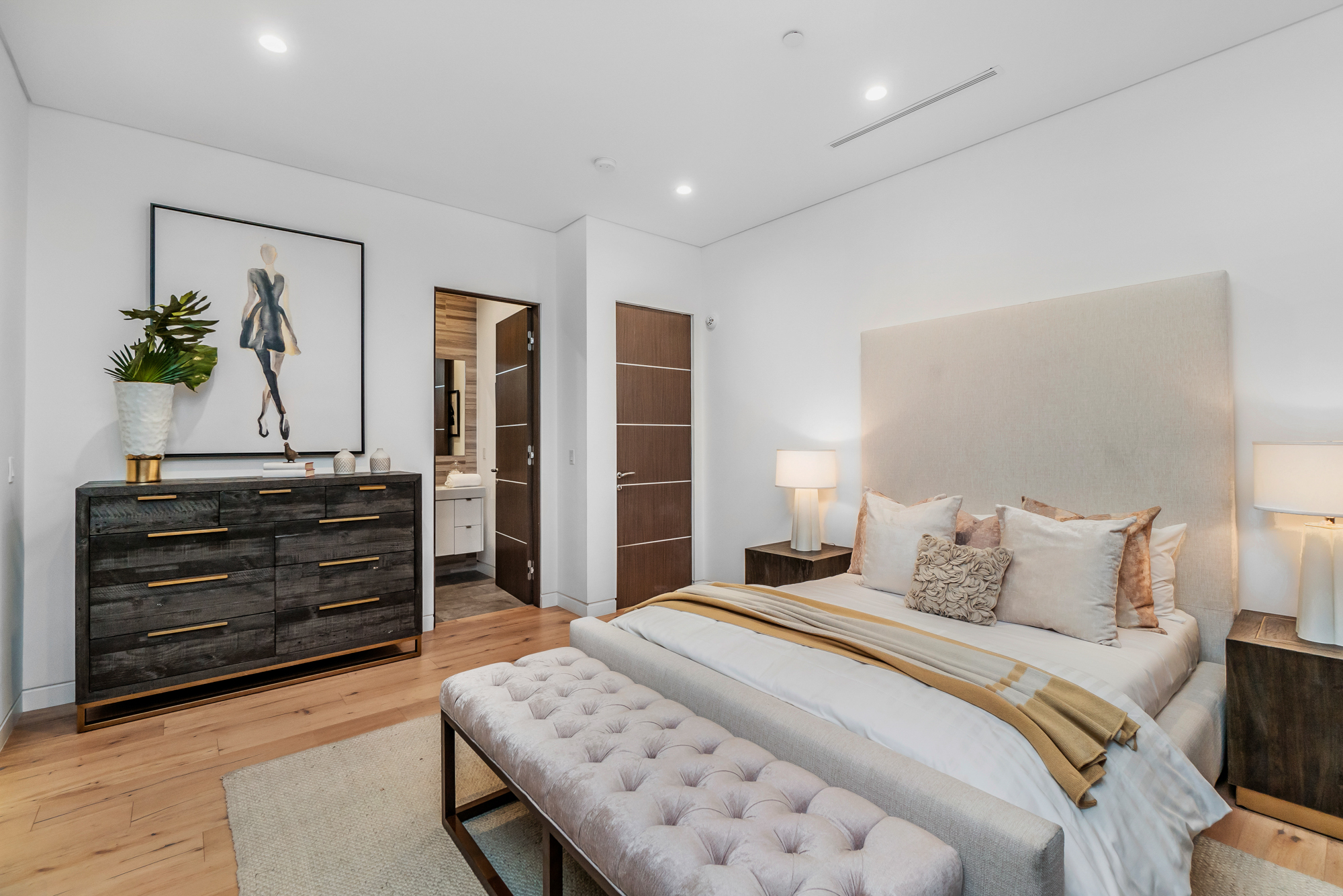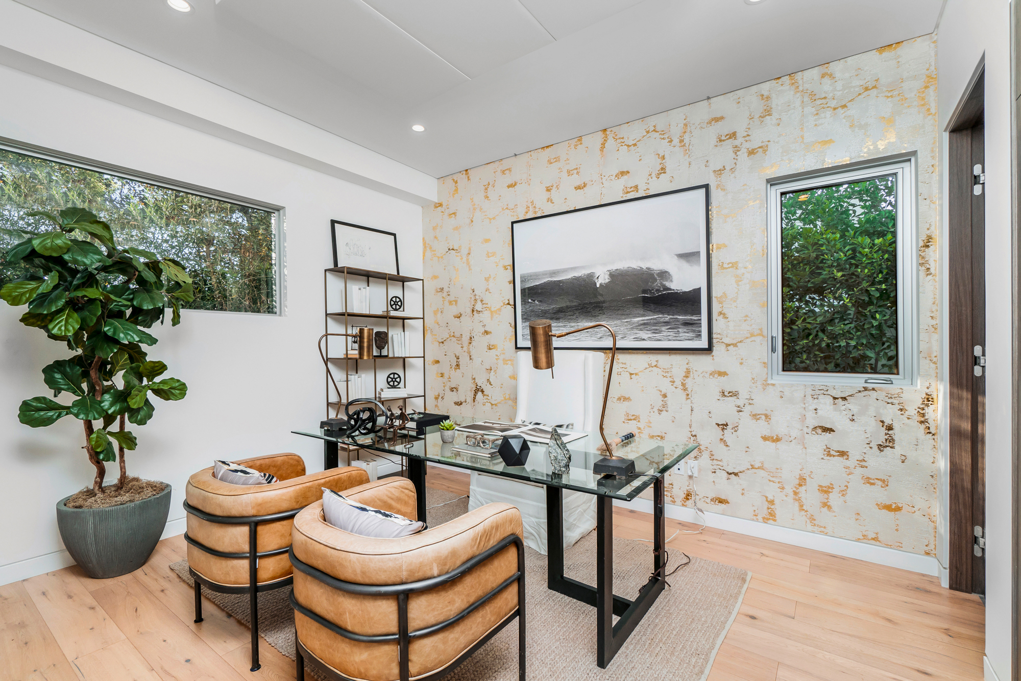 Tucked behind private gates and lush greenery, this newer construction home welcomes you to timeless design paired with luxurious finishes throughout. Open concept living allows for seamless entertaining from the elegant dining room, expansive family room, and glamorous chef’s kitchen. Enjoy preparing meals with top of the line Thermador appliances and a massive center island with room for seating. Continue the entertaining outdoors via large Fleetwood pocket doors from the family room & kitchen, extending the entertaining areas to a flush deck. The tranquil backyard sanctuary is equipped with a full outdoor kitchen with bbq, fire pit, built in lounge, pool & spa with waterfall feature, plenty of lounging space, powder room access from the side of the house, and an outdoor shower, perfect for a quick rinse off after a dip in the pool. Towering greenery and trees surround the backyard, offering ultimate privacy. Thoughtfully designed ensuite bedroom on the main floor is great for guests or an office. Striking floating staircase leads you upstairs to incredible hollywood sign views and an irresistible floorplan featuring four ensuite bedrooms, all offering their own exclusive private balconies. Additional bonus room at the top of the staircase presents possibilities for a second family room, office, play room, gym, etc. Adjacent, sliding doors lead to a beautiful outdoor lounge area with a color changing fireplace, perfect for relaxing and winding down before bed. Romantic master retreat showcases a boasting walk in closet, pocket doors to the balcony which spans the entire width of the house, and a see through fireplace, leading to the spa like master bathroom with a soaking tub, massive walk in shower, dual sinks, and privacy door. Enticing amenities include a wine cellar, laundry room, 2 car garage, and more. Enjoy a luxurious Hollywood lifestyle people dream about! Just moments from renowned shops, dining, and the Hollywood farmers market, it doesn’t get better than this.