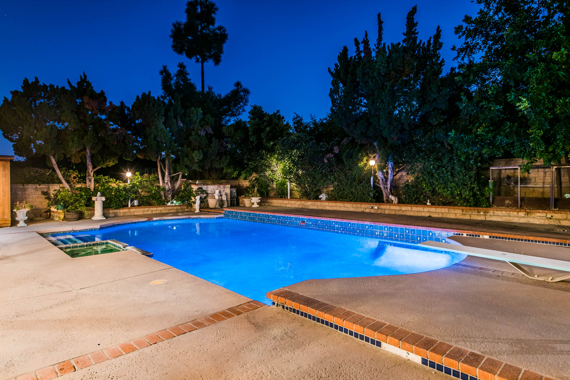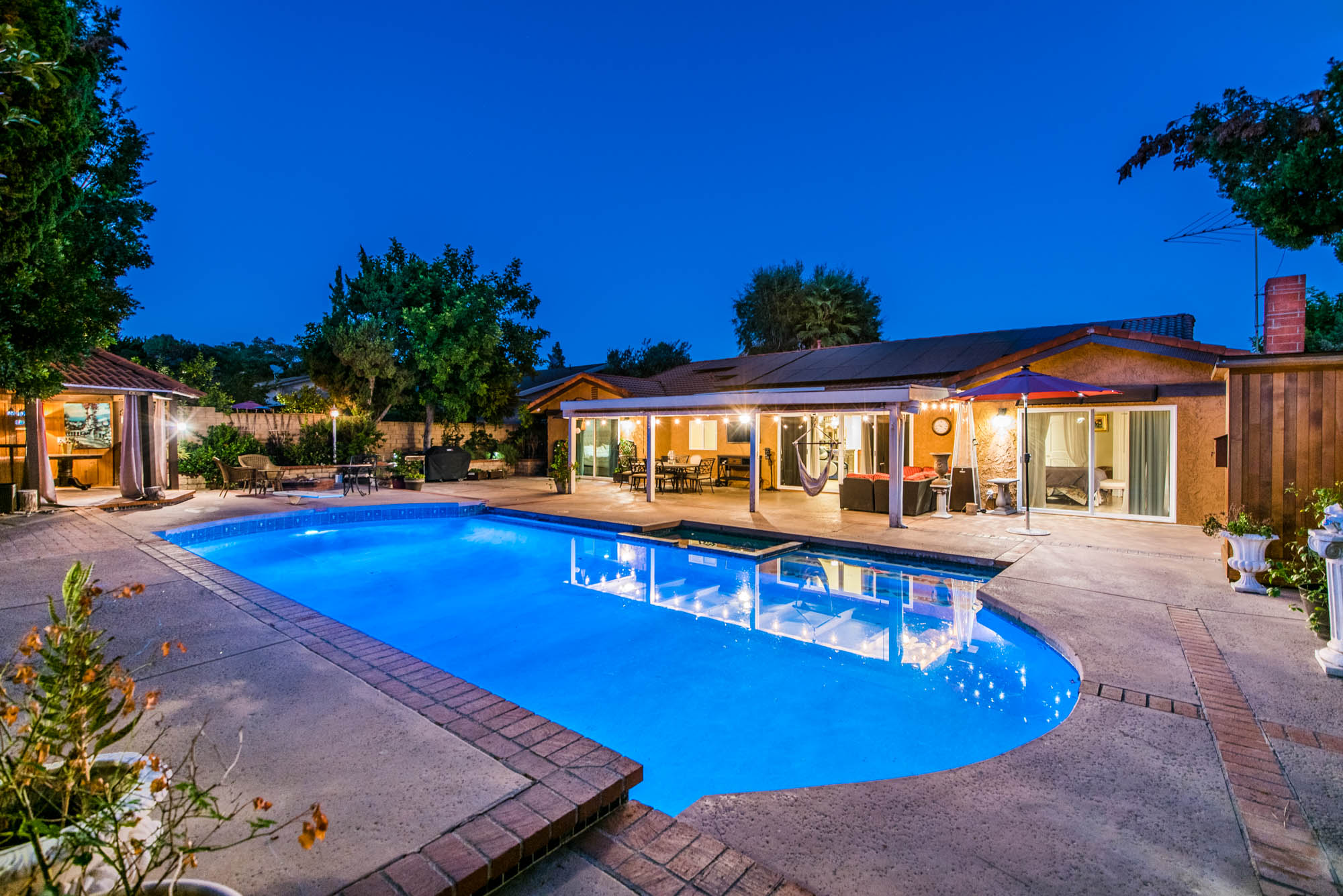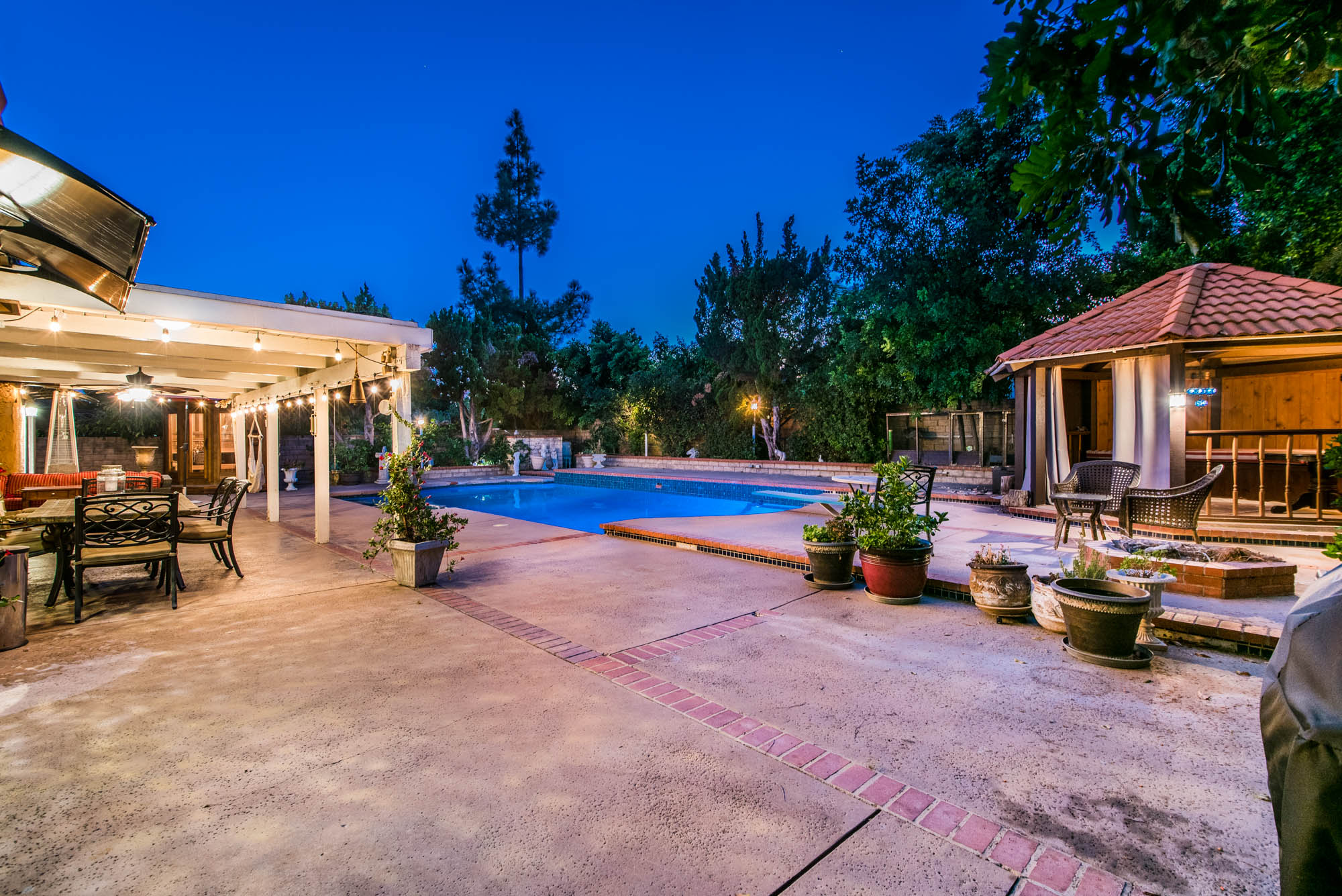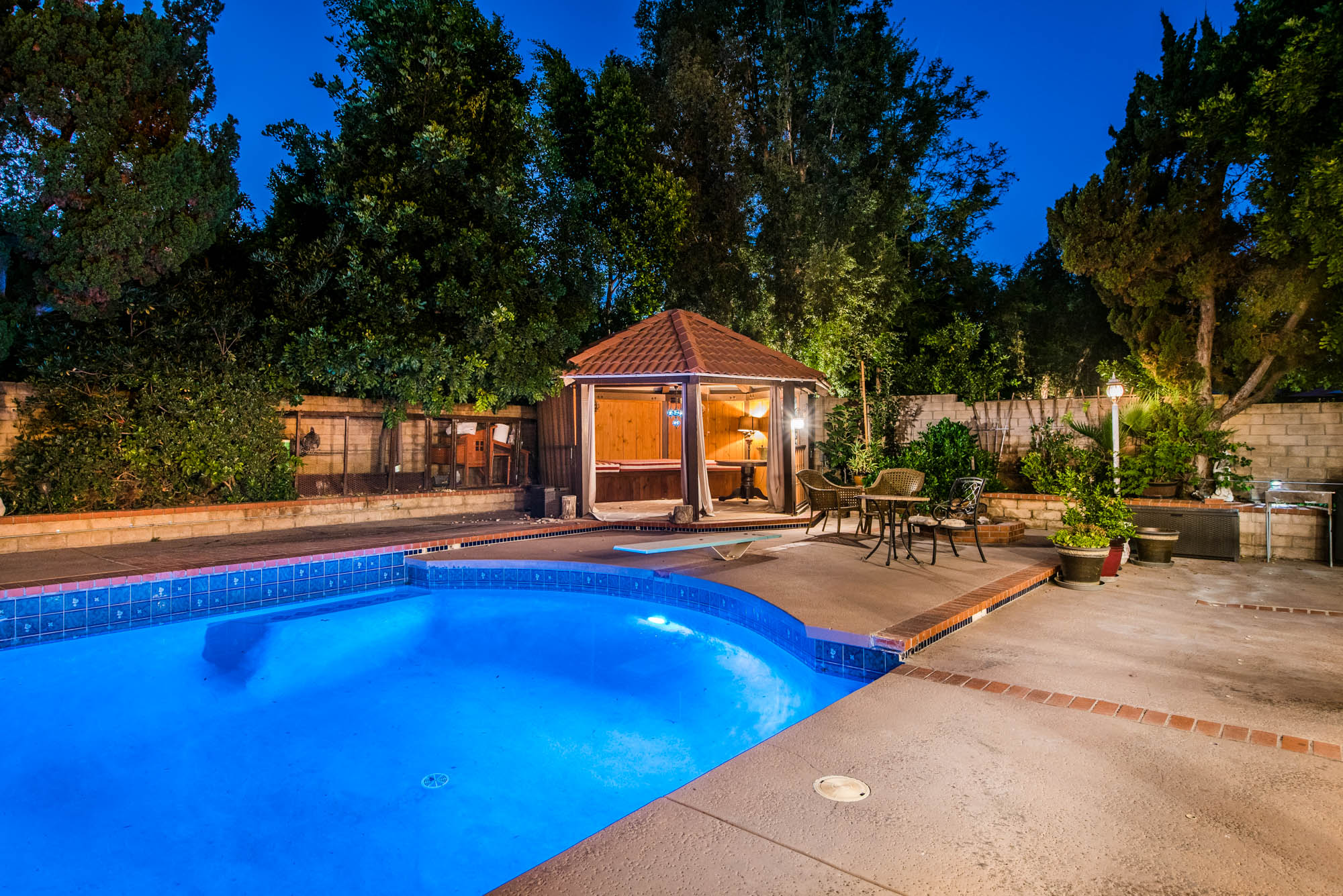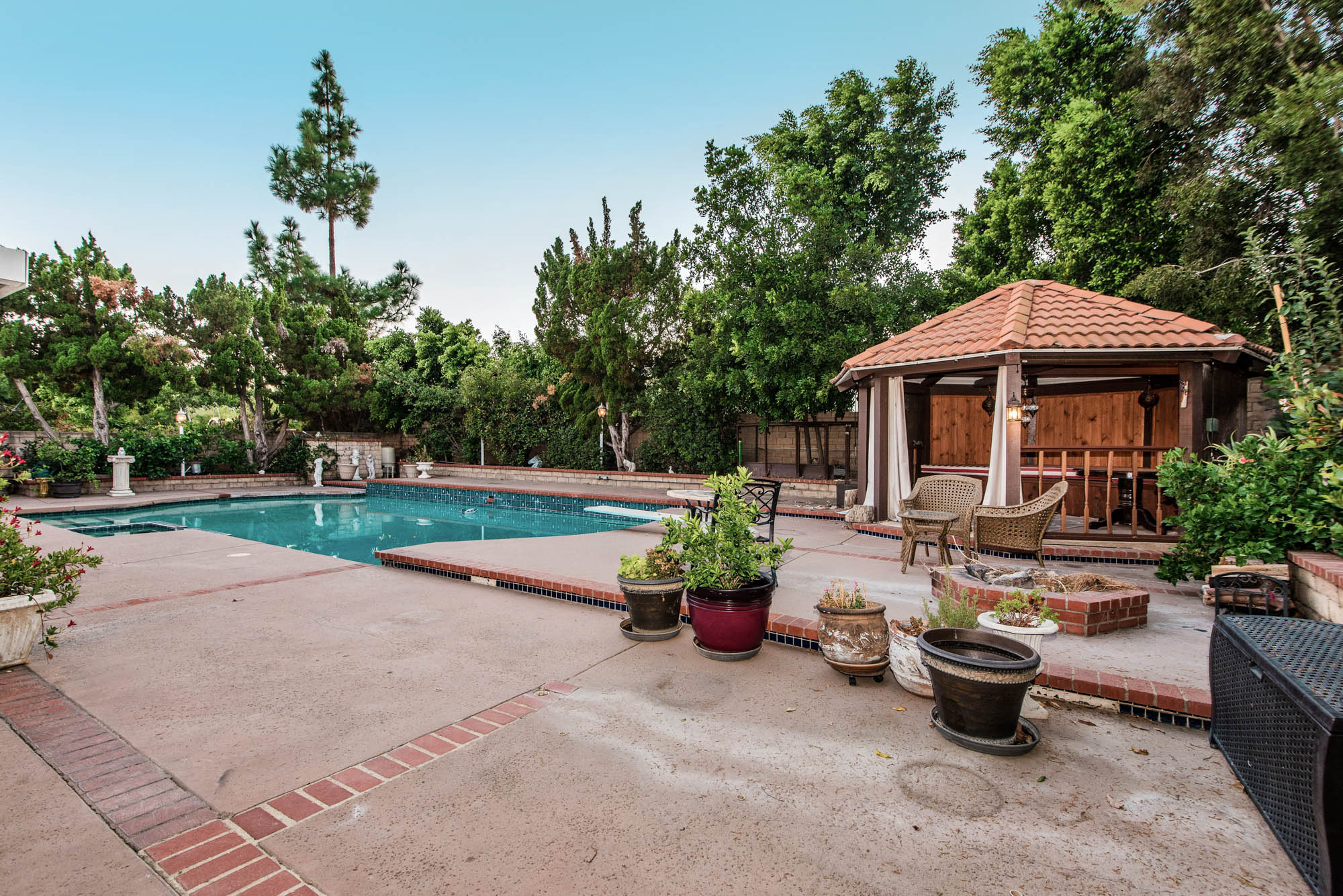 Located in the heart of Northridge, this fully remodeled home leaves no room for disappointment. Sitting on a large 10,715 sq ft lot, it offers a large driveway, spacious backyard, and ample side yard space. Entering the home, an open floor plan greets you with a large living room, dining room, and chef’s kitchen. 3 sets of large sliding doors located in the living space and two of the bedrooms lead you into an entertainers dream yard. With a heated pool w/ water feature, spa, custom wood sauna, gazebo, and covered dining space, this property truly has it all. Superbly landscaped from the front to the back of the property, immense privacy is provided with its lush greenery. Through the halls of the interior, 5 bedrooms, and 3 bathrooms reside. Master Suite hosts large sliding doors, walk-in closet, and master bath w/ massive walk-in shower, double vanity, and a soaking tub with stunning tile work. Remaining 4 bedrooms all spacious, w/ large windows, and ample closet space. Additional features include solar panels, security cameras, 3 car garage, nest thermostat, recessed lighting, and designer light fixtures. Location provides for immense convenience in being moments from Dearborn Park, grocery stores, Target, CSUN, and more! This home is a must-see!