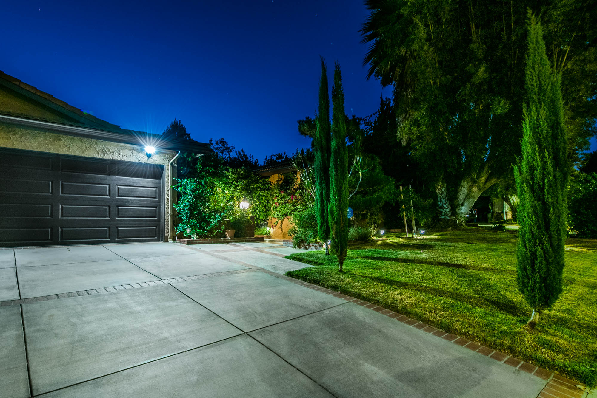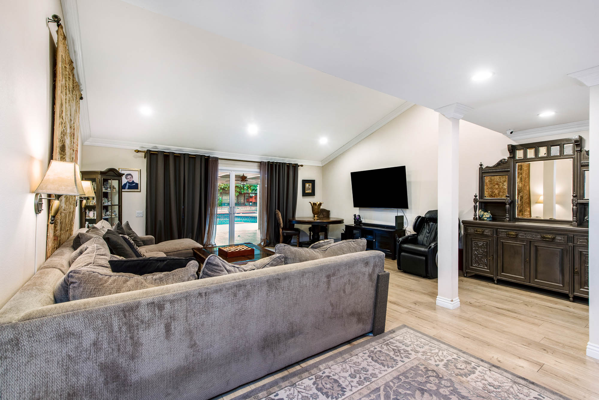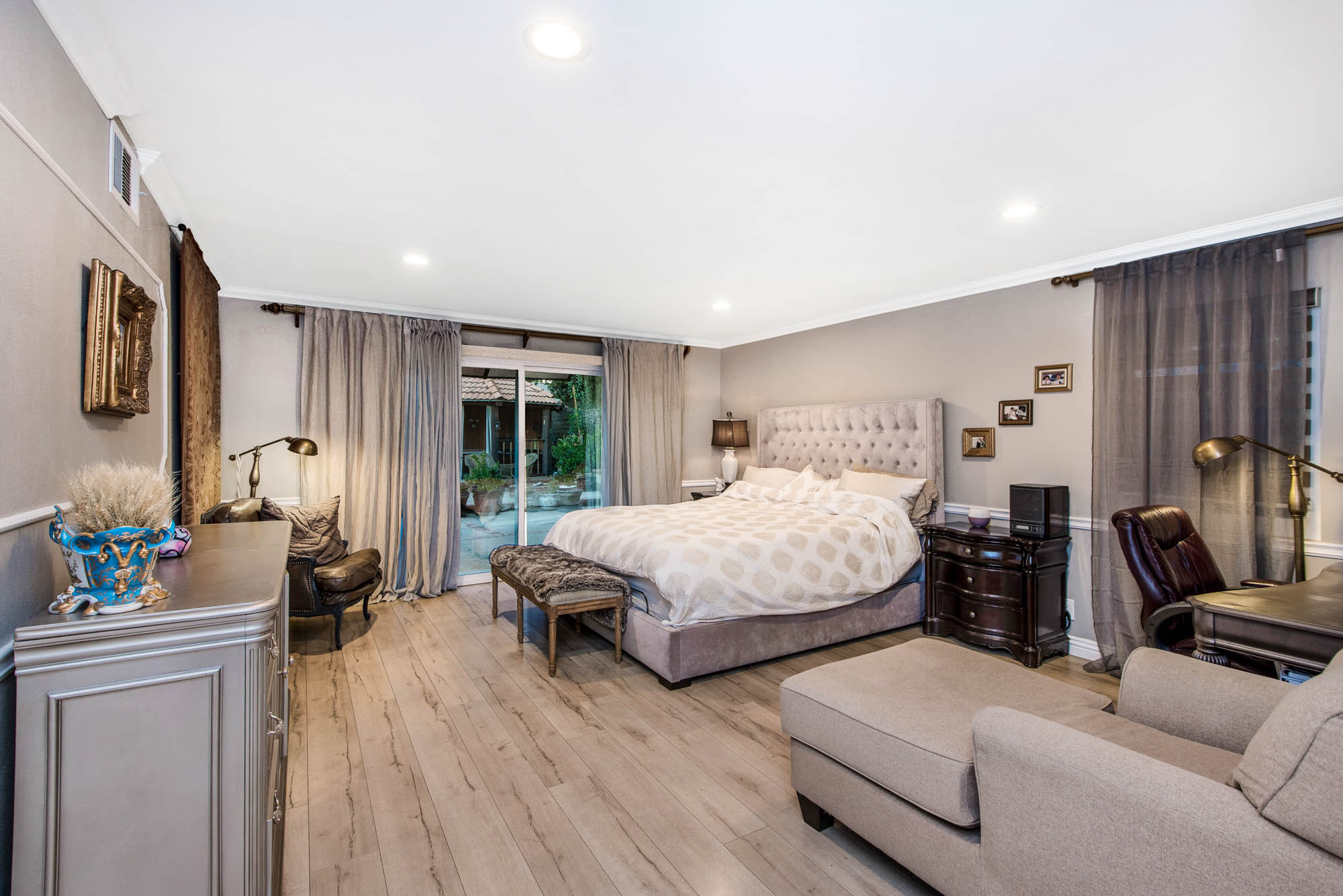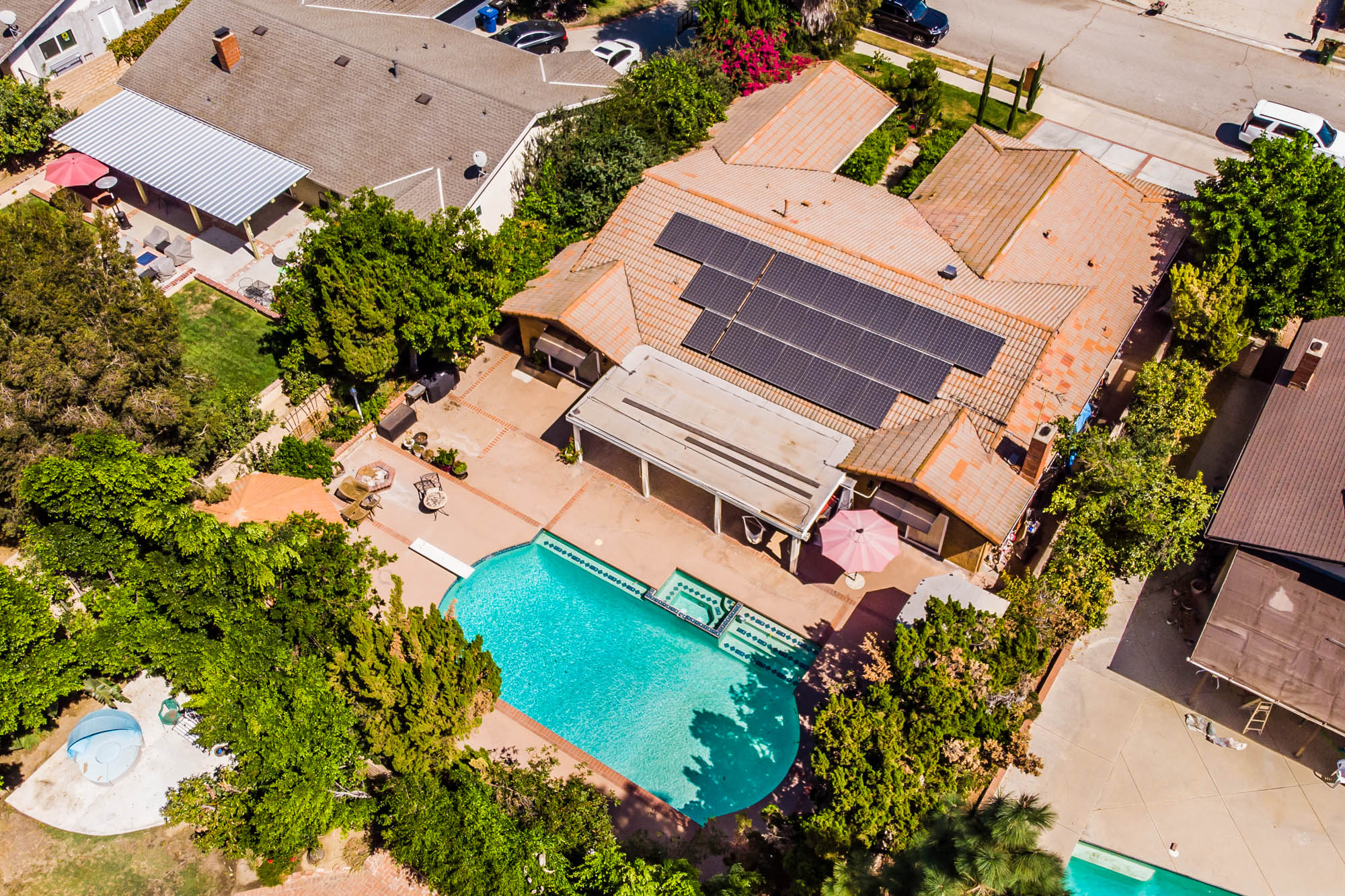 Located in the heart of Northridge, this fully remodeled home leaves no room for disappointment. Sitting on a large 10,715 sq ft lot, it offers a large driveway, spacious backyard, and ample side yard space. Entering the home, an open floor plan greets you with a large living room, dining room, and chef’s kitchen. 3 sets of large sliding doors located in the living space and two of the bedrooms lead you into an entertainers dream yard. With a heated pool w/ water feature, spa, custom wood sauna, gazebo, and covered dining space, this property truly has it all. Superbly landscaped from the front to the back of the property, immense privacy is provided with its lush greenery. Through the halls of the interior, 5 bedrooms, and 3 bathrooms reside. Master Suite hosts large sliding doors, walk-in closet, and master bath w/ massive walk-in shower, double vanity, and a soaking tub with stunning tile work. Remaining 4 bedrooms all spacious, w/ large windows, and ample closet space. Additional features include solar panels, security cameras, 3 car garage, nest thermostat, recessed lighting, and designer light fixtures. Location provides for immense convenience in being moments from Dearborn Park, grocery stores, Target, CSUN, and more! This home is a must-see!