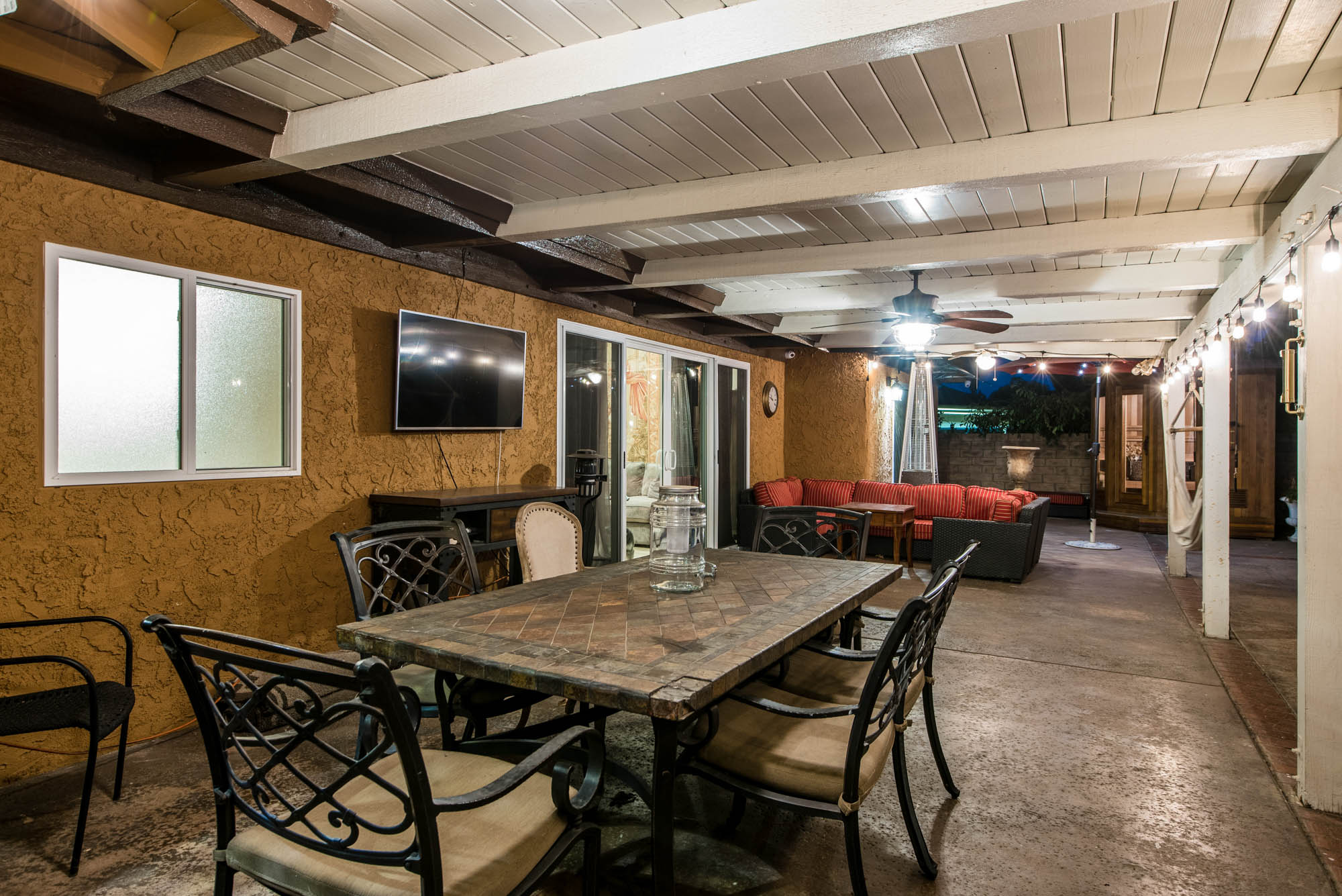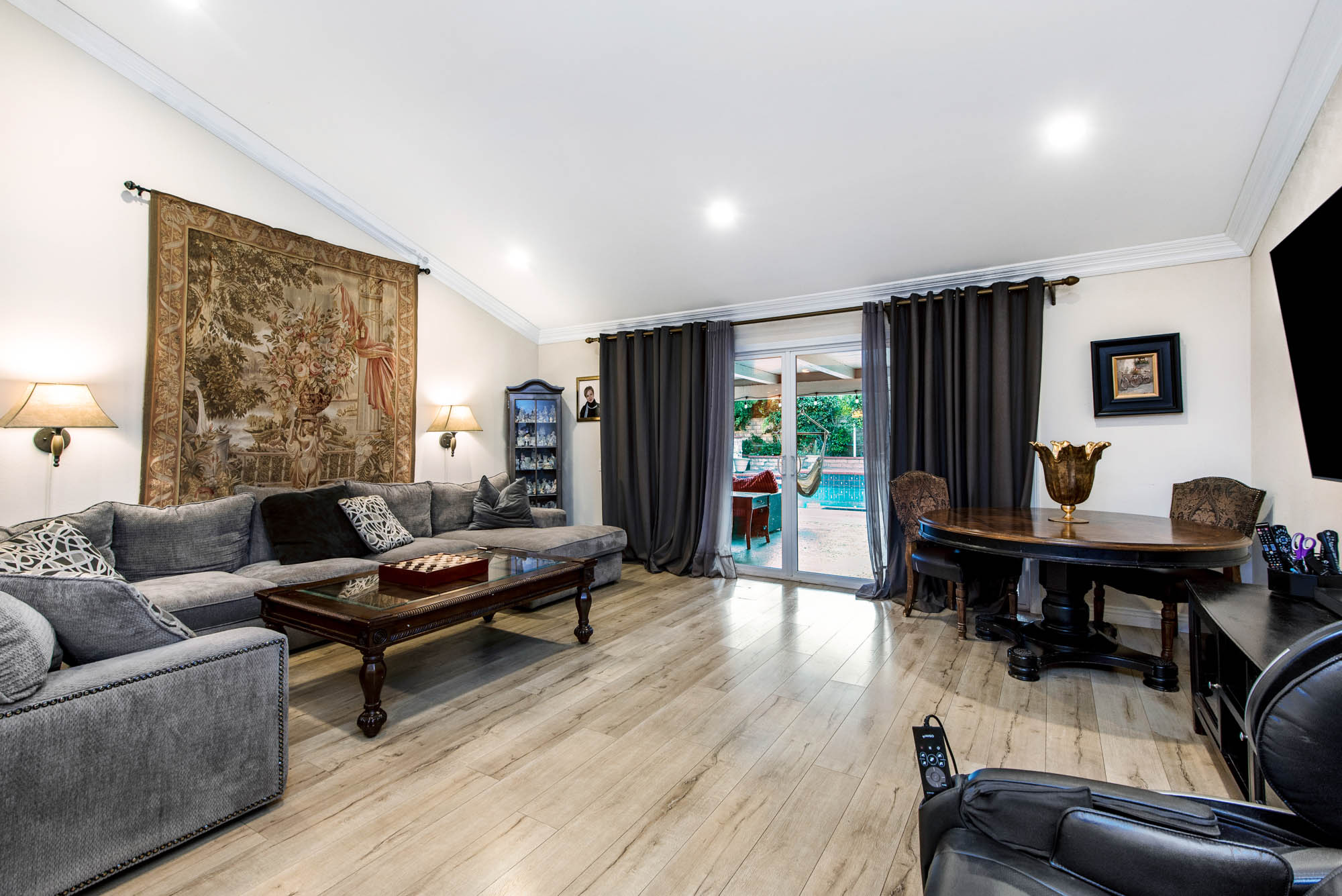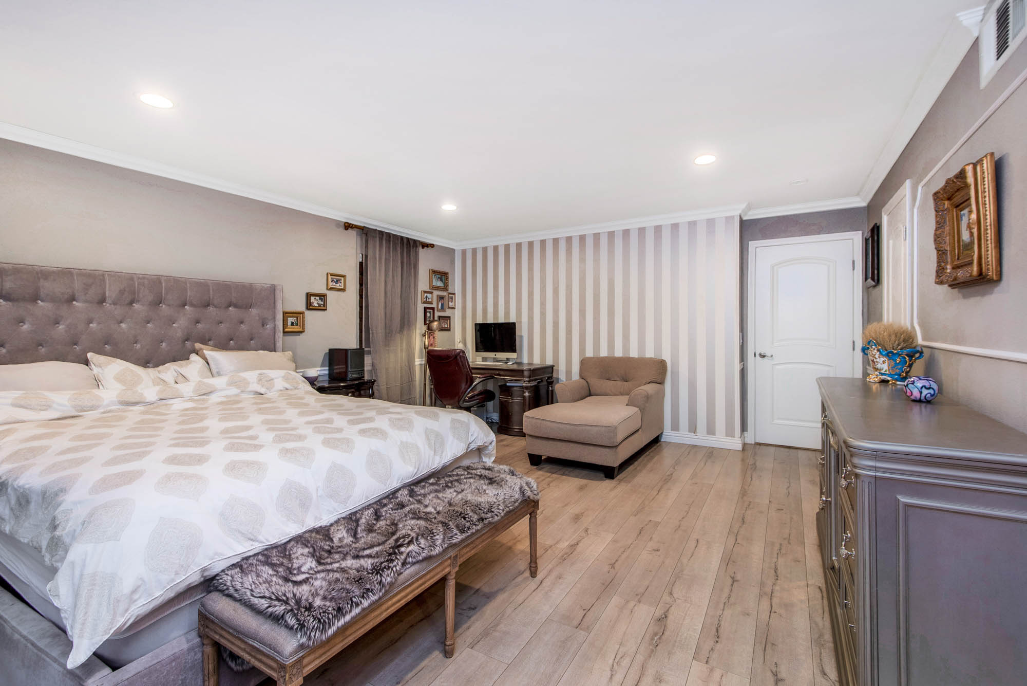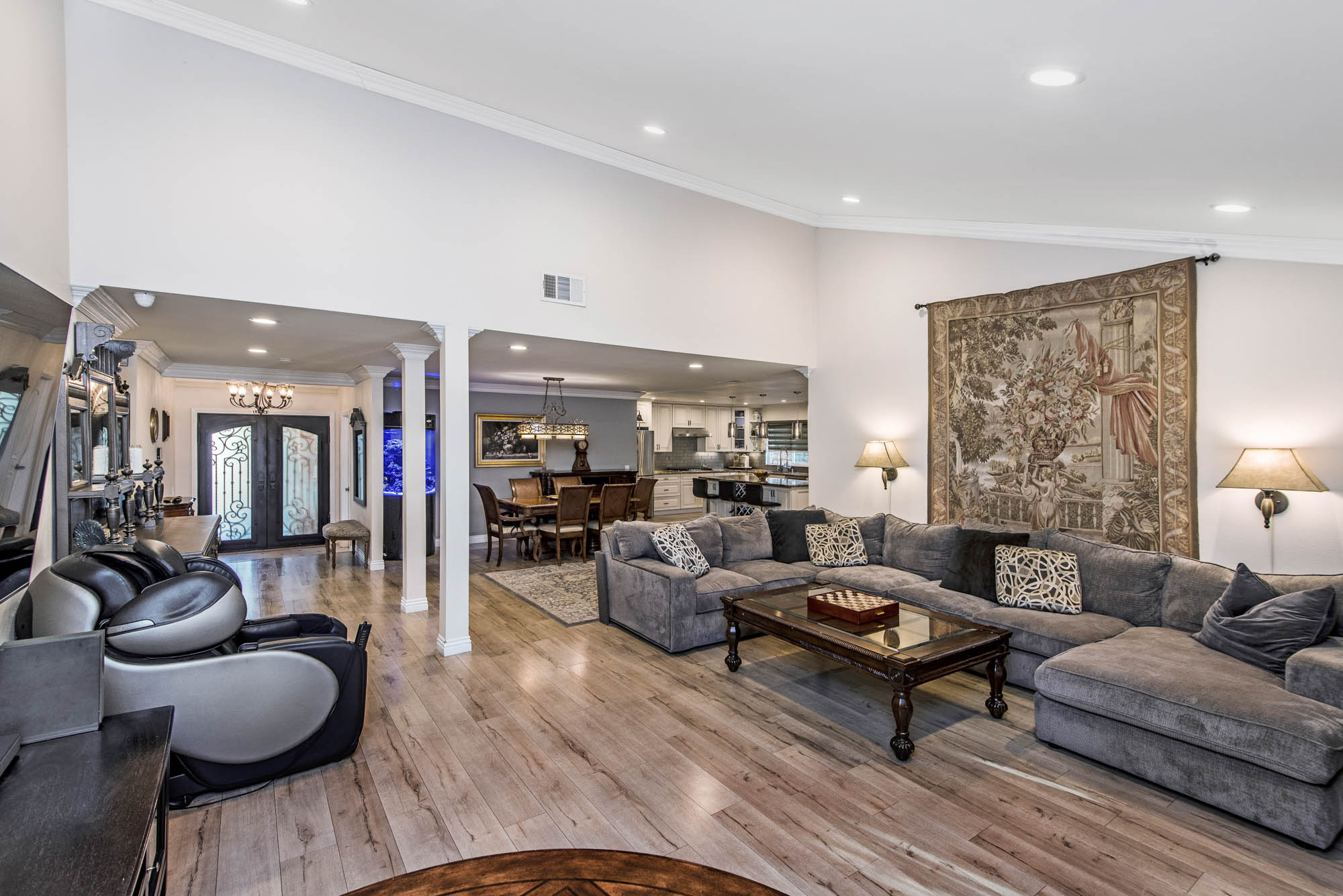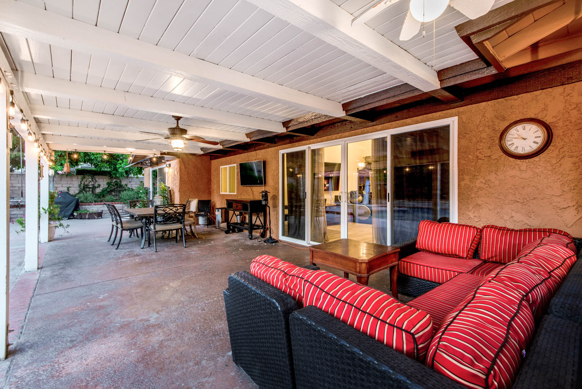 Located in the heart of Northridge, this fully remodeled home leaves no room for disappointment. Sitting on a large 10,715 sq ft lot, it offers a large driveway, spacious backyard, and ample side yard space. Entering the home, an open floor plan greets you with a large living room, dining room, and chef’s kitchen. 3 sets of large sliding doors located in the living space and two of the bedrooms lead you into an entertainers dream yard. With a heated pool w/ water feature, spa, custom wood sauna, gazebo, and covered dining space, this property truly has it all. Superbly landscaped from the front to the back of the property, immense privacy is provided with its lush greenery. Through the halls of the interior, 5 bedrooms, and 3 bathrooms reside. Master Suite hosts large sliding doors, walk-in closet, and master bath w/ massive walk-in shower, double vanity, and a soaking tub with stunning tile work. Remaining 4 bedrooms all spacious, w/ large windows, and ample closet space. Additional features include solar panels, security cameras, 3 car garage, nest thermostat, recessed lighting, and designer light fixtures. Location provides for immense convenience in being moments from Dearborn Park, grocery stores, Target, CSUN, and more! This home is a must-see!
