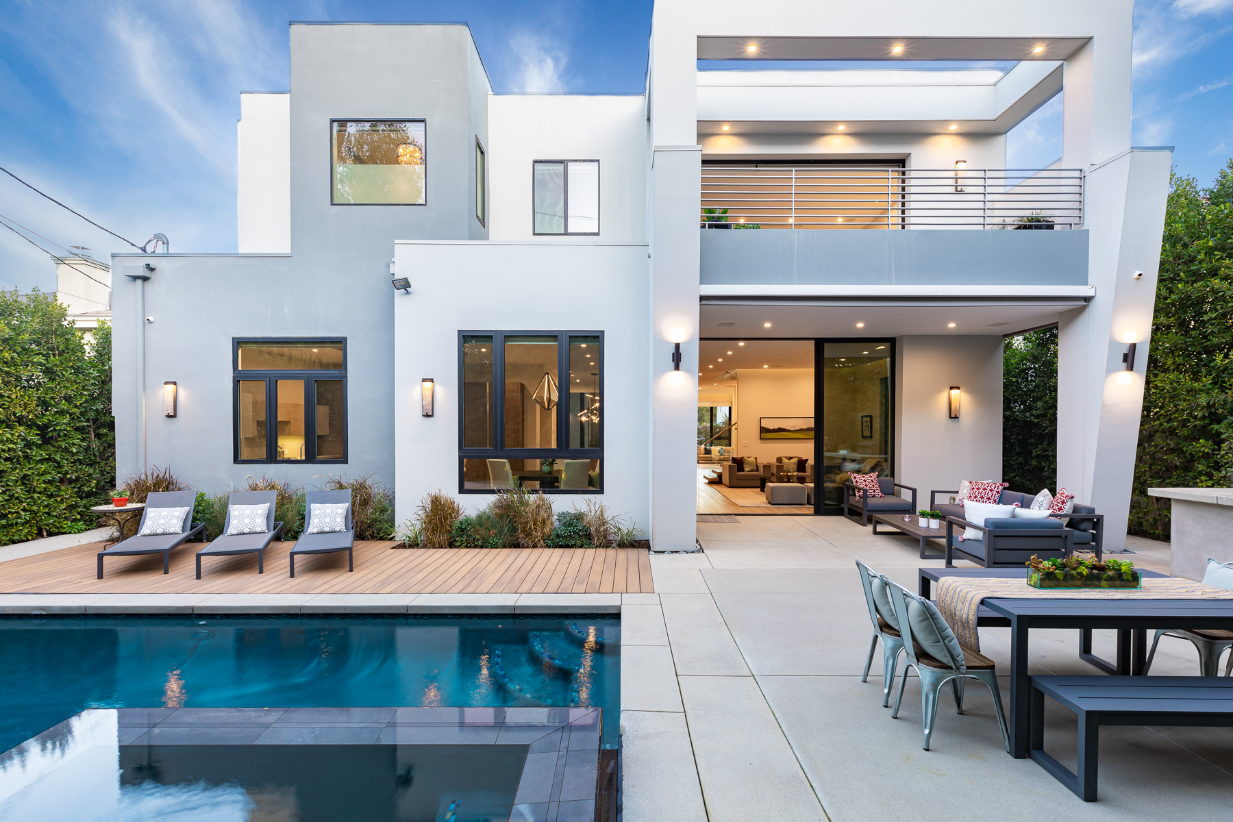 Welcome to this private, chic newer build modern estate featuring 5 bedrooms and 6 bathrooms plus a bonus room on the main level. Upon entering, greenery and drought resistant landscaping will wow you. The pivot front door entry invites you into the grand open floor plan with exceptionally high ceilings. The dining area flows seamlessly to the kitchen and family room, great for entertaining friends and family alike. Chefs “Italian moda” kitchen showcases a large island, top of the line Miele appliances, and push to open cabinetry. A beautifully designed floating staircase leads you to the upstairs bedrooms. The magnificent master suite presents an open yet cozy feel with a fireplace and disappearing glass pocket doors leading to the balcony. Get ready for your day- soak in the free standing tub and then pamper yourself in the stunning vanity adjacent to the boasting walk in closet. The delightful backyard, just one glass sliding door away from the family room hosts a covered patio, pool, spa, and bbq. Additional features include a laundry room, crestron smart house system, and a relaxing courtyard.
