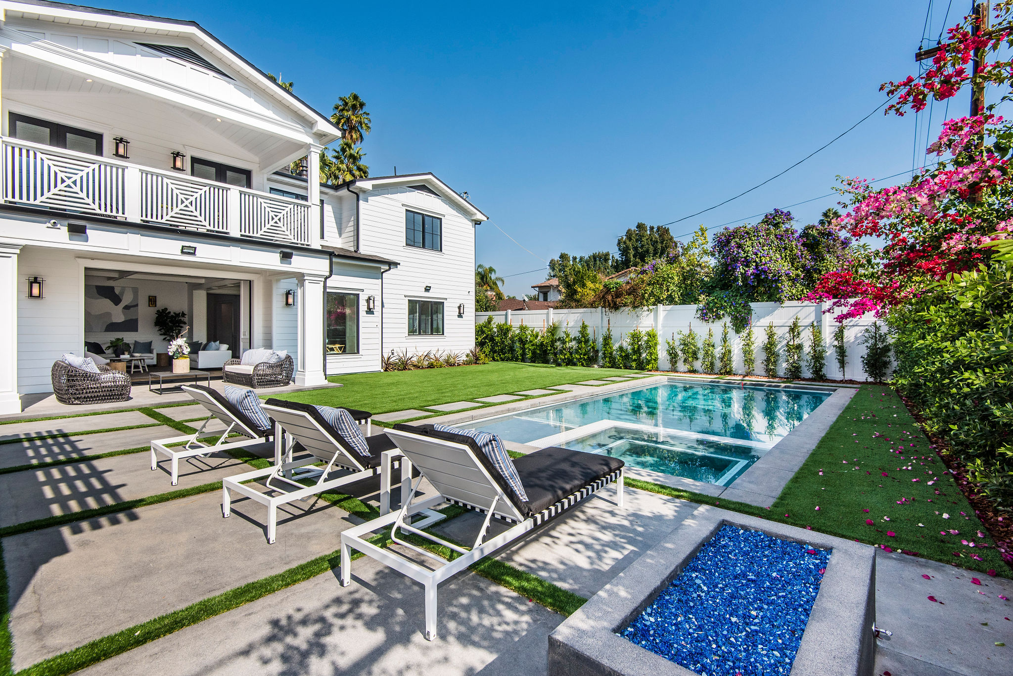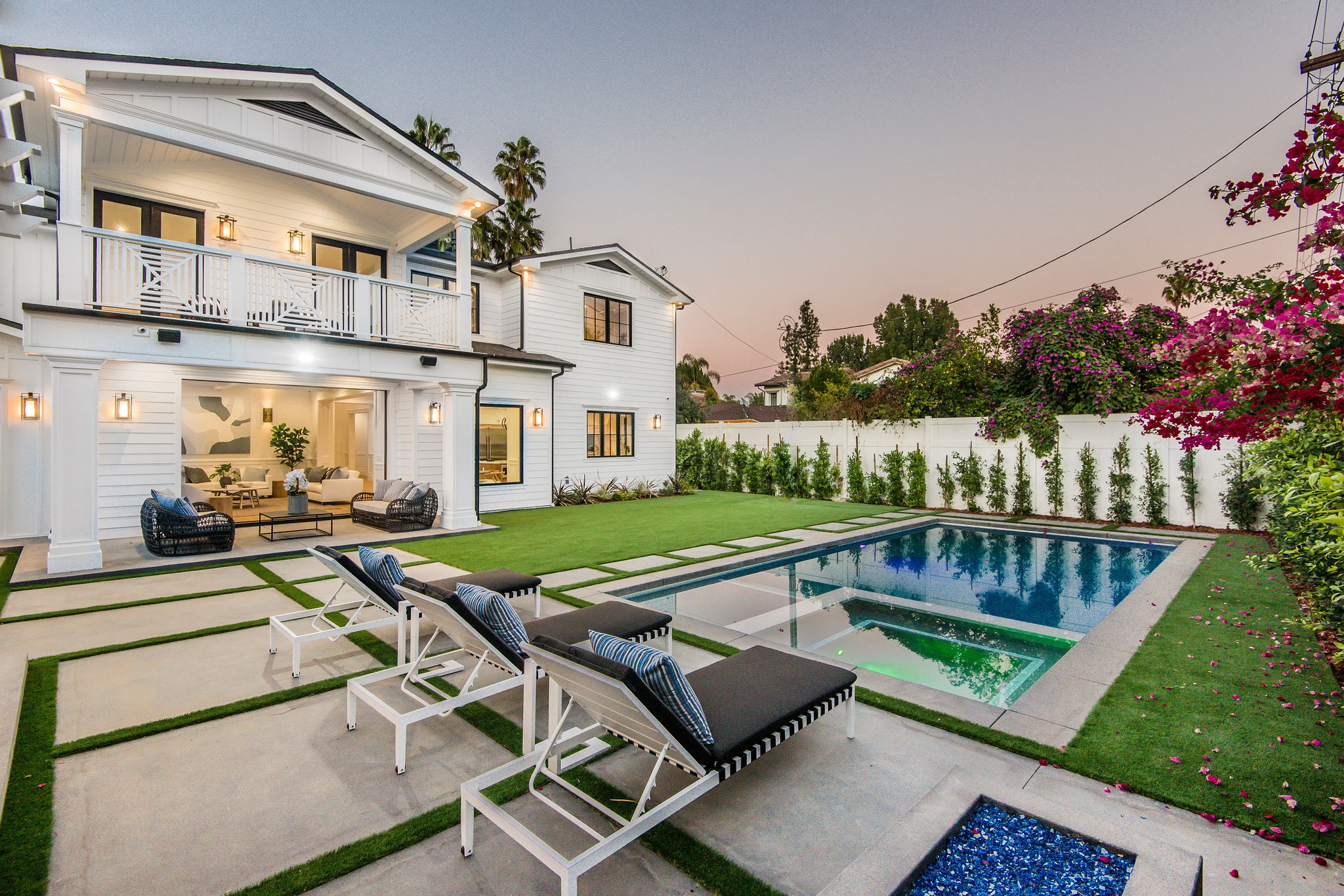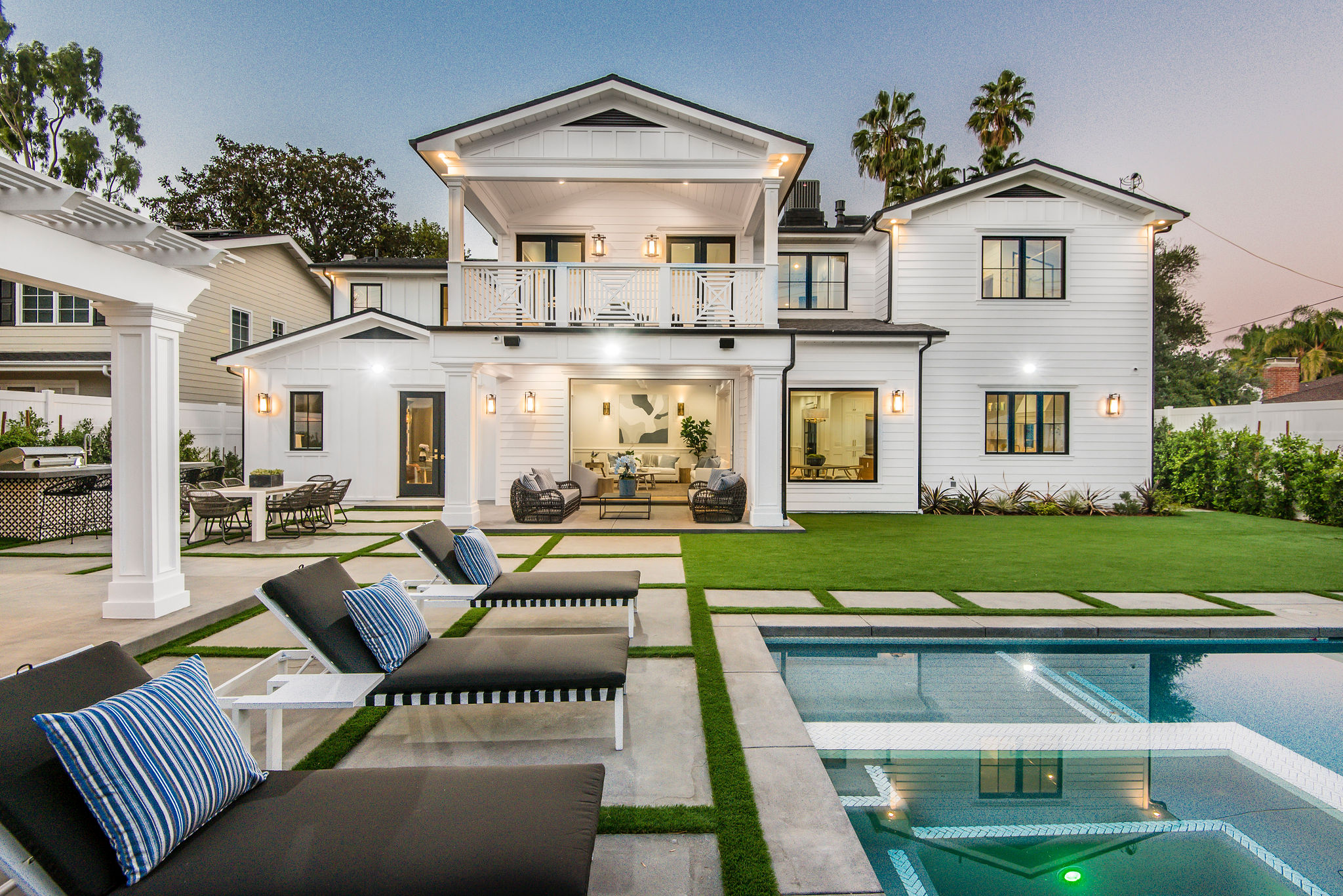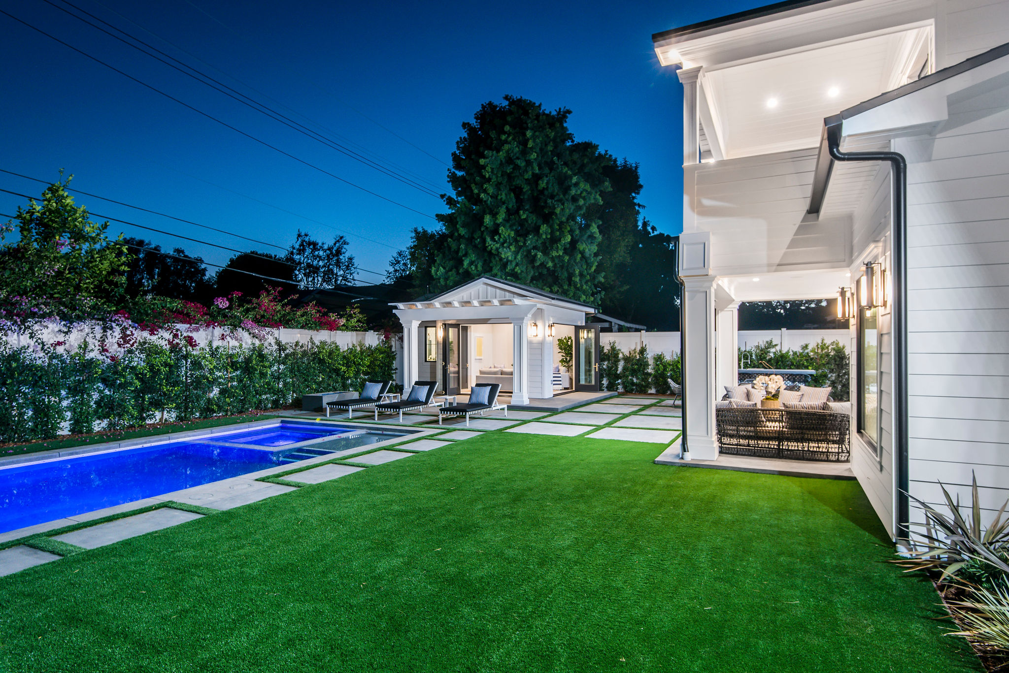 Skillfully crafted New Construction Cape Cod in the heart of studio city. Greeted by a ribbon driveway on a sweeping 11,400 lot. A sweeping 11,400 sqft lot greeted by a landscaped ribbon driveway. 5,672 sqft of interior living space, grand entrance leading you to formal living and dining room to host the grandest events. Luxurious living space as you continue to the family room that is paired with a gourmet kitchen, walk-in and butler’s pantries, stone center island, high end appliances, and separate eating area to enjoy all the exterior surroundings. Wine cellar for the connoisseur. Floor to ceiling sliding glass doors off the family room that create a seamless indoor outdoor layout. 4 beautiful concept fireplaces each situated in the best of locations throughout, gleaming hardwood floors, designer light fixtures that extend radiance and opulence. 5 ensuites with the Master Retreat offering a spa like feel, his & hers walk in closets, a private balcony that brings fresh air and light simply for your enjoyment. 6.5 bathrooms with gorgeous finishes and hardware alongside ample cabinet space and drawers in each. Entertainer’s backyard has artificial grass for easy maintenance and water saving, sparkling pool & spa, fire pit, BBQ, lounge, separate pool house with 200 sq feet and a ¾ bathroom. Great curb appeal, located close to Hiking, Great Schools, trendy small businesses, all major freeways.
