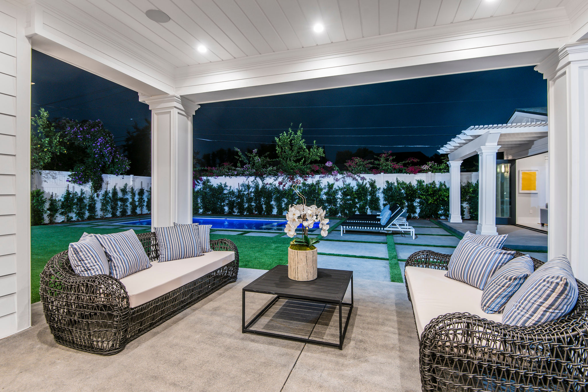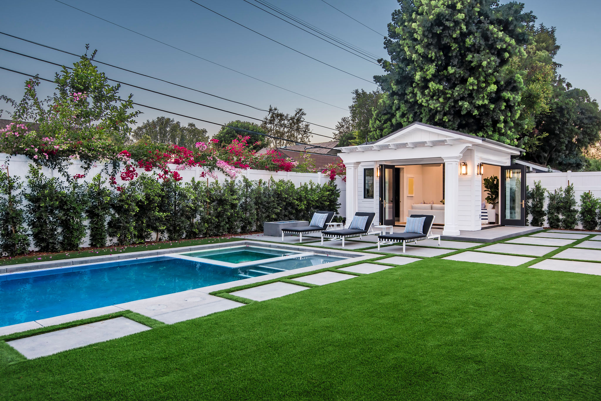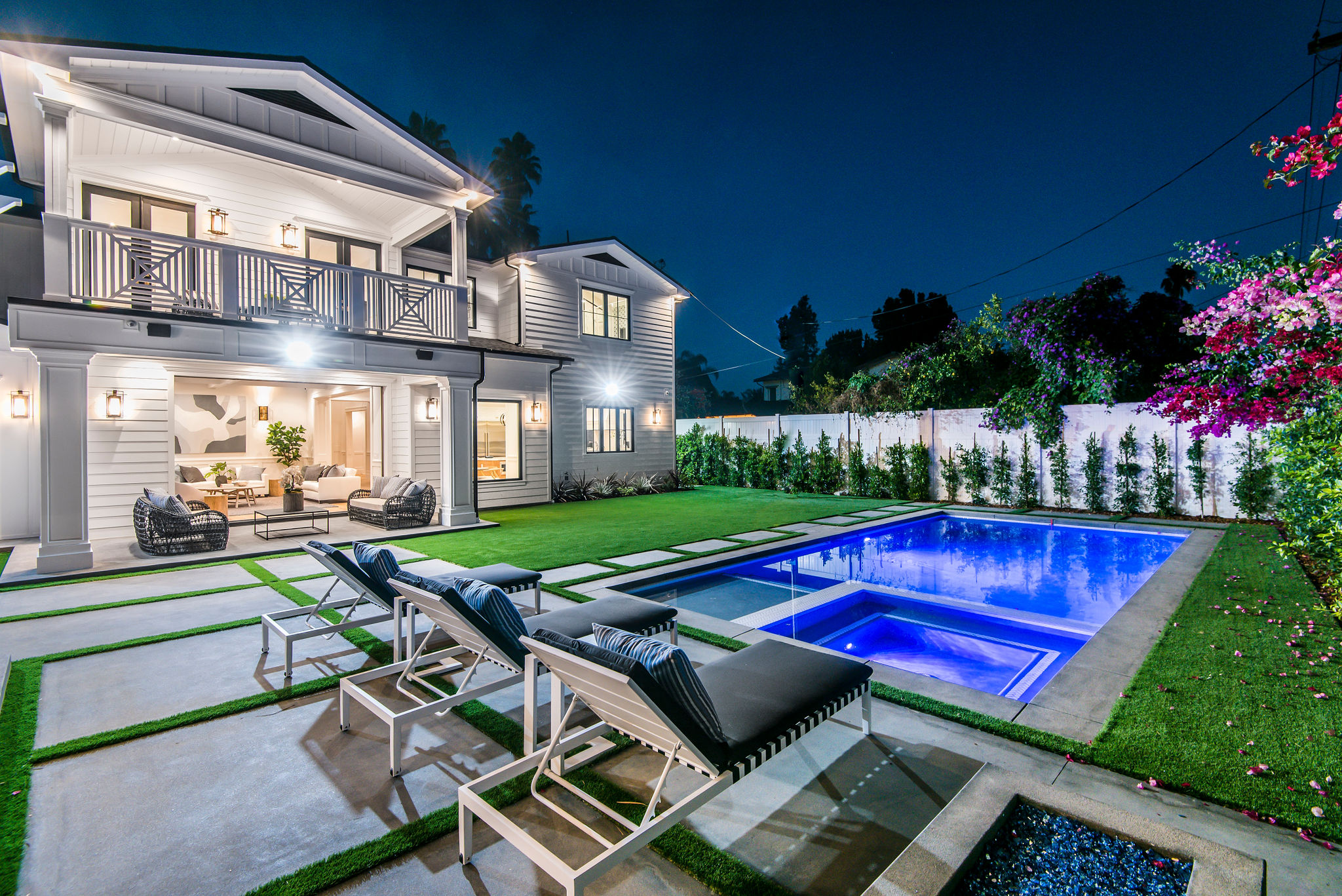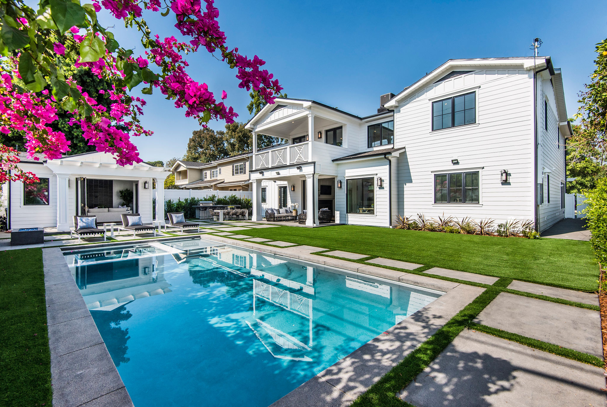 Skillfully crafted New Construction Cape Cod in the heart of studio city. Greeted by a ribbon driveway on a sweeping 11,400 lot. A sweeping 11,400 sqft lot greeted by a landscaped ribbon driveway. 5,672 sqft of interior living space, grand entrance leading you to formal living and dining room to host the grandest events. Luxurious living space as you continue to the family room that is paired with a gourmet kitchen, walk-in and butler’s pantries, stone center island, high end appliances, and separate eating area to enjoy all the exterior surroundings. Wine cellar for the connoisseur. Floor to ceiling sliding glass doors off the family room that create a seamless indoor outdoor layout. 4 beautiful concept fireplaces each situated in the best of locations throughout, gleaming hardwood floors, designer light fixtures that extend radiance and opulence. 5 ensuites with the Master Retreat offering a spa like feel, his & hers walk in closets, a private balcony that brings fresh air and light simply for your enjoyment. 6.5 bathrooms with gorgeous finishes and hardware alongside ample cabinet space and drawers in each. Entertainer’s backyard has artificial grass for easy maintenance and water saving, sparkling pool & spa, fire pit, BBQ, lounge, separate pool house with 200 sq feet and a ¾ bathroom. Great curb appeal, located close to Hiking, Great Schools, trendy small businesses, all major freeways.